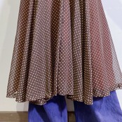 ブラウンベースに白のピンドットが可愛い、70年代のワンピースです。