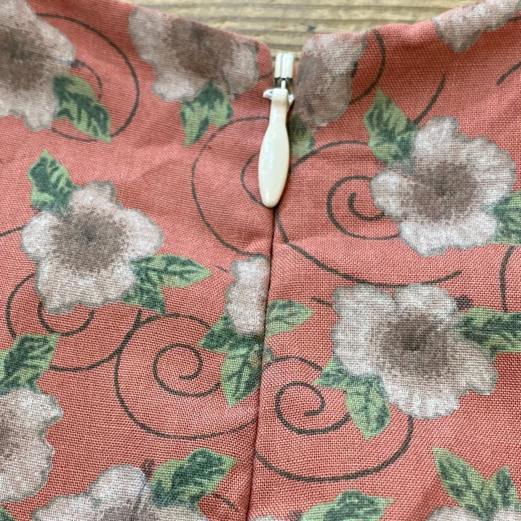 淡いピンクカラーにベージュカラーの花柄が可愛い、ロングワンピースです。
