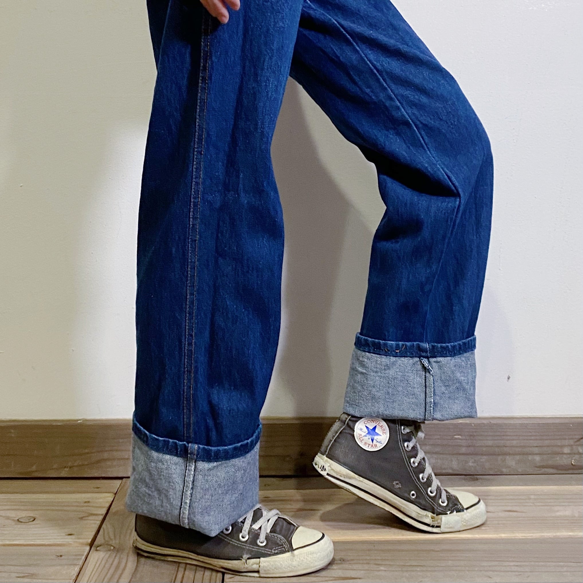 濃い目のインディゴブルーの色味が着こなしやすそうな70〜80年代のデニムパンツです。