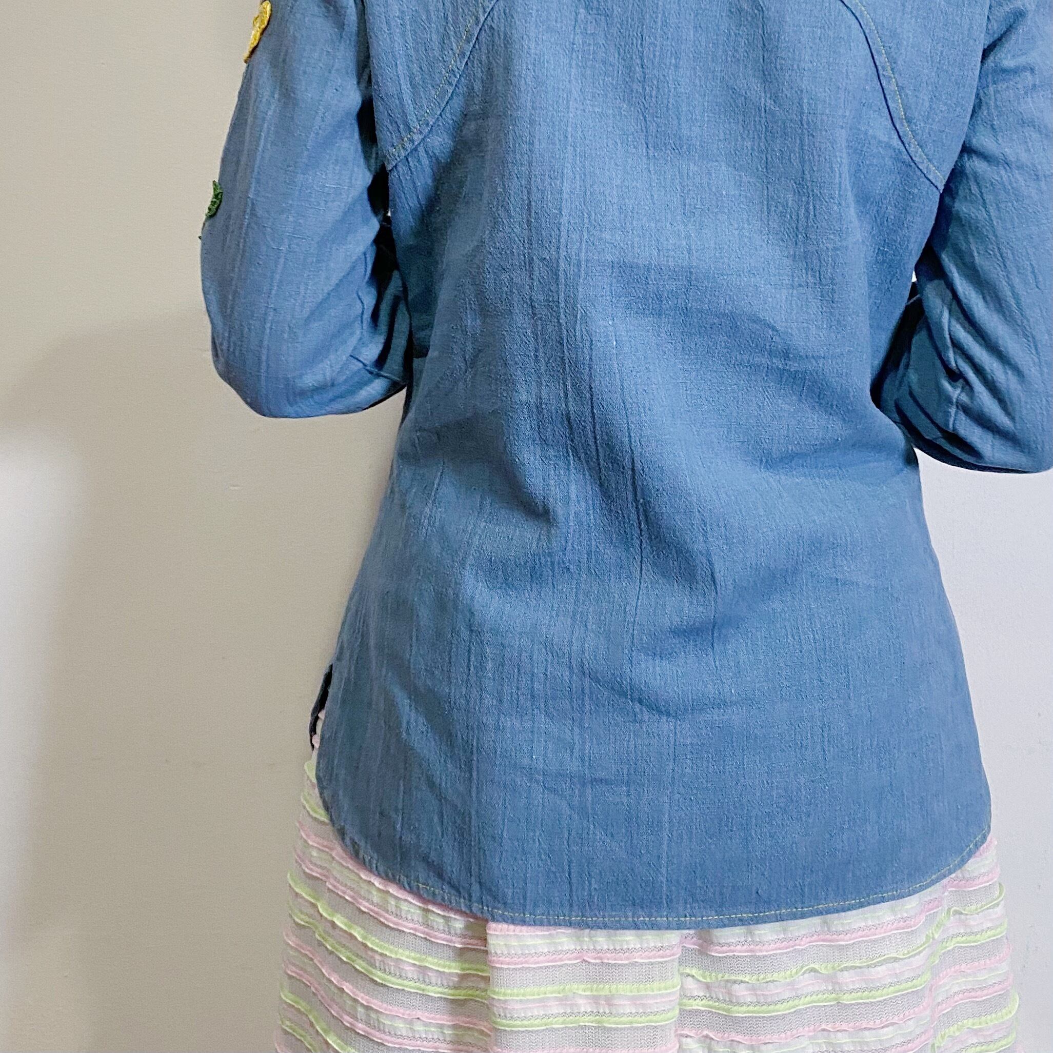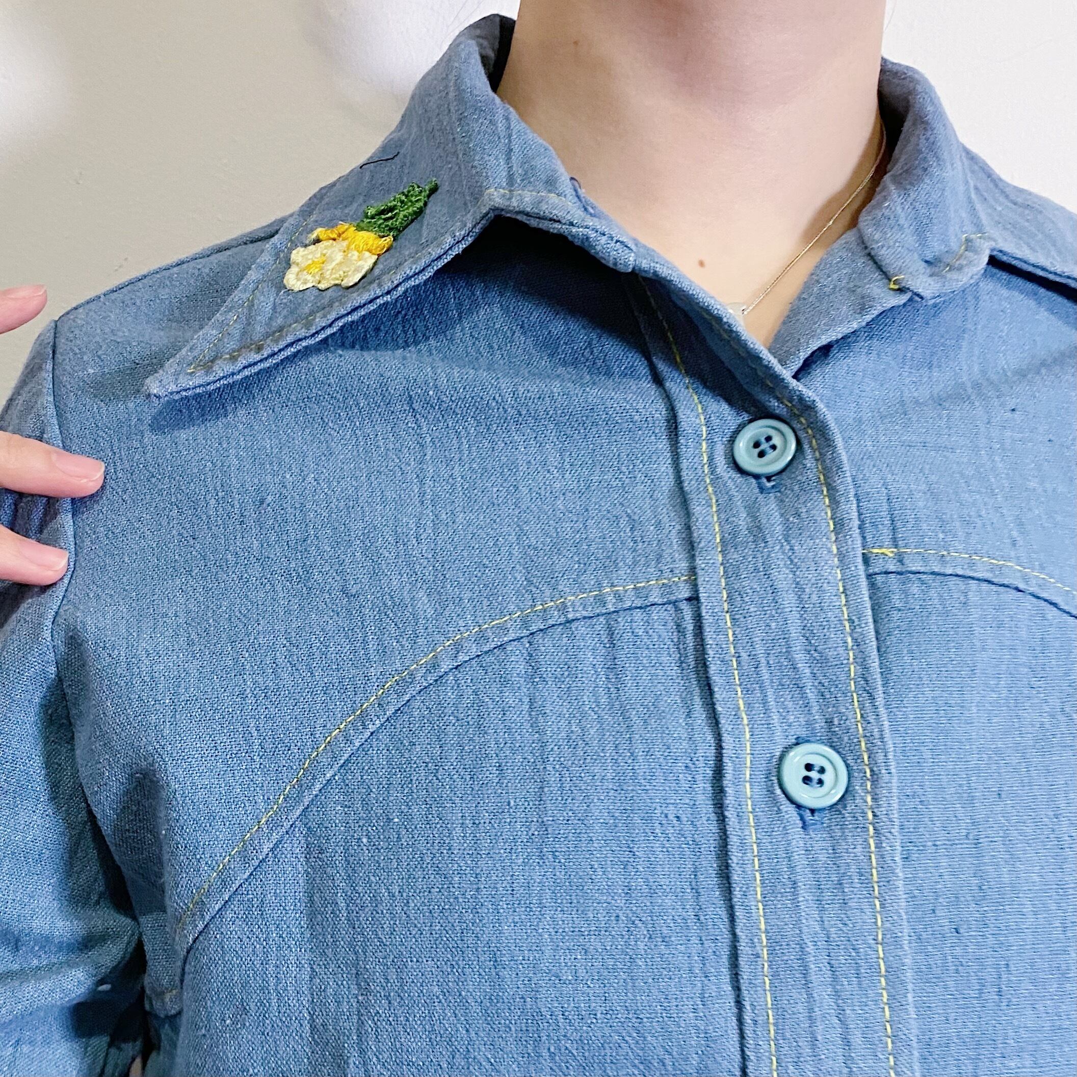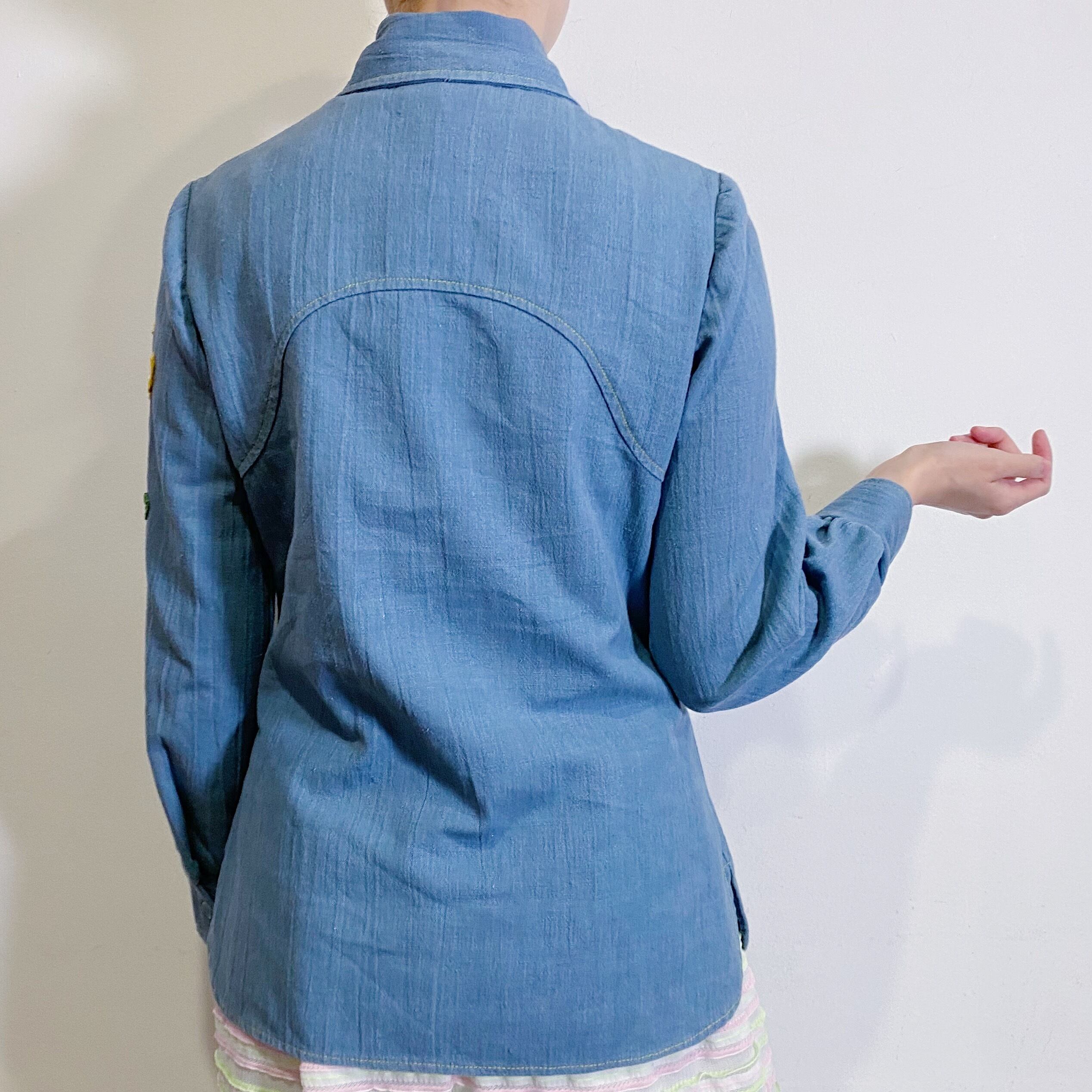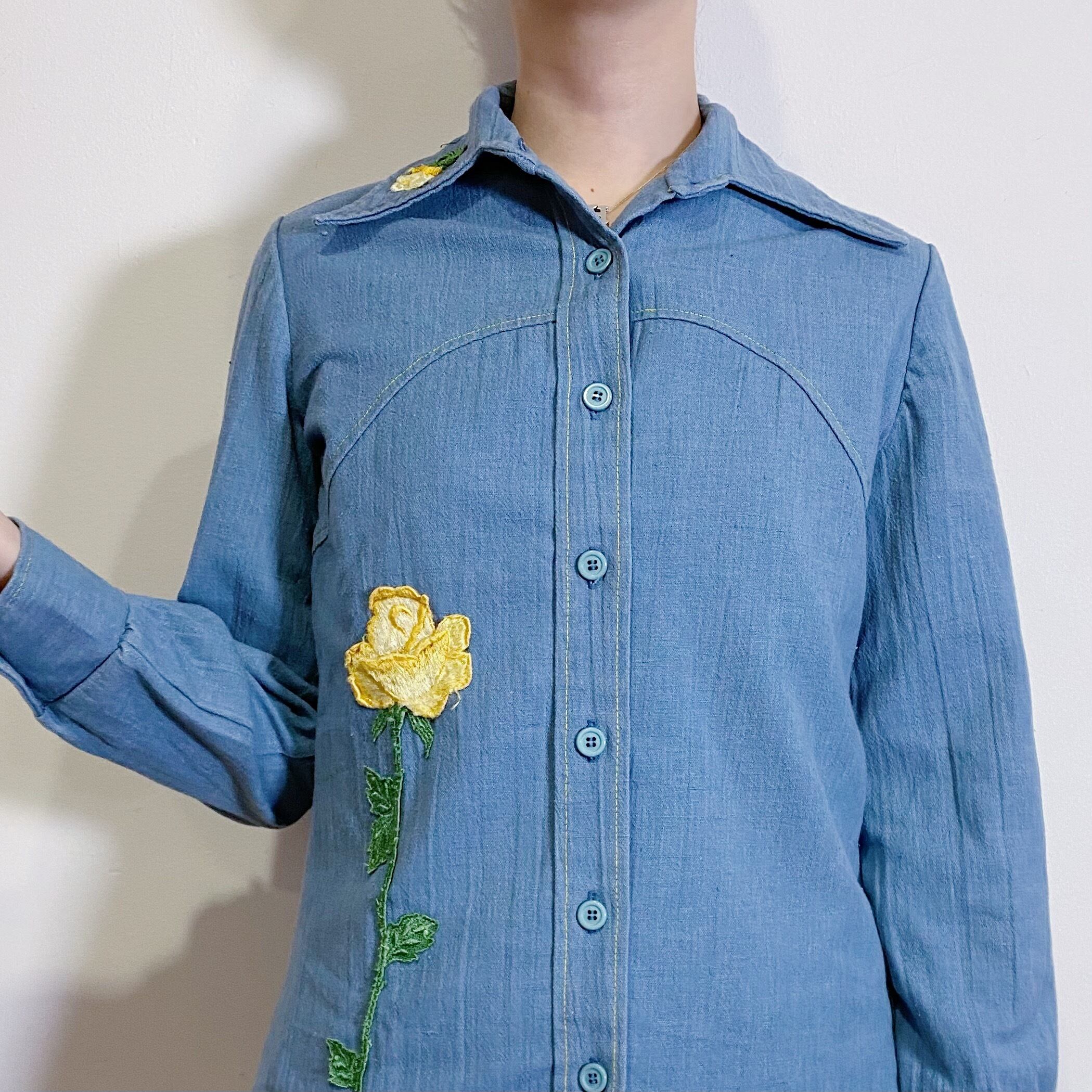 デニム生地に黄色のお花のパッチが可愛い、70年代のシャツです。