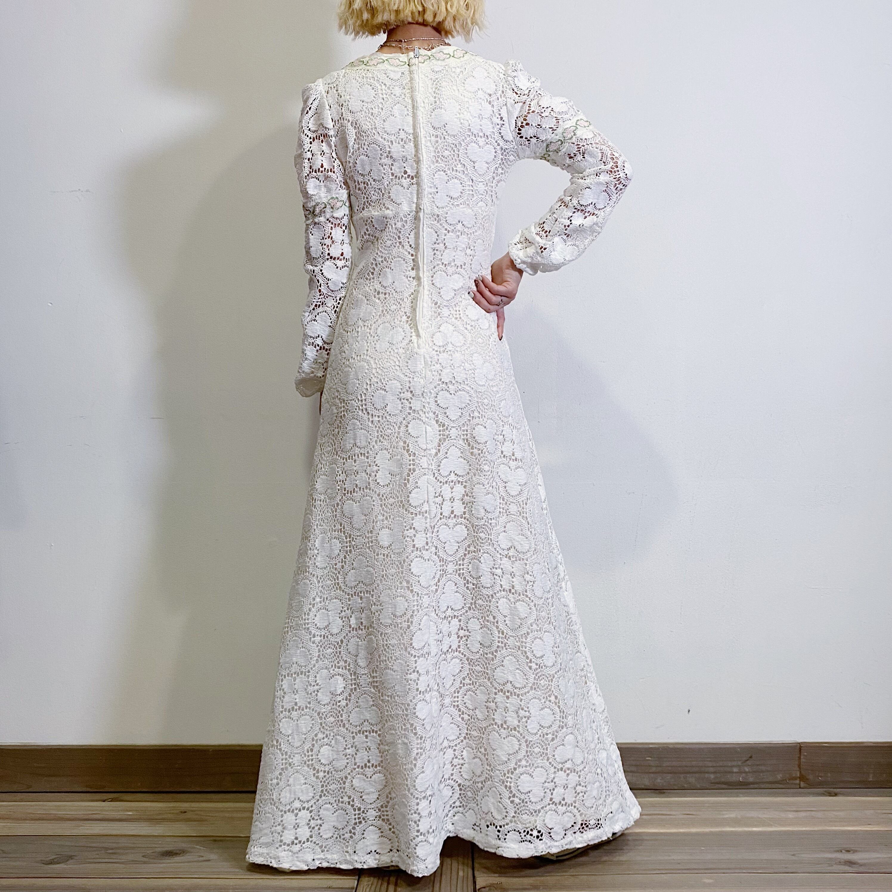 真っ白の総レースが可愛い、70年代のワンピースです。