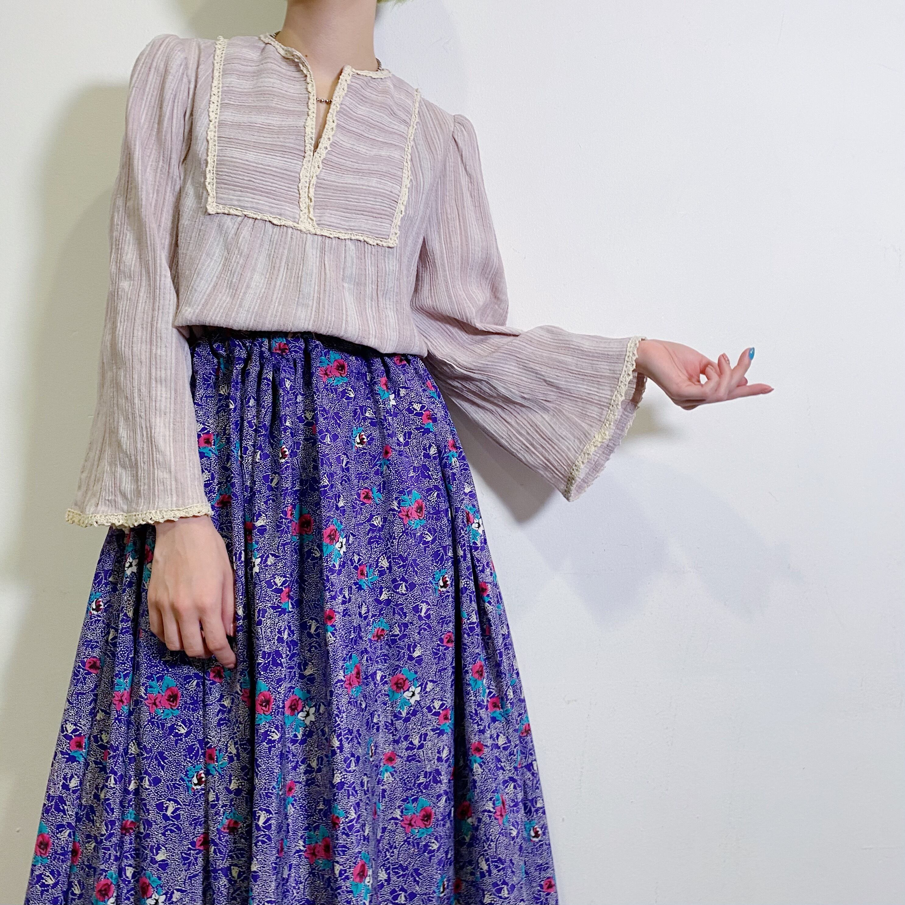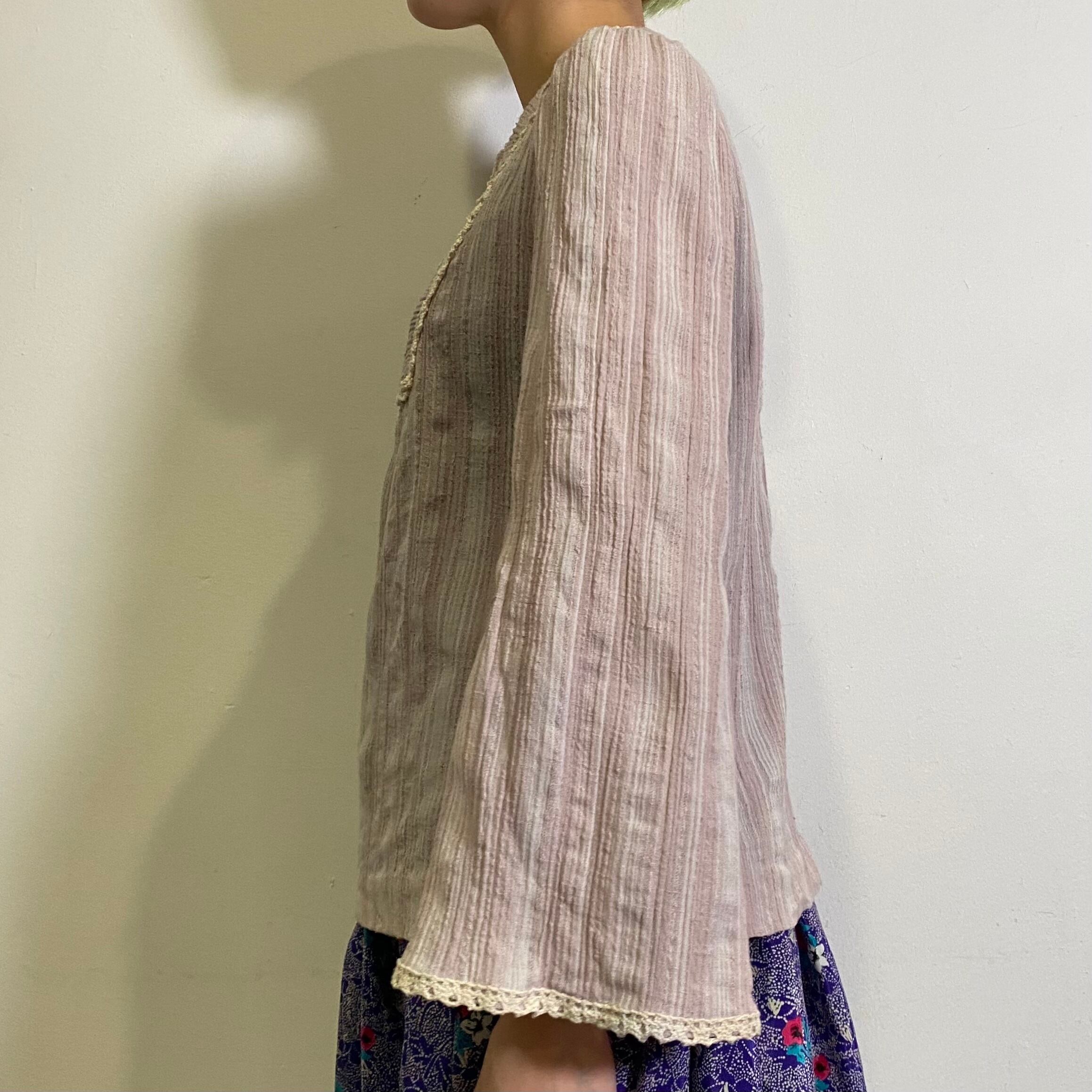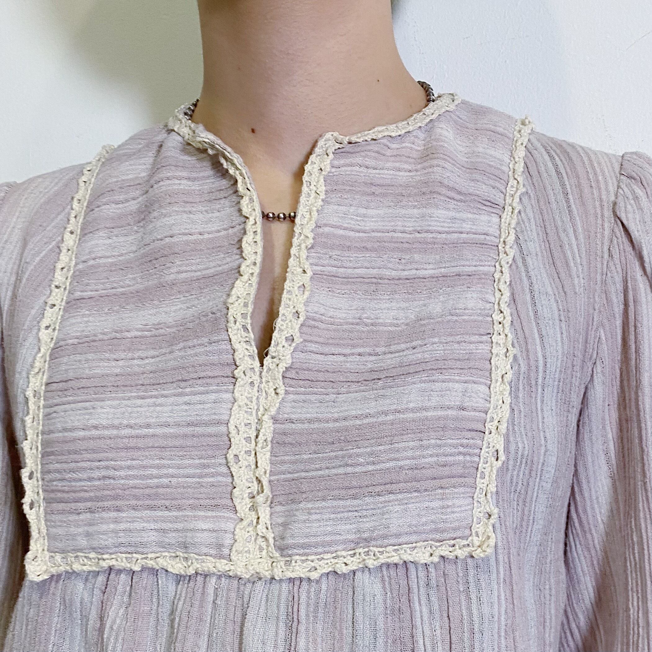 柔らかなラベンダーカラーのストライプが可愛い、70年代のチュニックトップです。