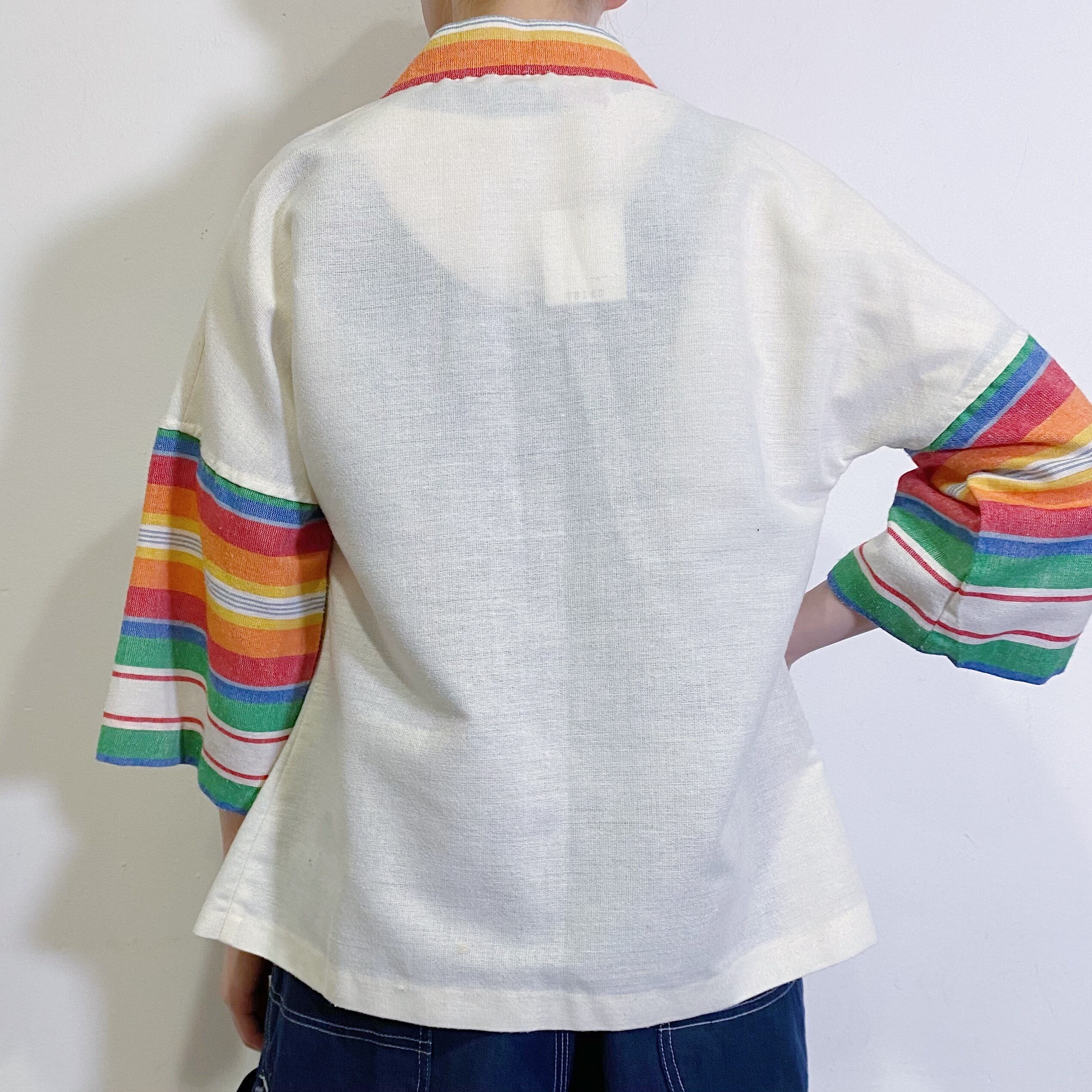 レインボーカラーがハッピーでとっても可愛い、70年代のショート丈ガウンです。