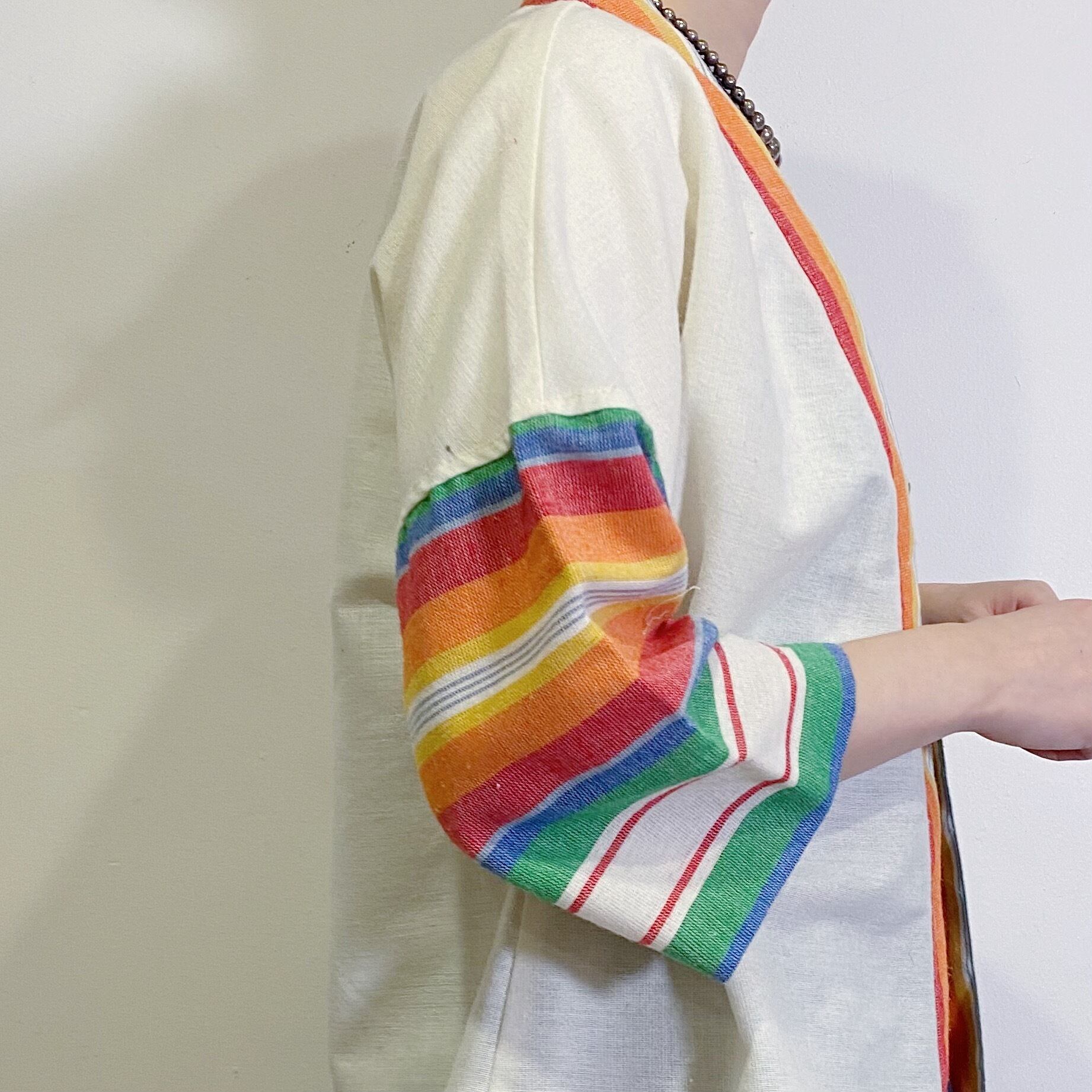 70s rainbow cotton short gown