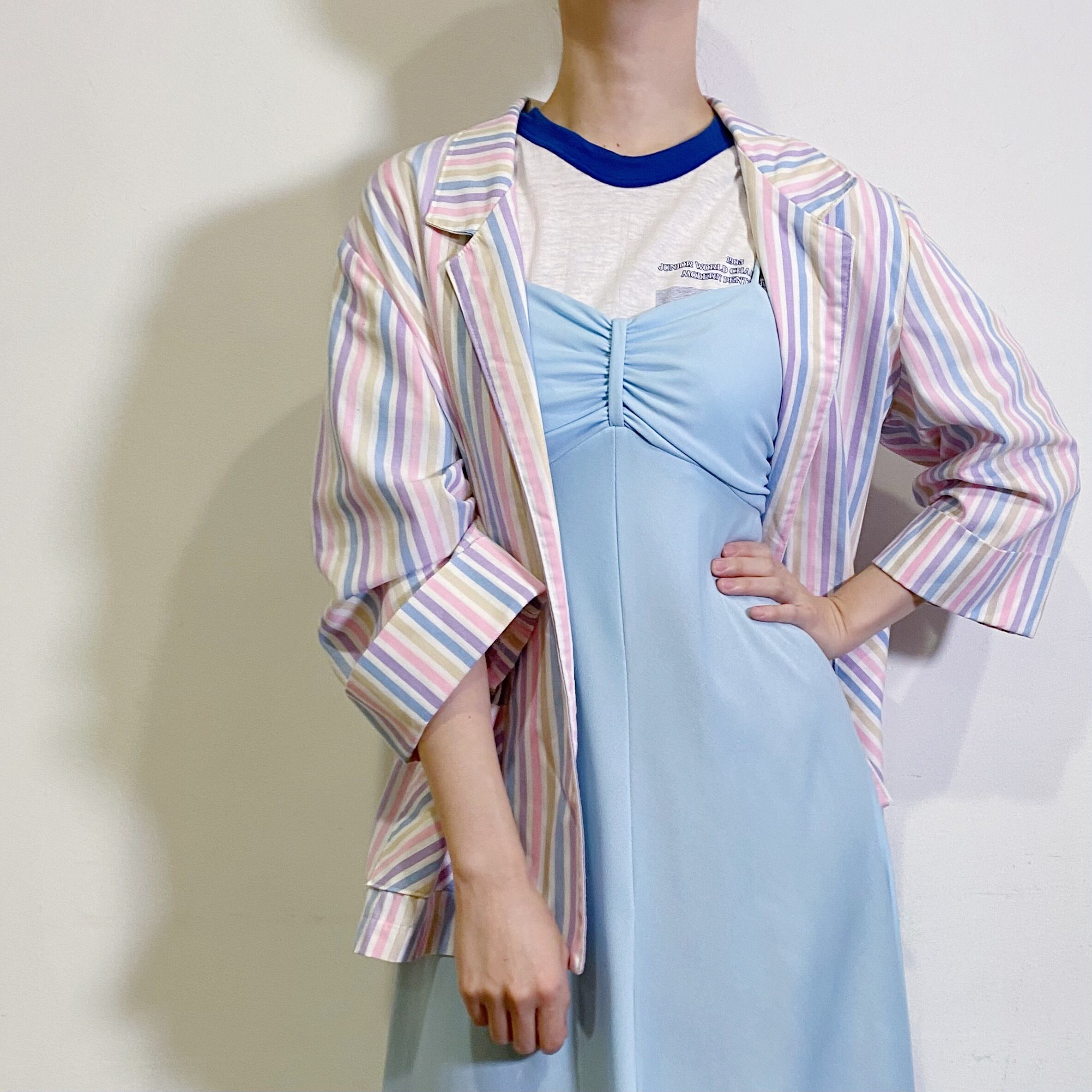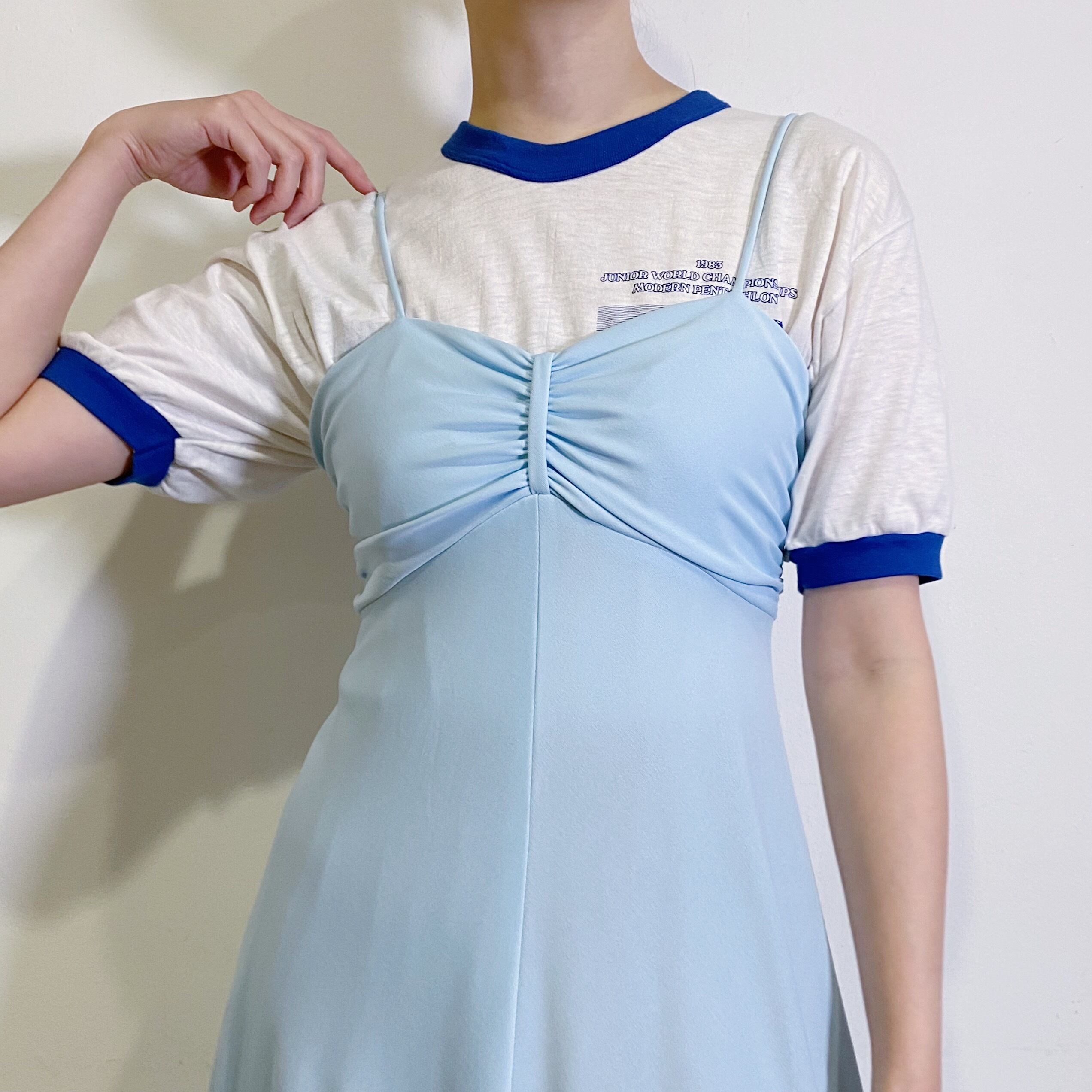 綺麗なサックスブルーが目を惹く、70年代のキャミワンピースです。