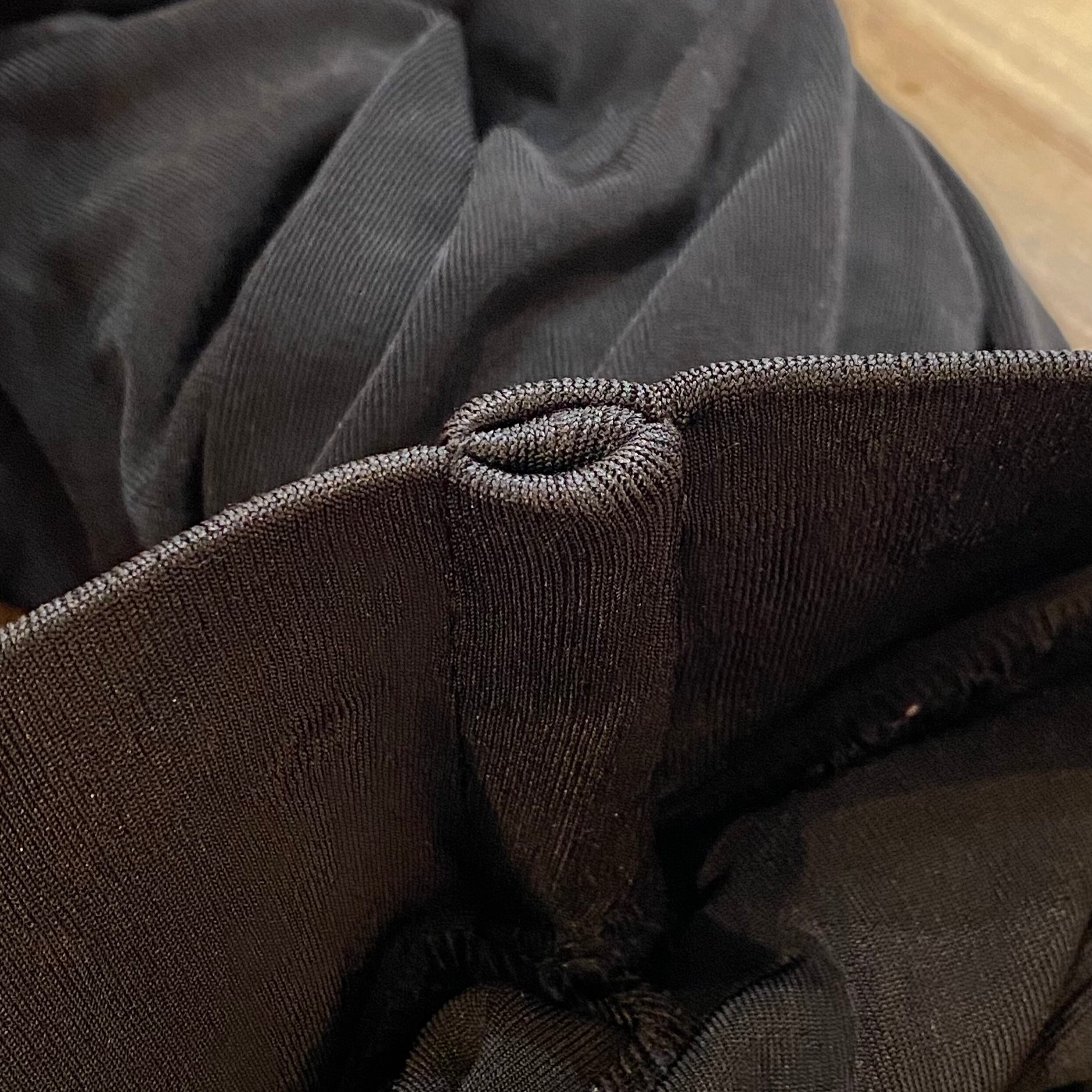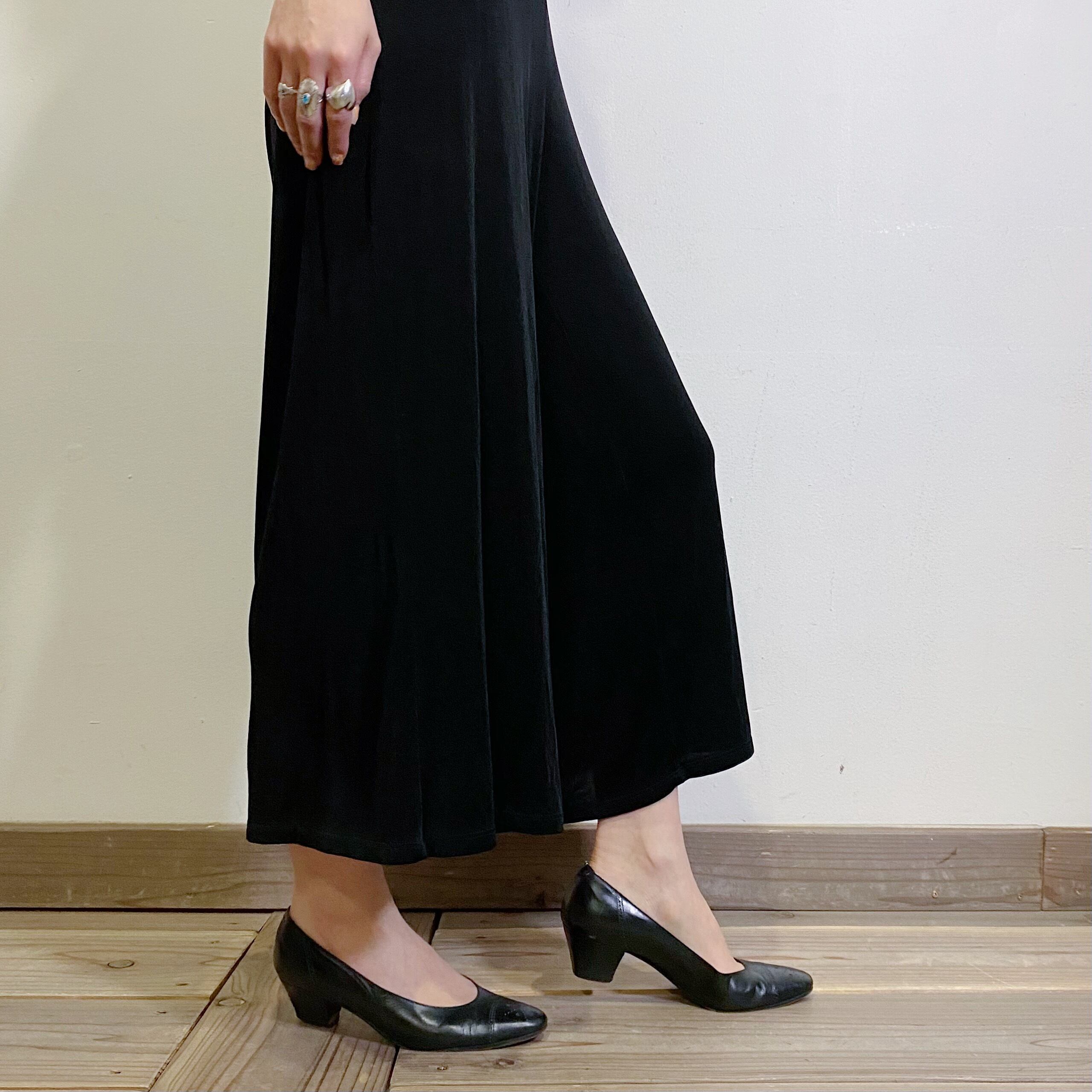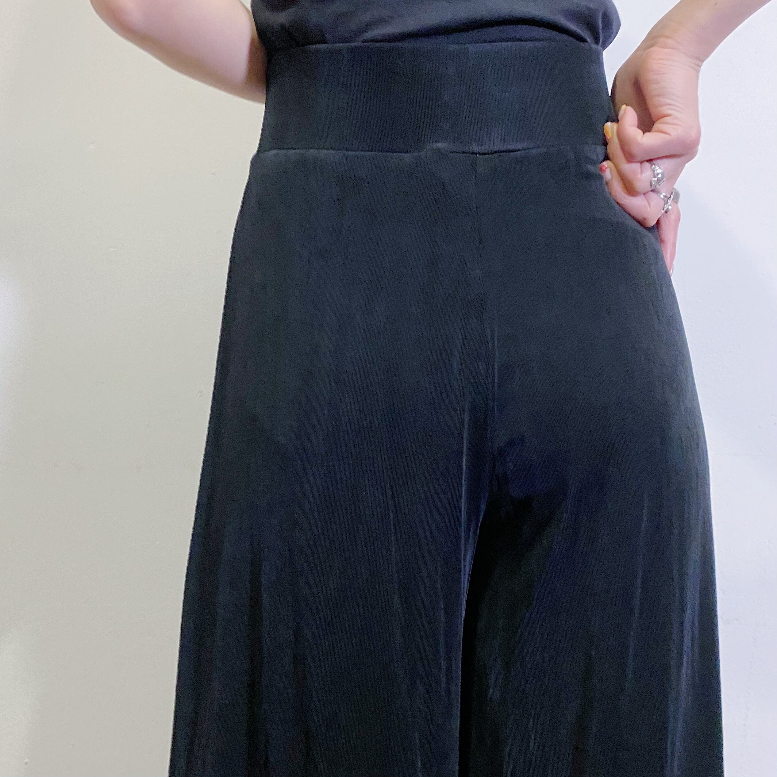 スパンデックス特有の伸縮性のあるとろんとした素材に、ワイドなシルエットが魅力的な一枚。