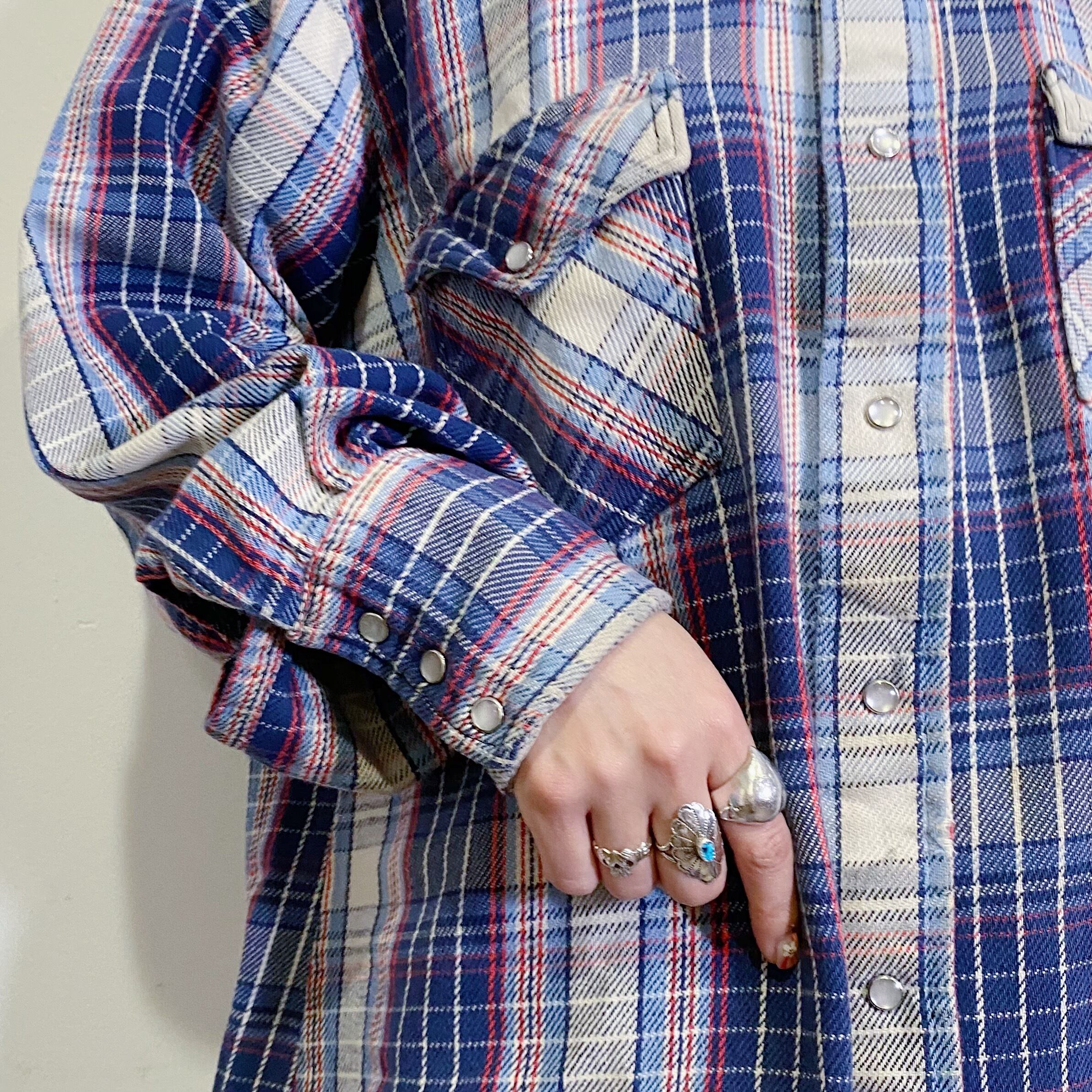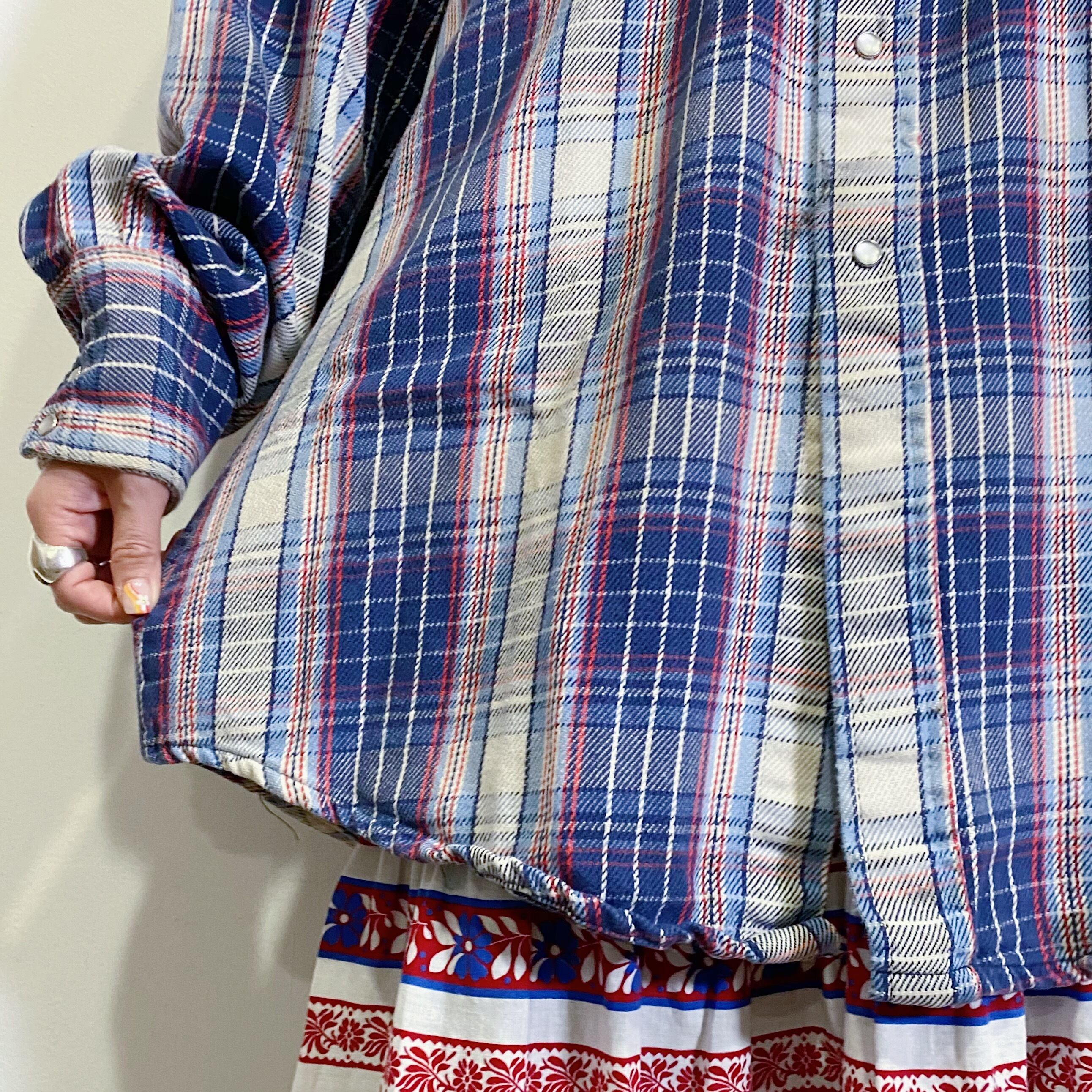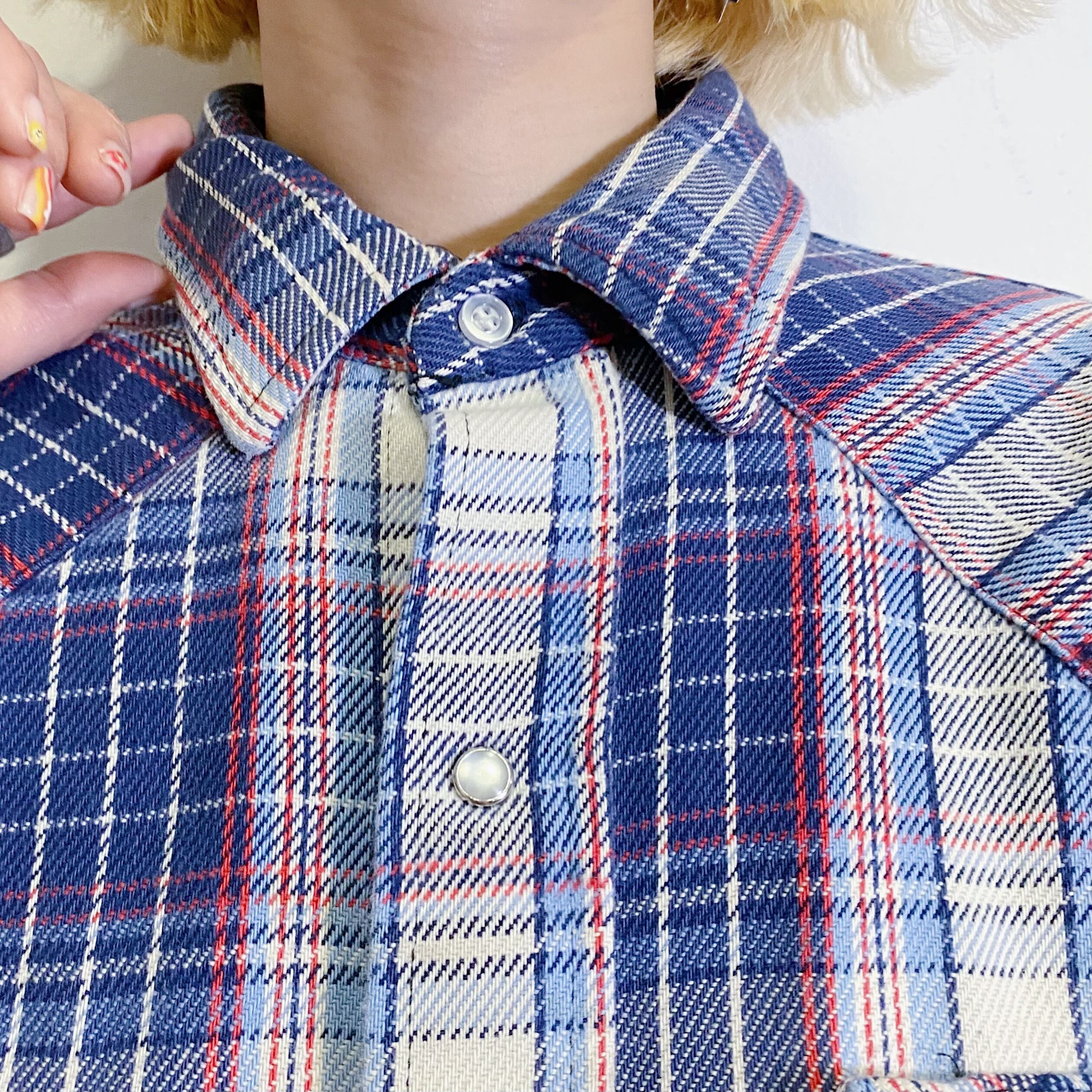 ブルーとレッドのチェックの色合いが可愛い、60年代のネルシャツです。