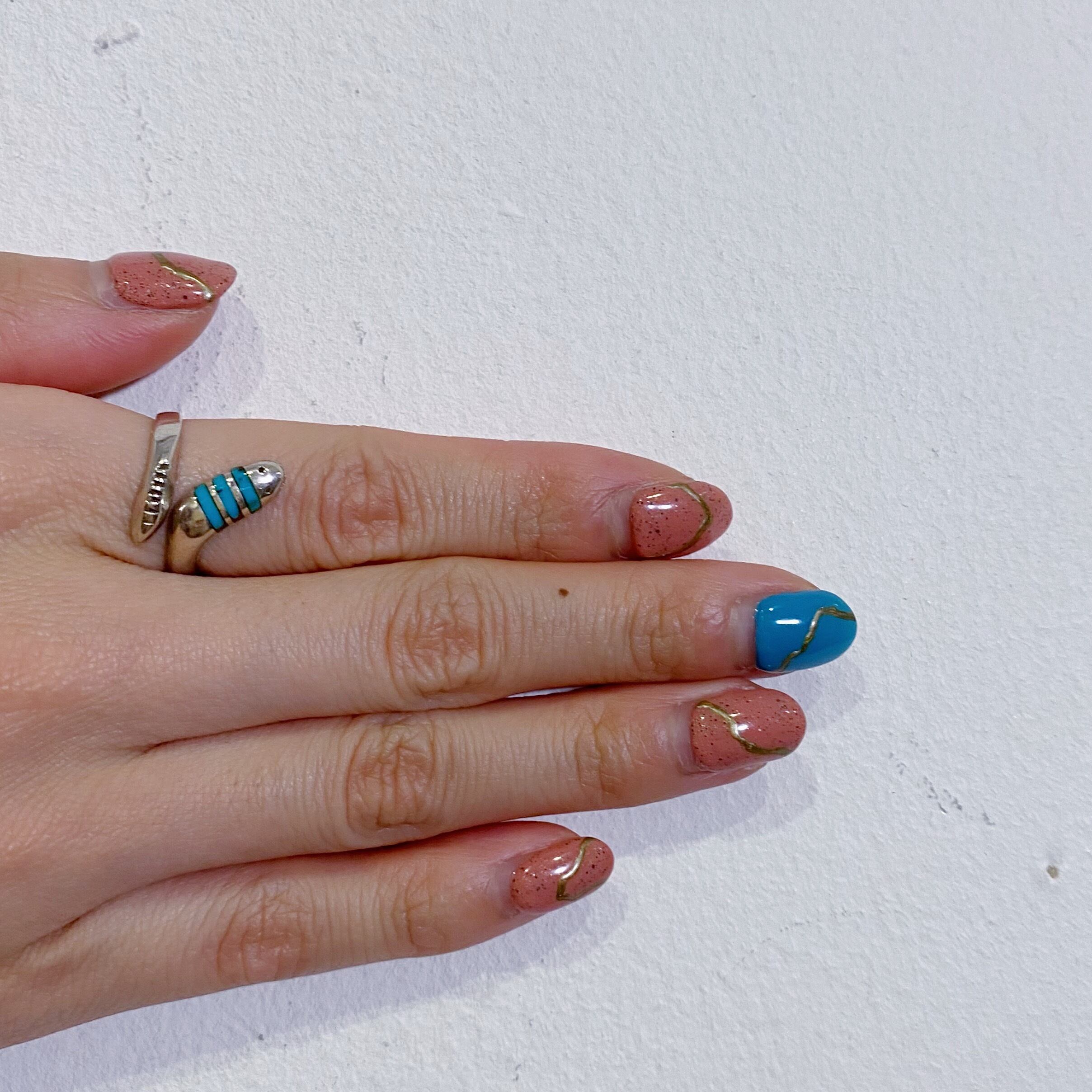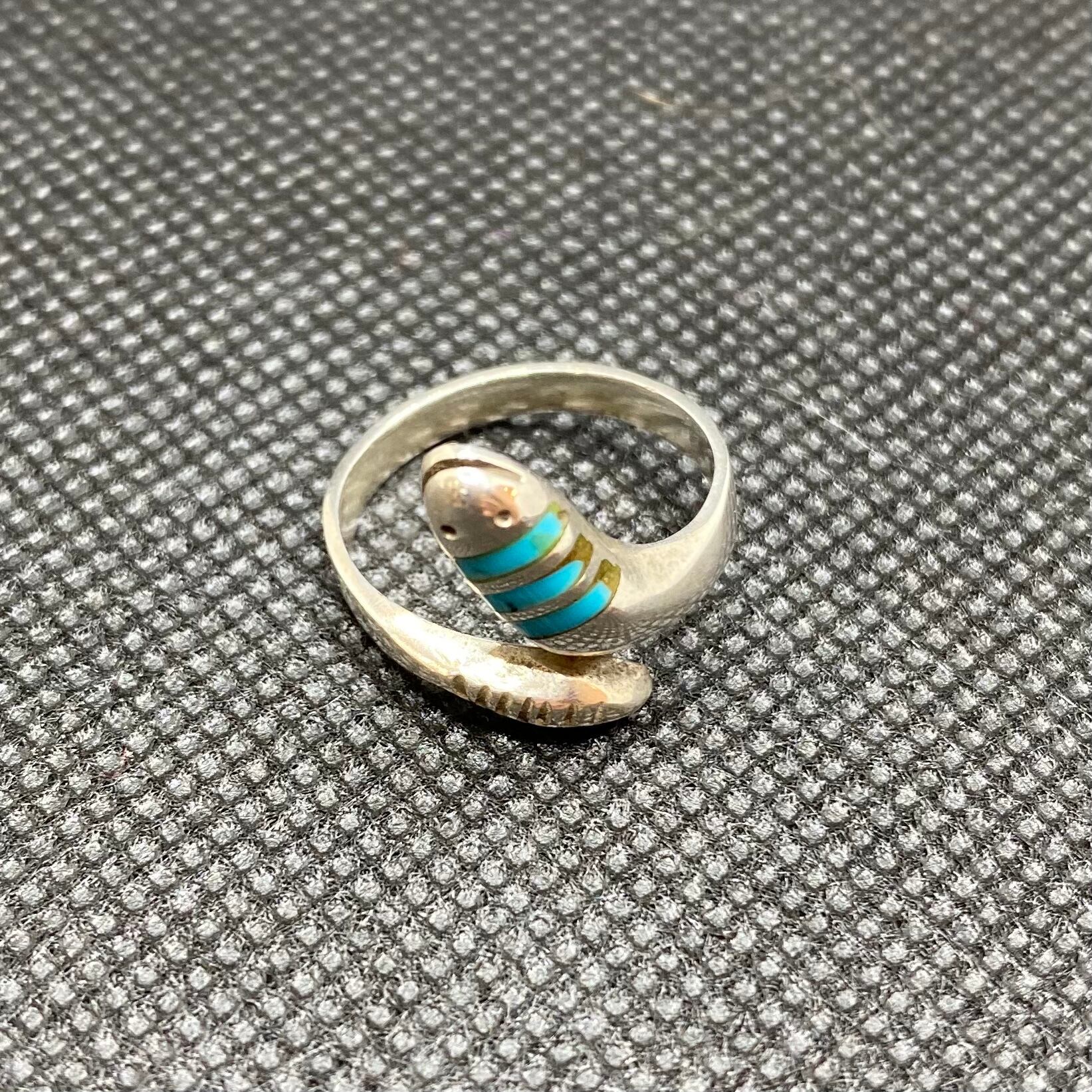 指にヘビがくるっと巻き付いたようなデザインがユニークで可愛い、ネイティブアメリカンジュエリーです。