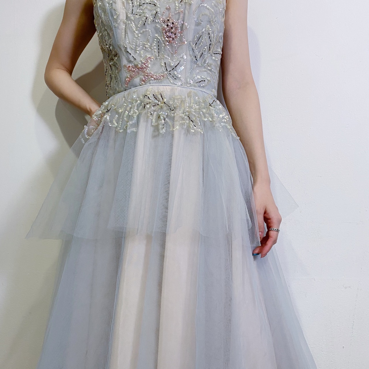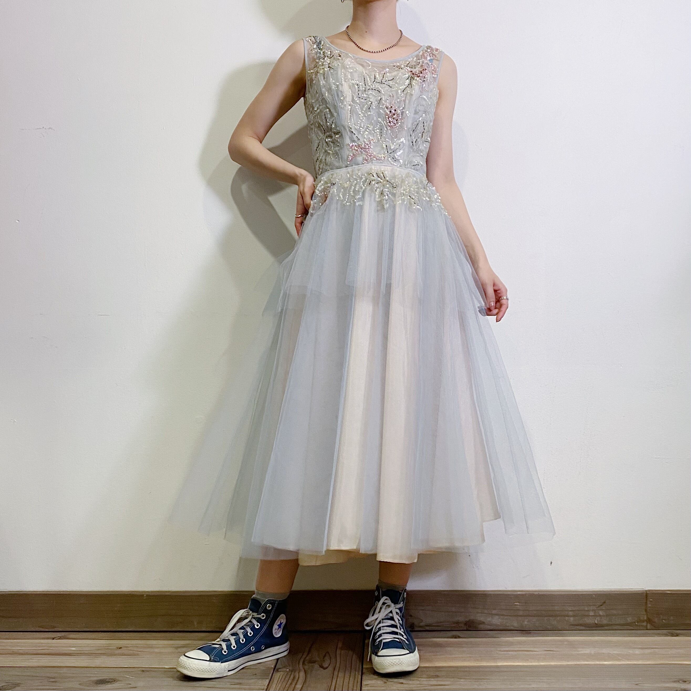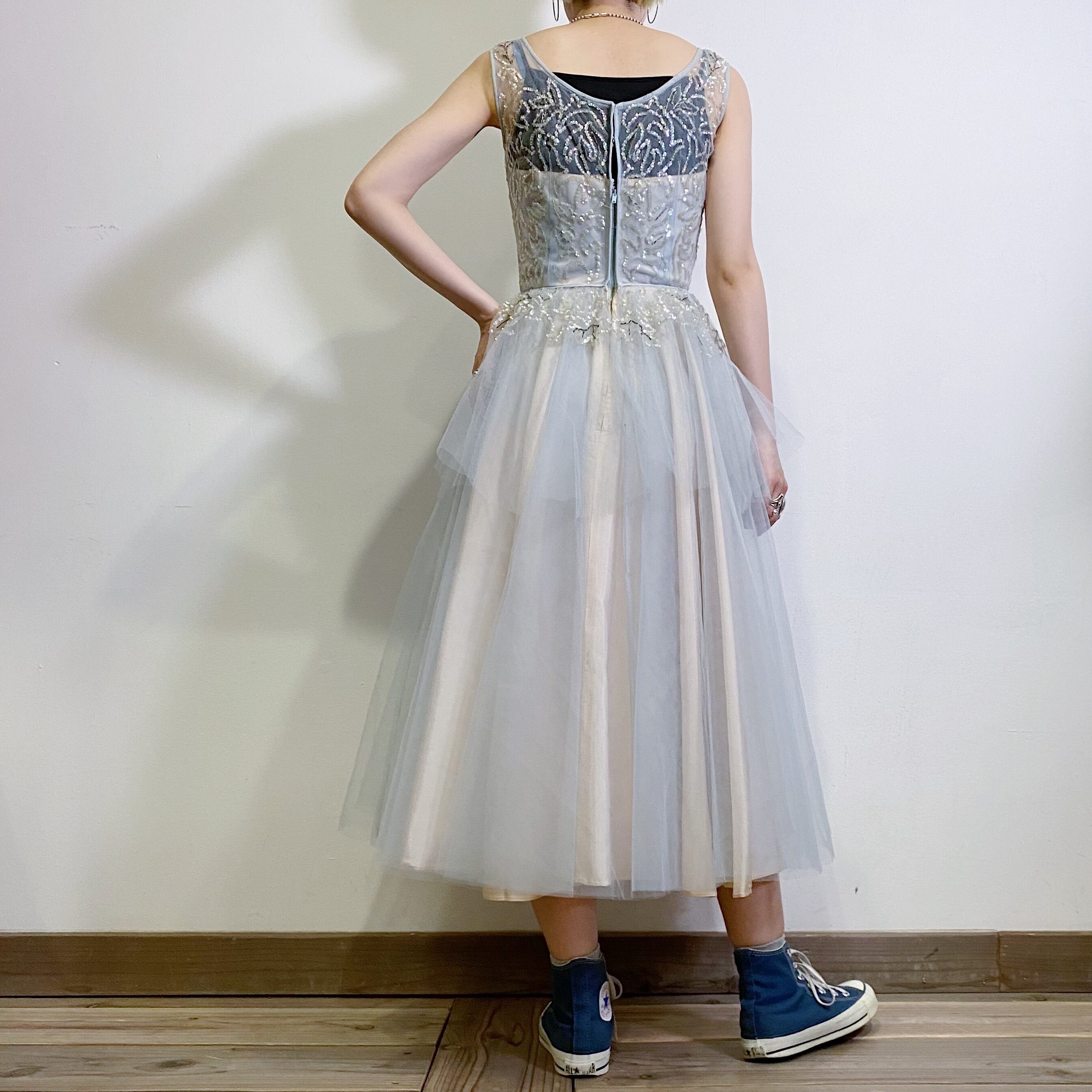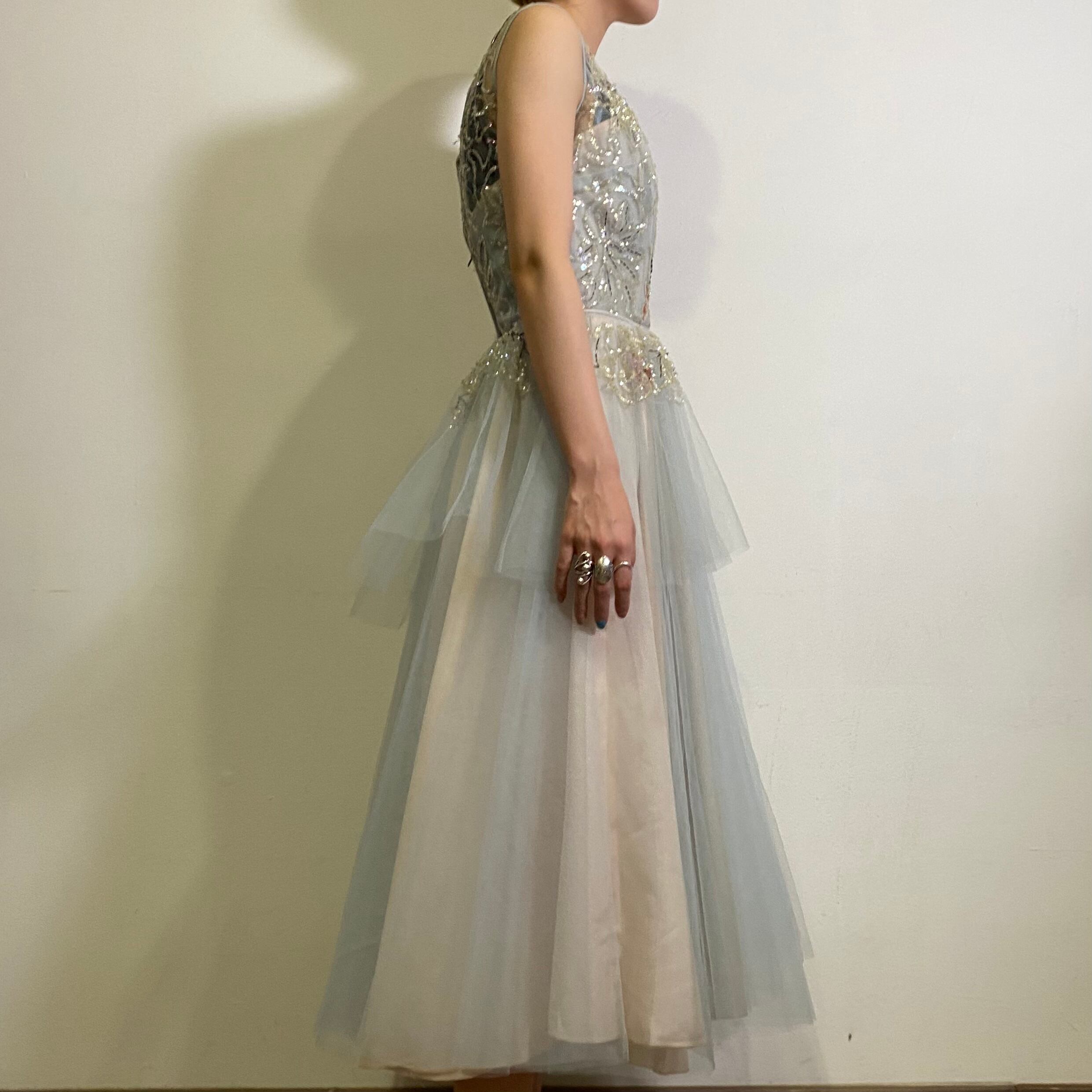 チュール素材にスパンコールが贅沢にあしらわれた、50年代のヴィンテージドレスです。