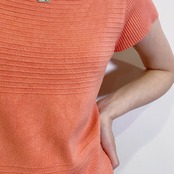 フレンチスリーブにリブのような縞模様が可愛い、持っておくと重宝しそうな一枚です。