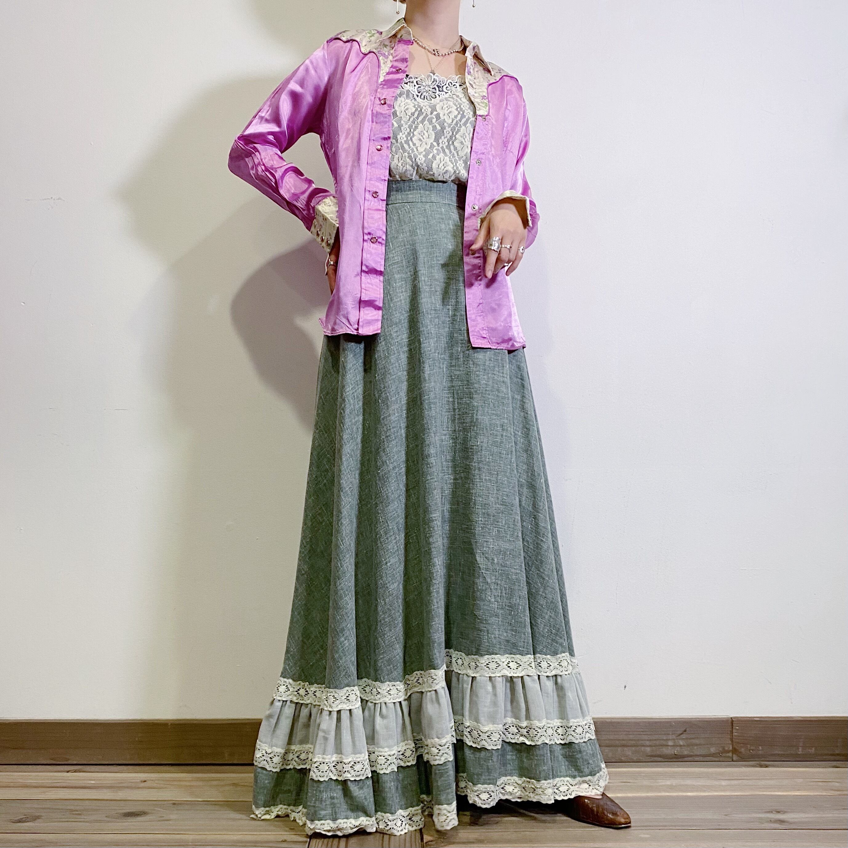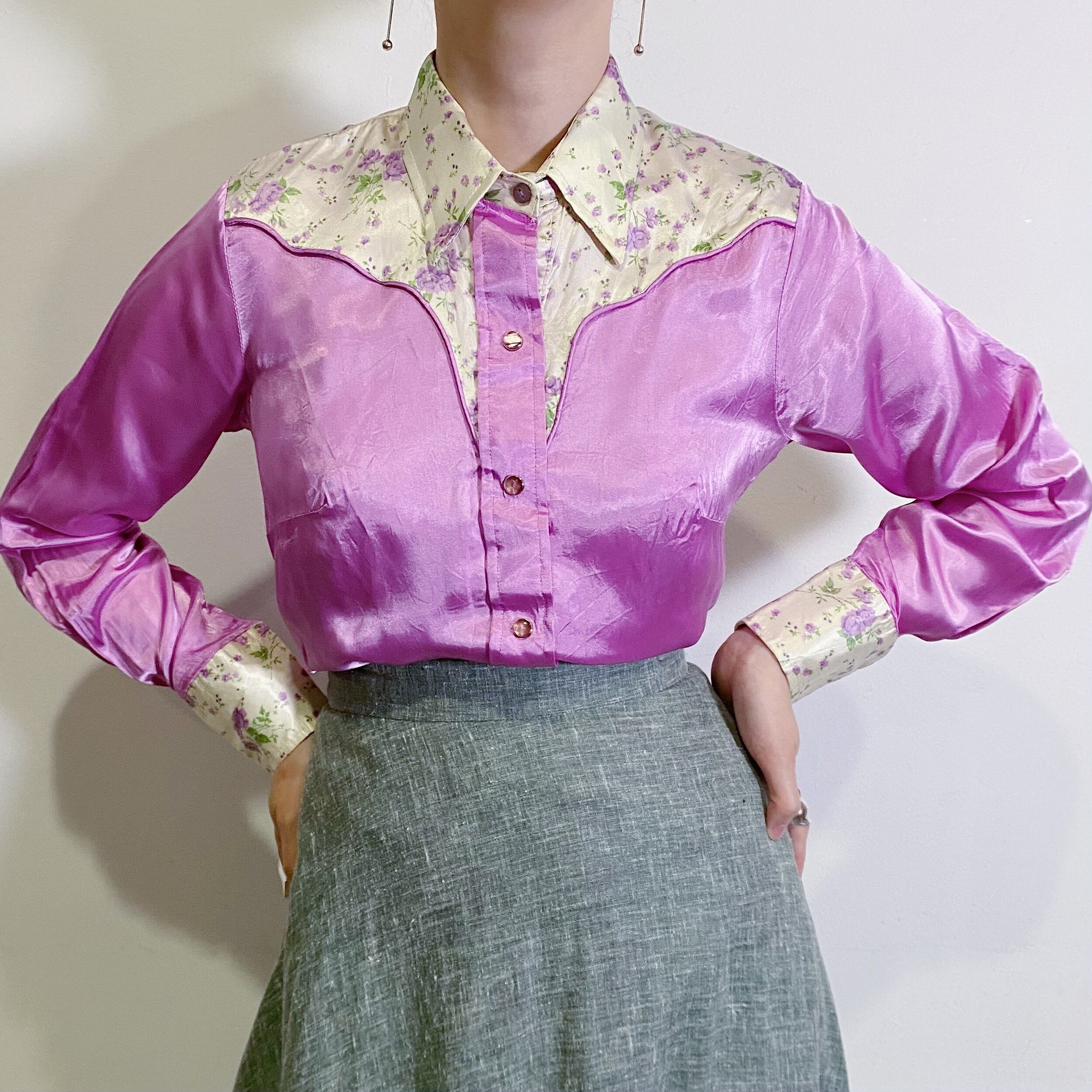 パープルとピンクの中間のような絶妙な色合いが可愛い、70年代のウエスタンシャツです。