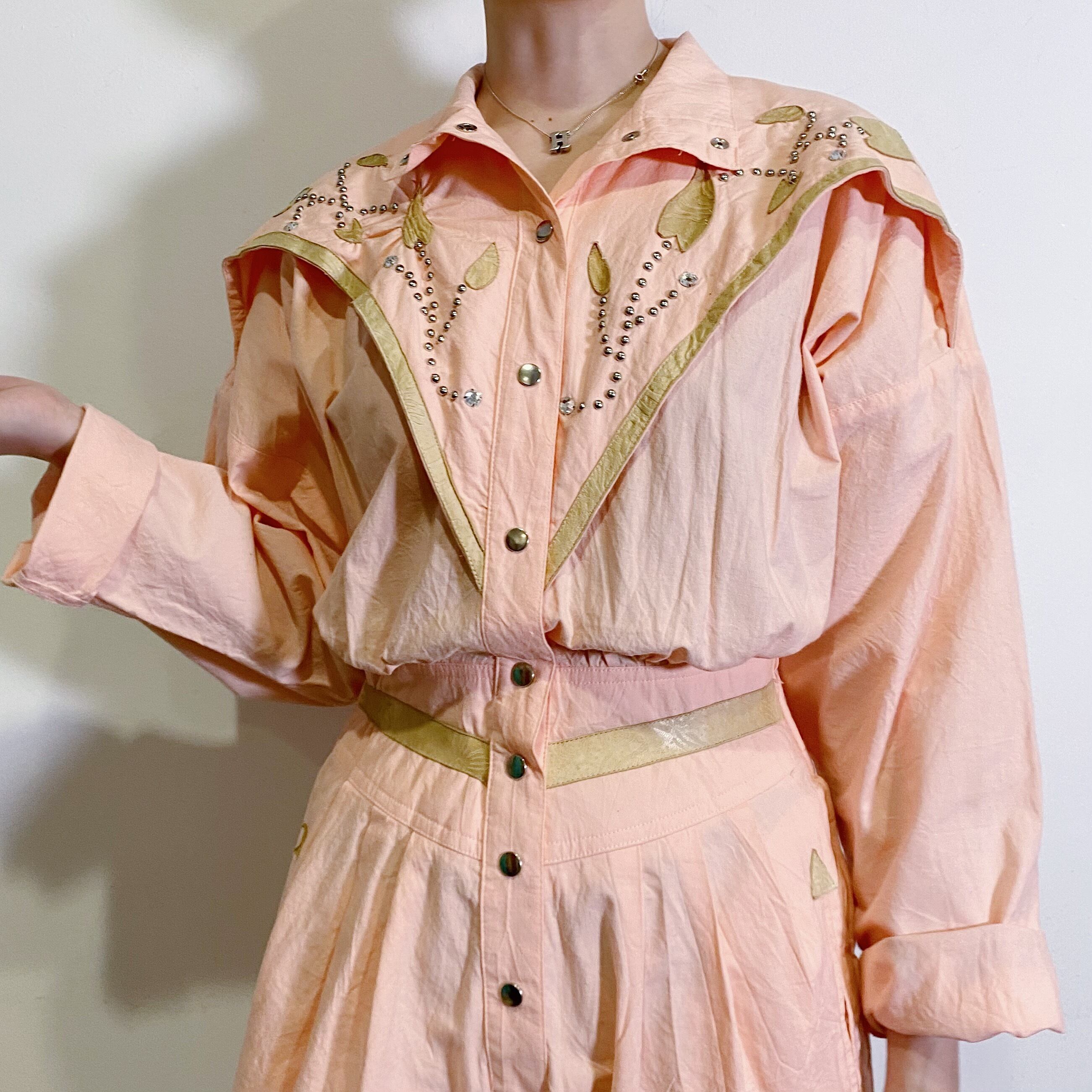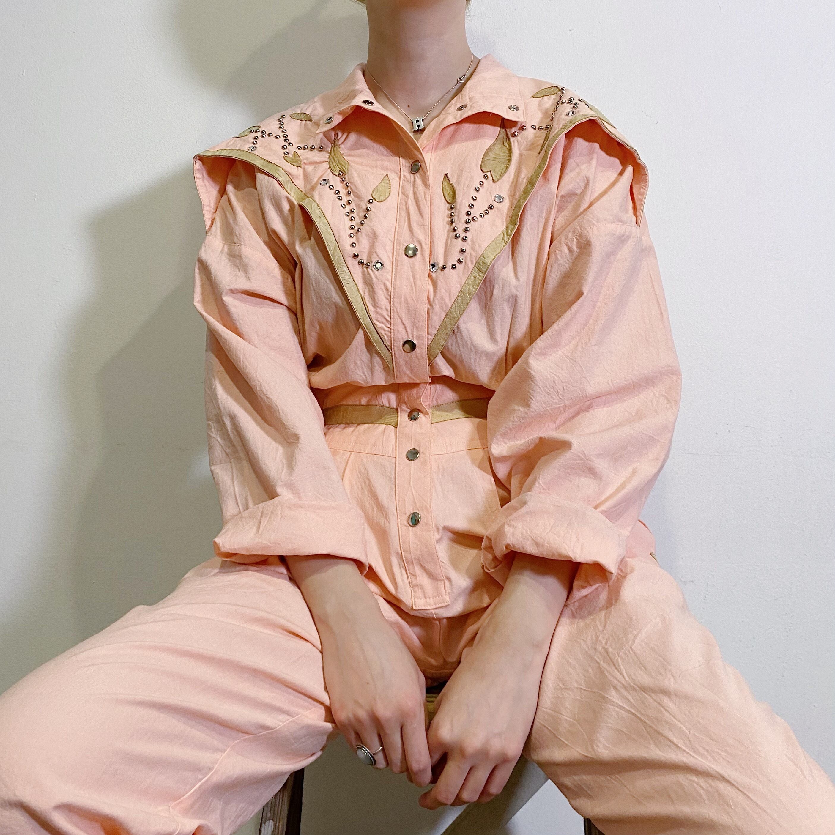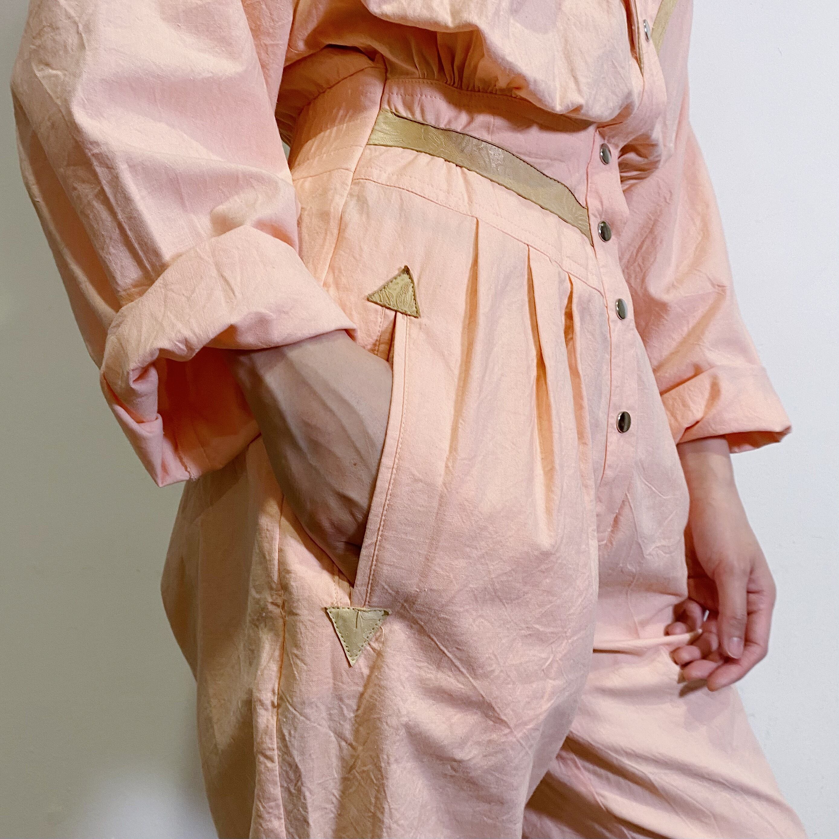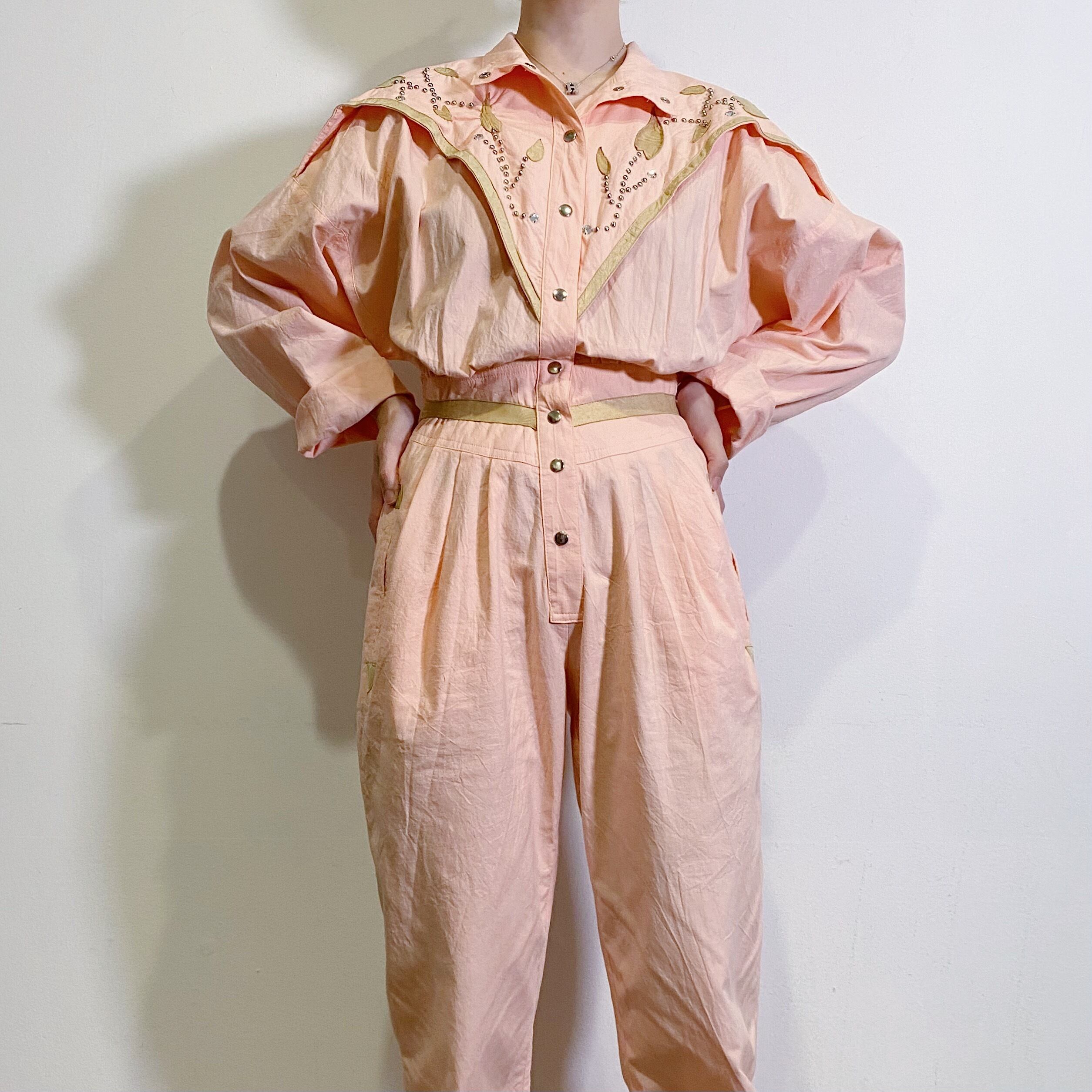 レザーのパッチやスタッズ、ラインストーンなどの装飾が可愛い、80年代のジャンプスーツです。