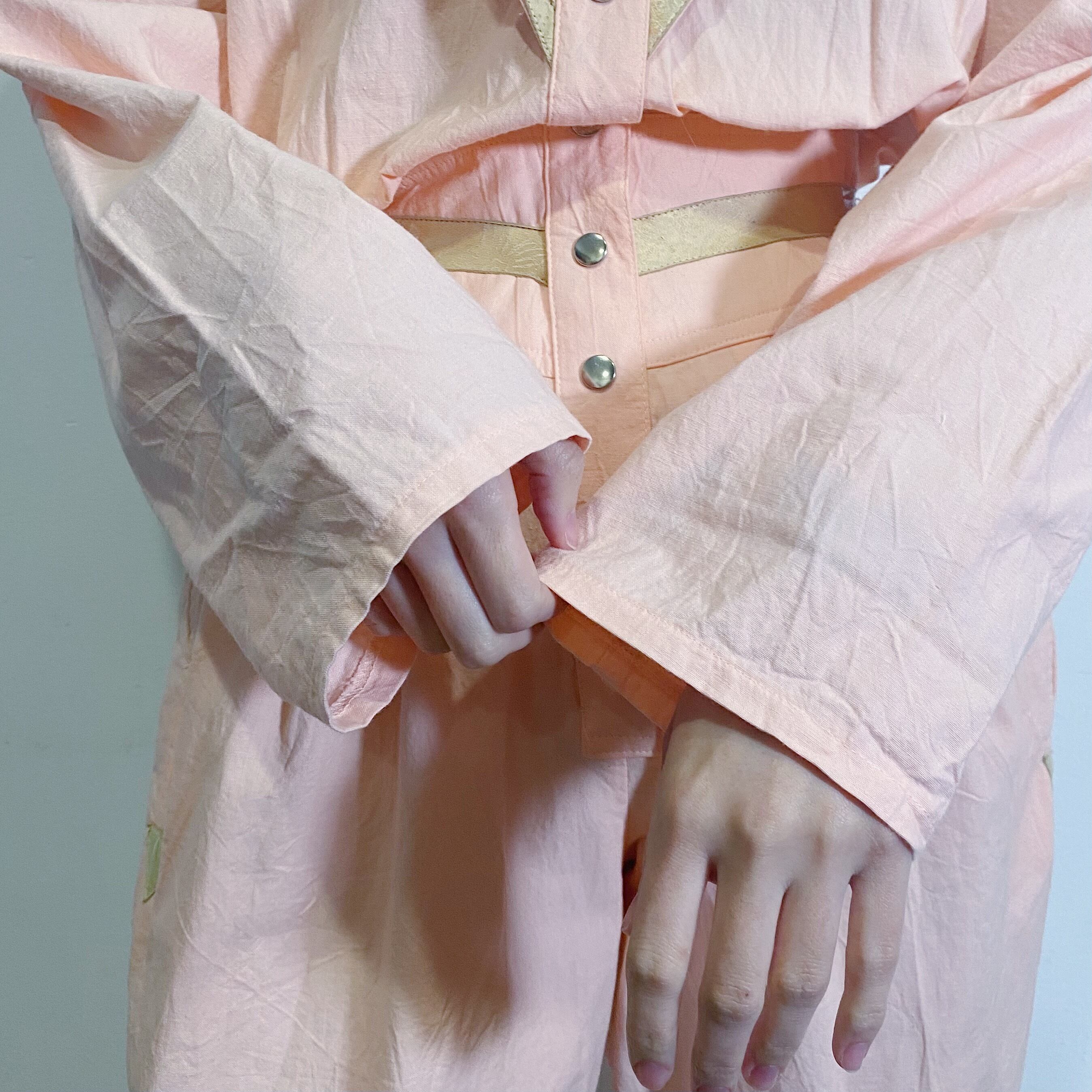 サーモンピンクの色合いも可愛く、コットン素材でデイリーに着こなしやすいのも嬉しいポイント。
