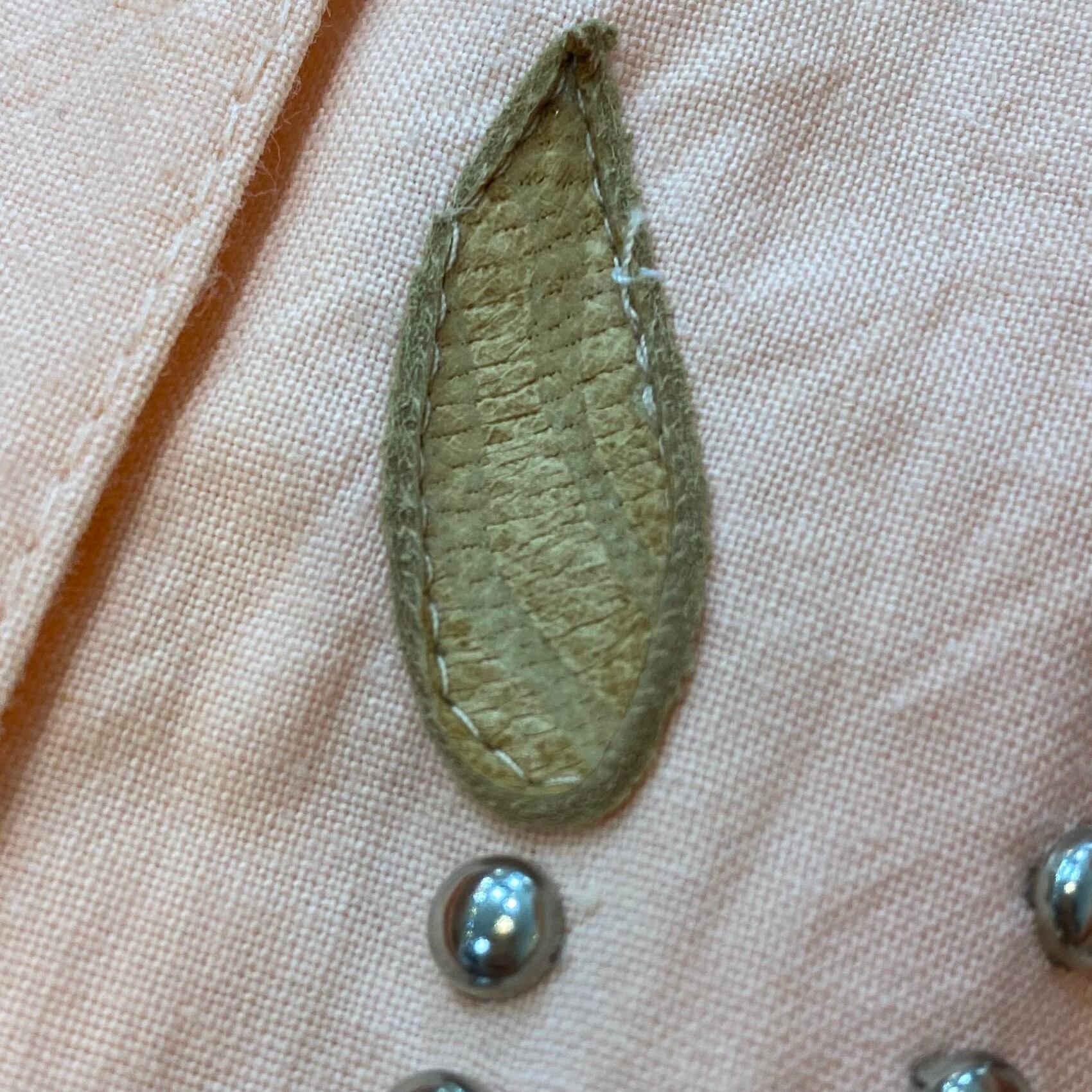 レザーの飾り部分に変色や縮み等のダメージが見受けられますが、気にならない程度かと思われます。
