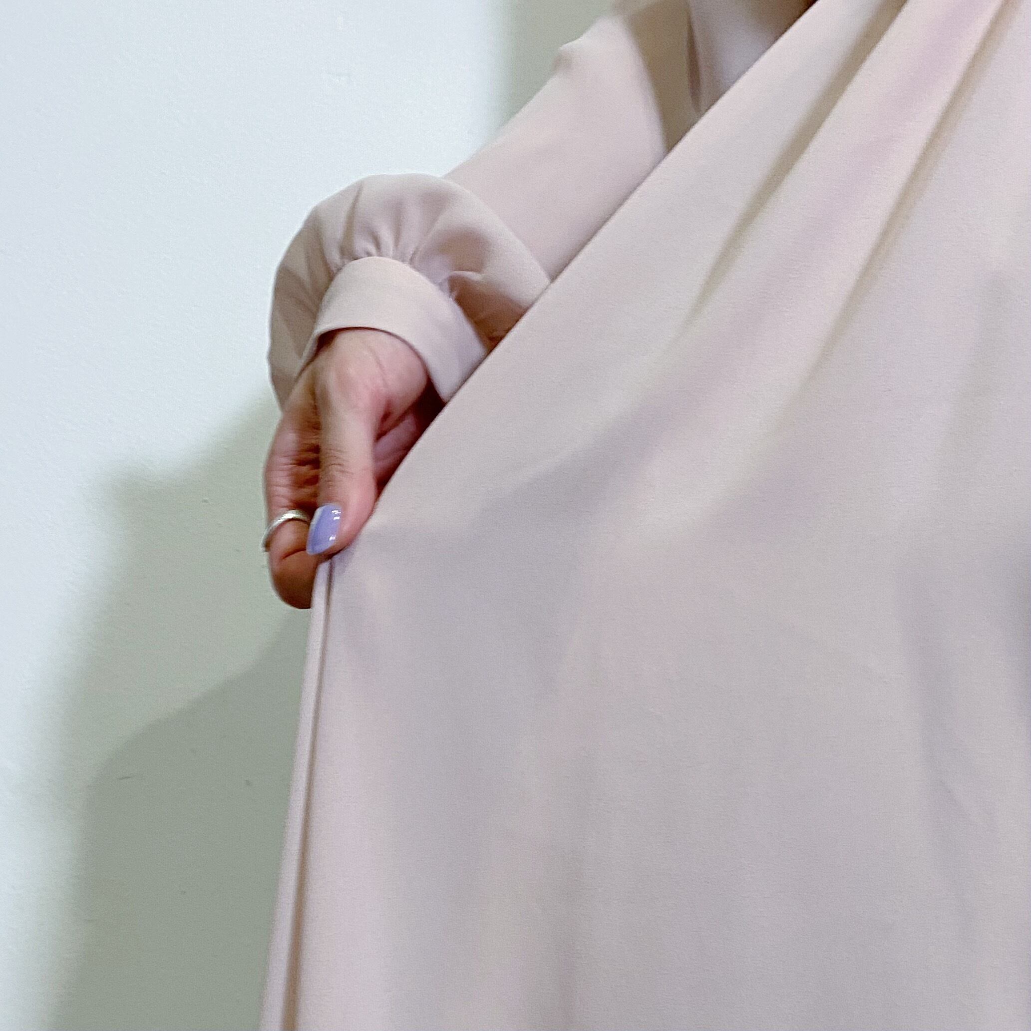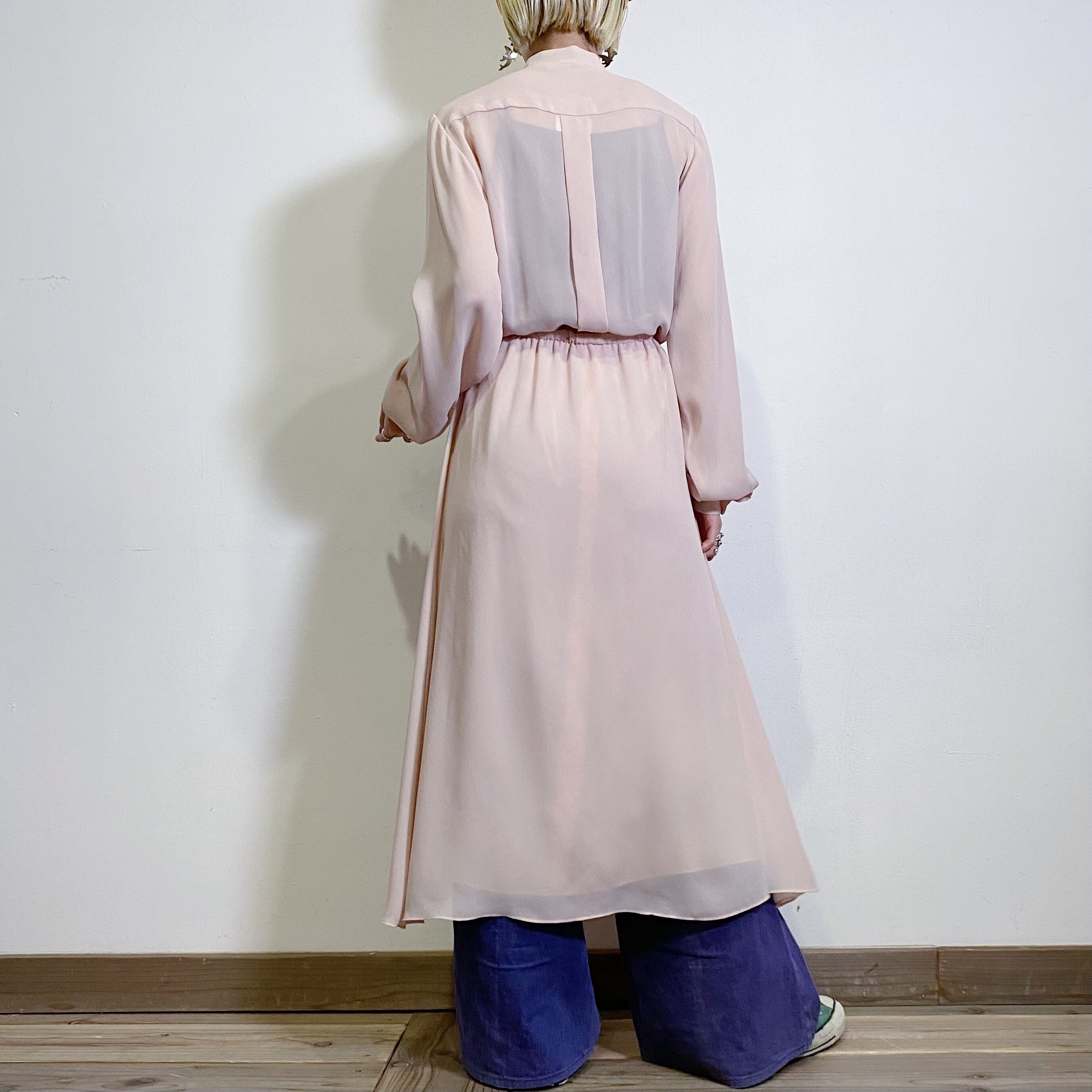 淡いスモーキーピンクにシフォン素材が可愛い80年代のシャツワンピースです。