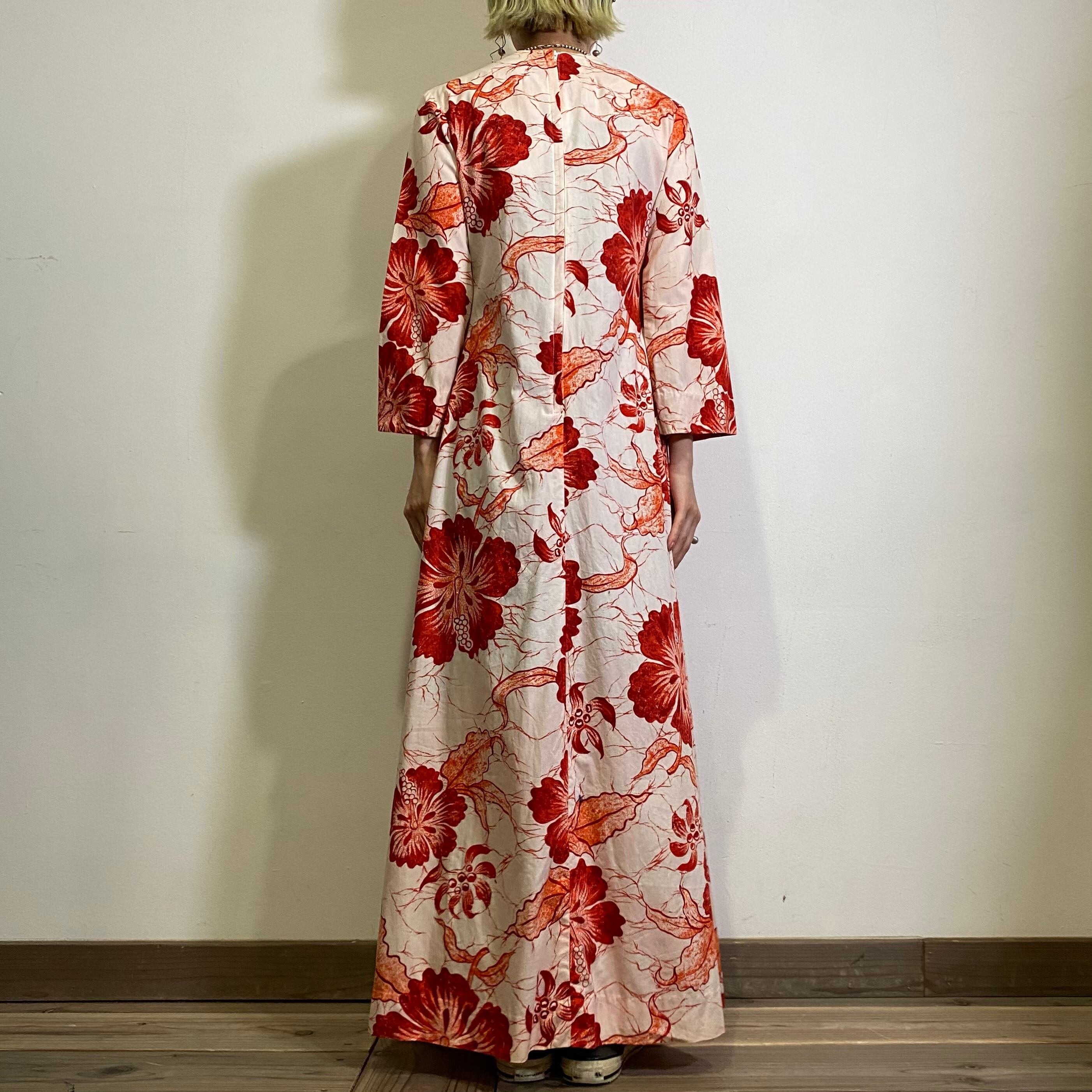 大きなハイビスカス柄がとっても素敵な、70年代のハワイアンドレスです。