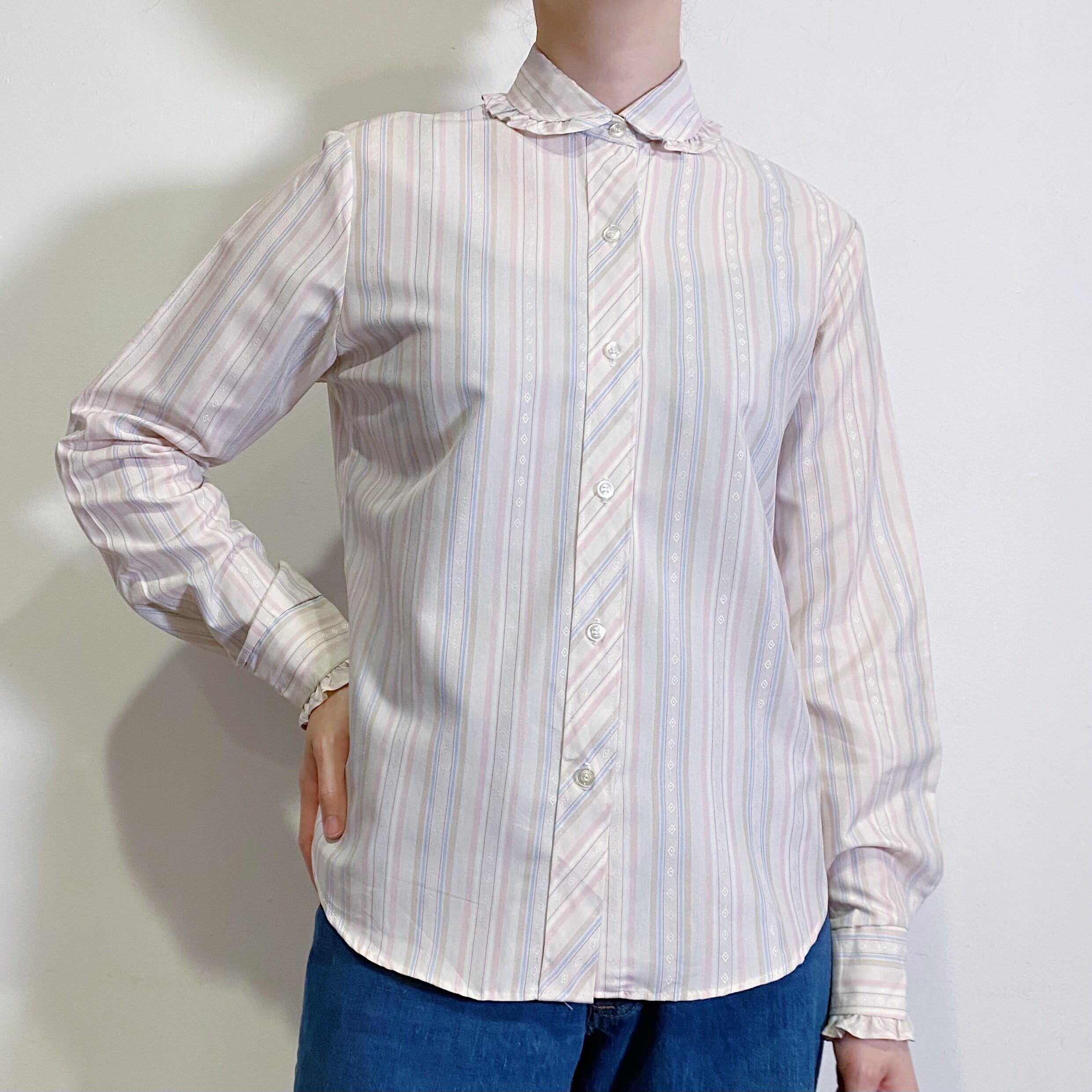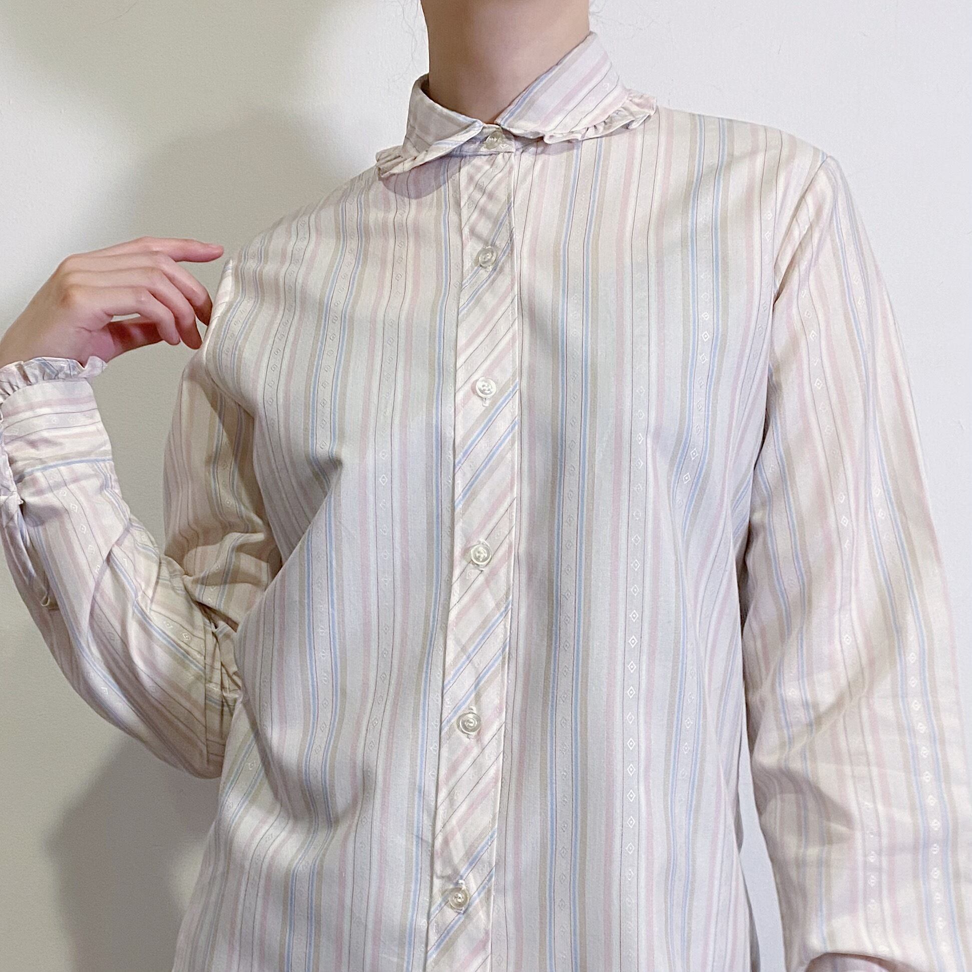 襟やカフスのフリルが可愛い、70年代の長袖シャツです。