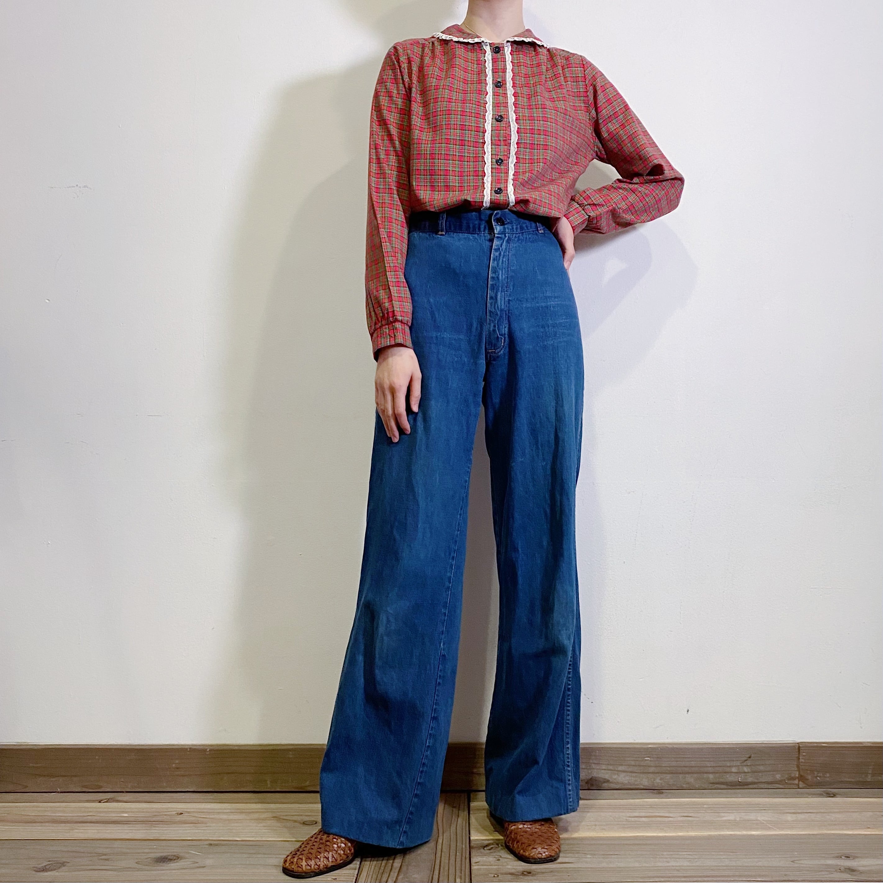 タータンチェックとレースの組み合わせが可愛い、70年代のブラウスです。
