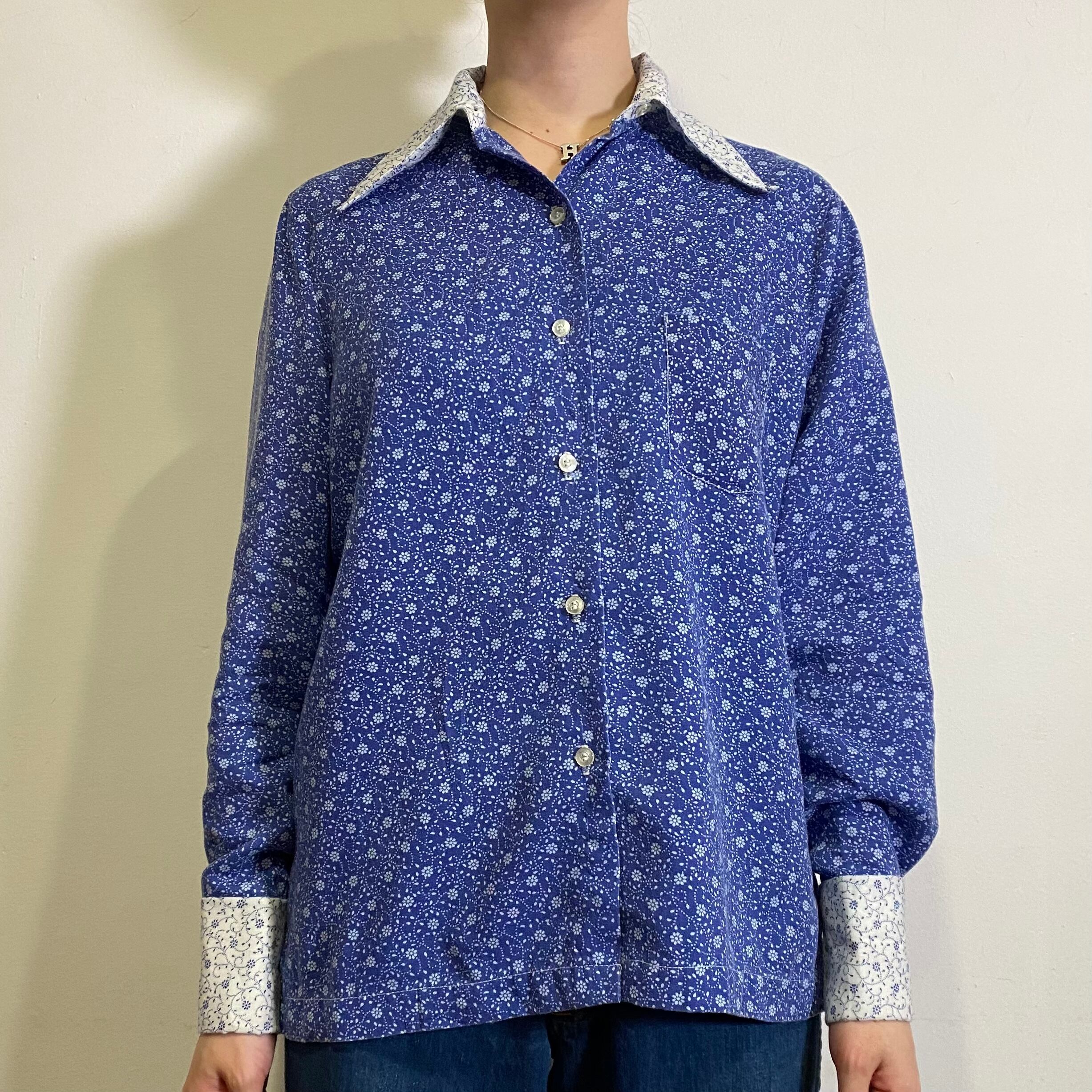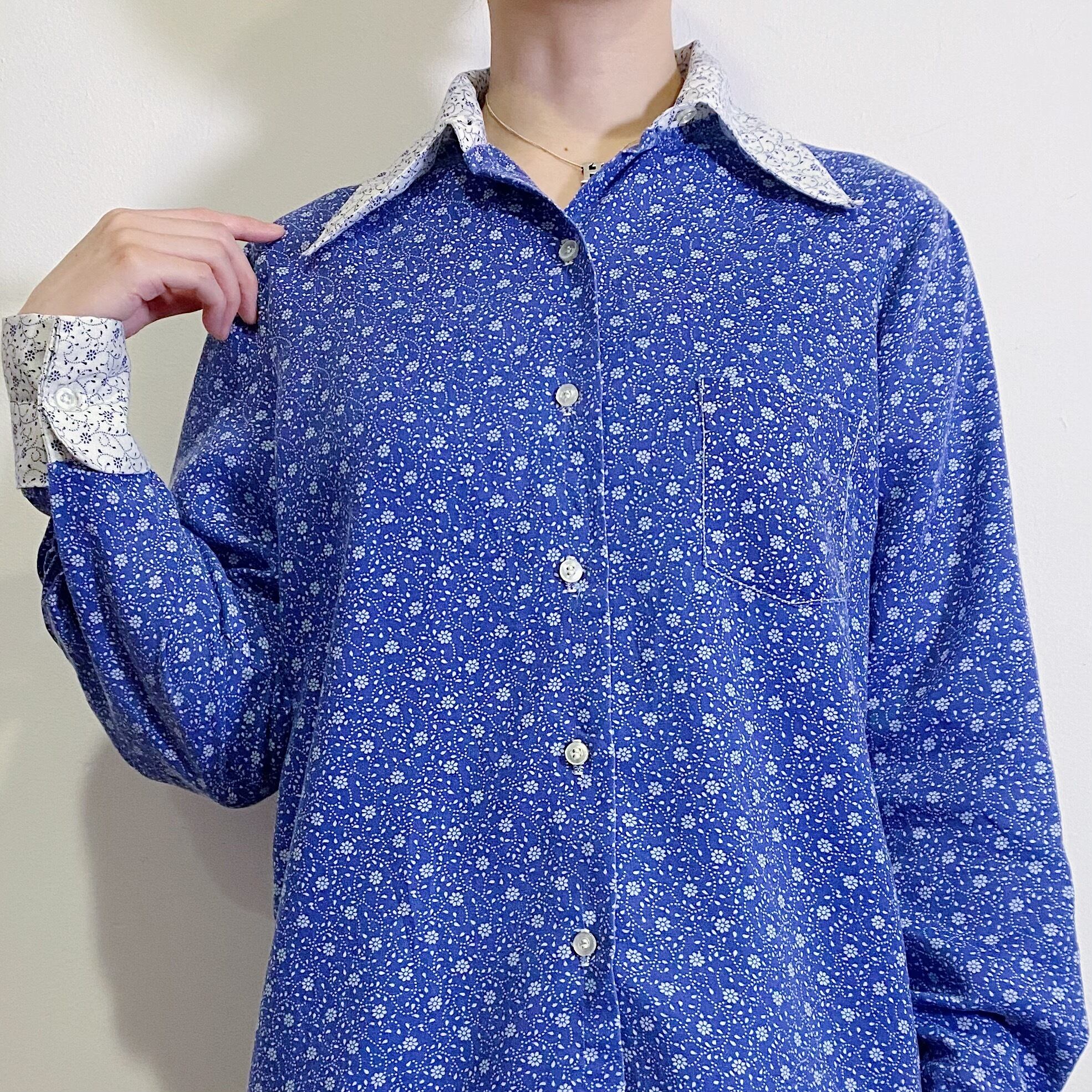 大きめの襟に小花柄がキュートな70年代のシャツです。