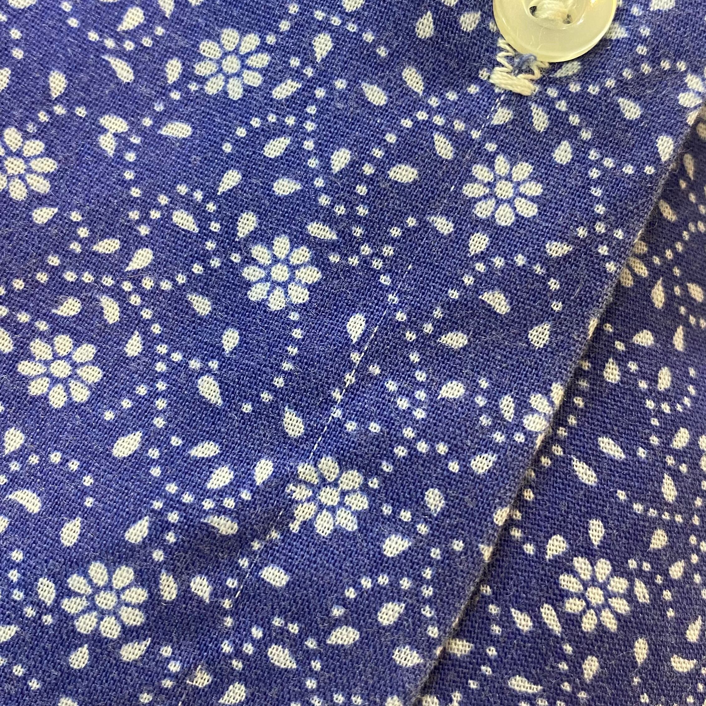 70s blue and white flower shirt