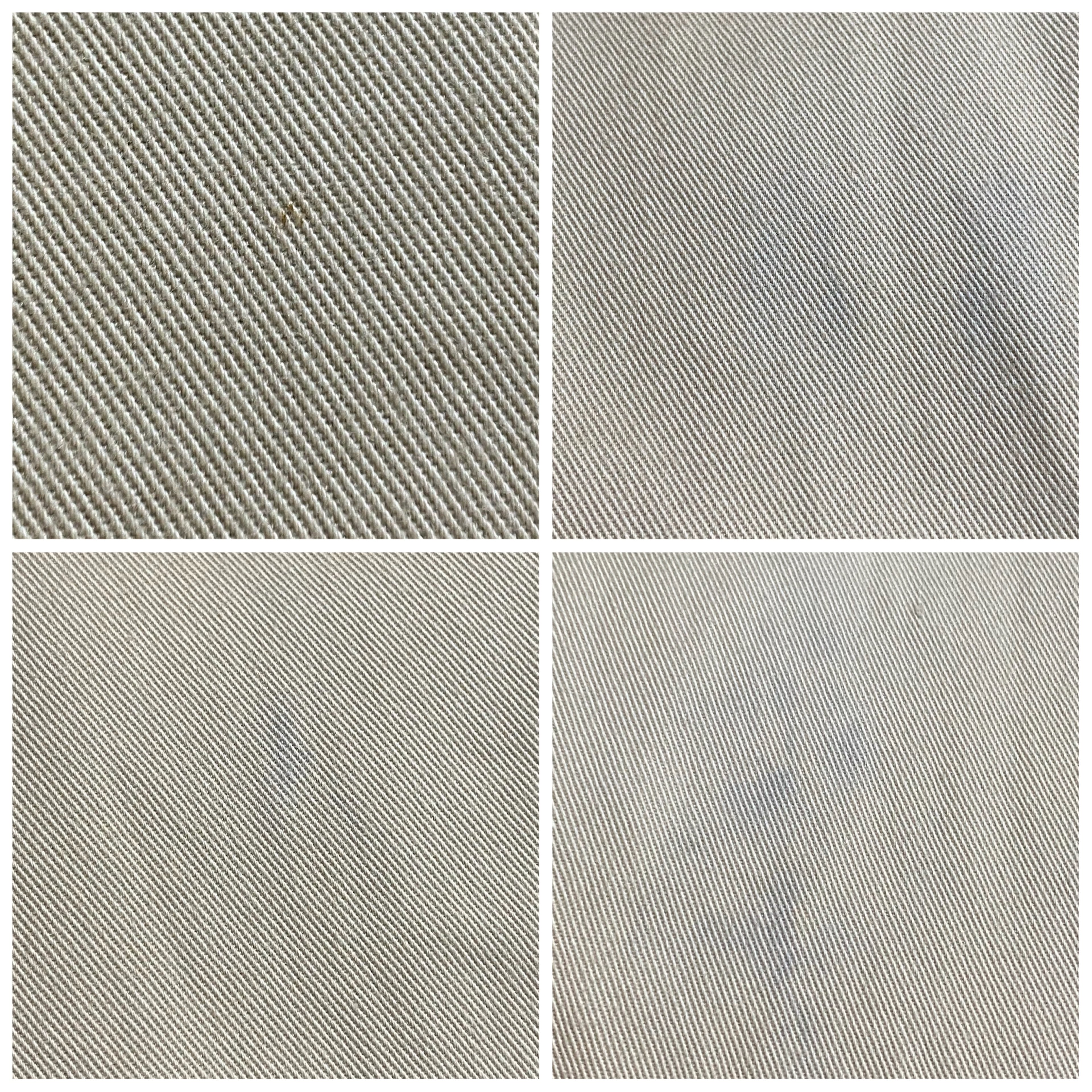 軽い汚れや薄っすらとした色移りが見受けられますが、ほぼ気にならない程度かと思われます。