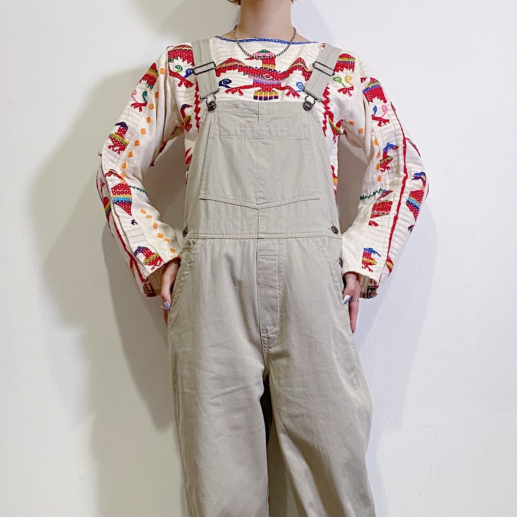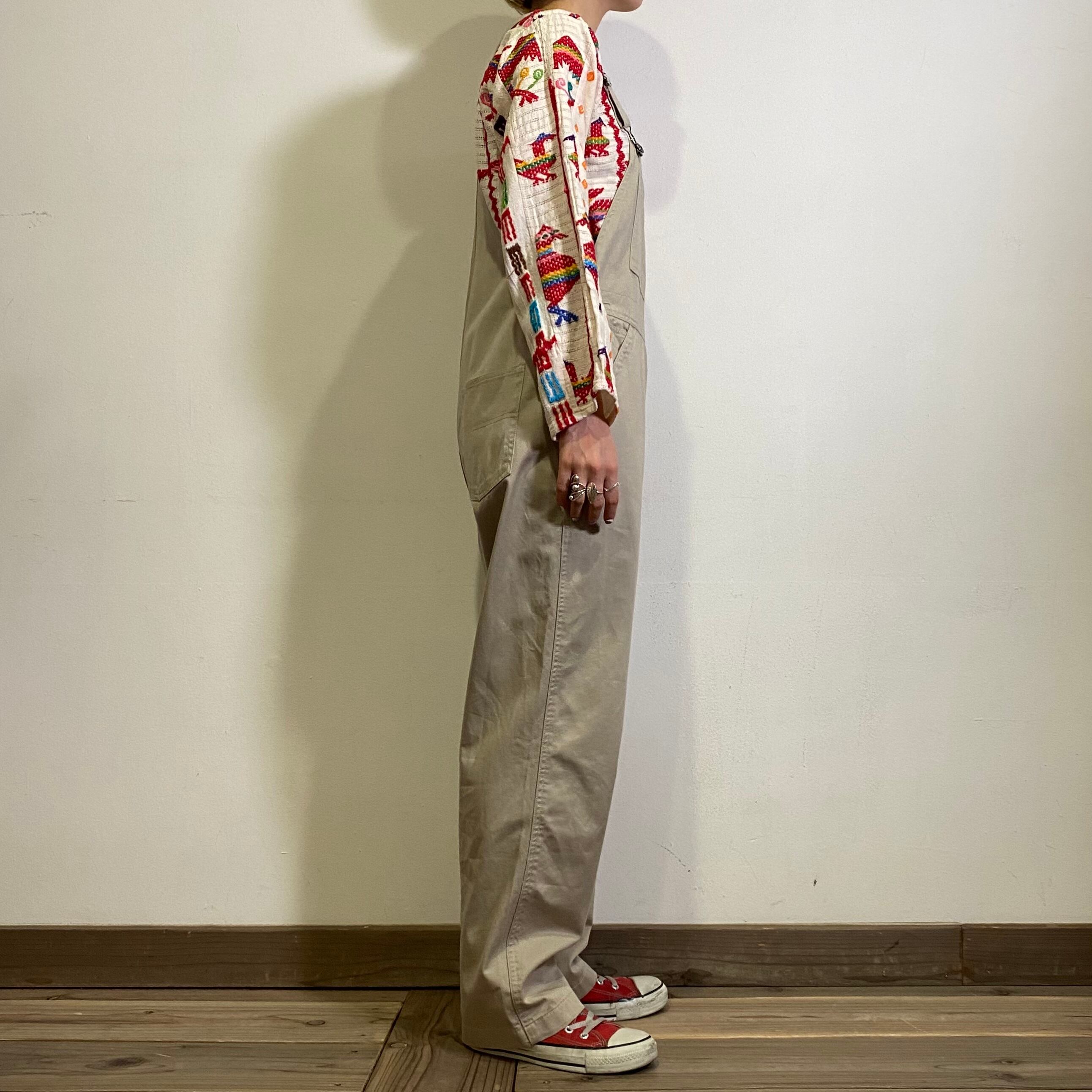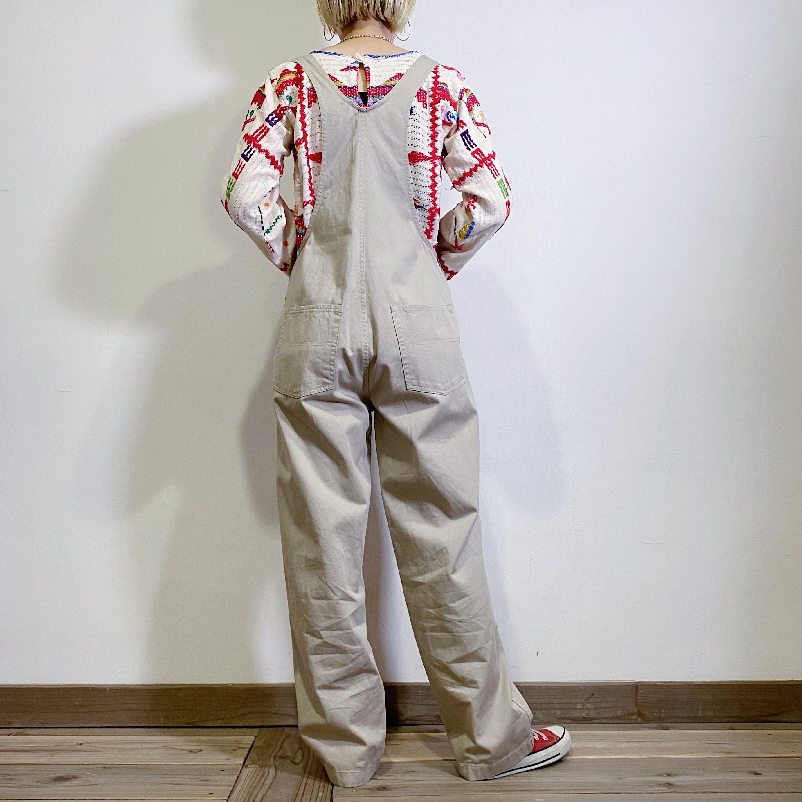 シンプルで使い勝手の良さそうな、ベージュカラーのオーバーオールです。