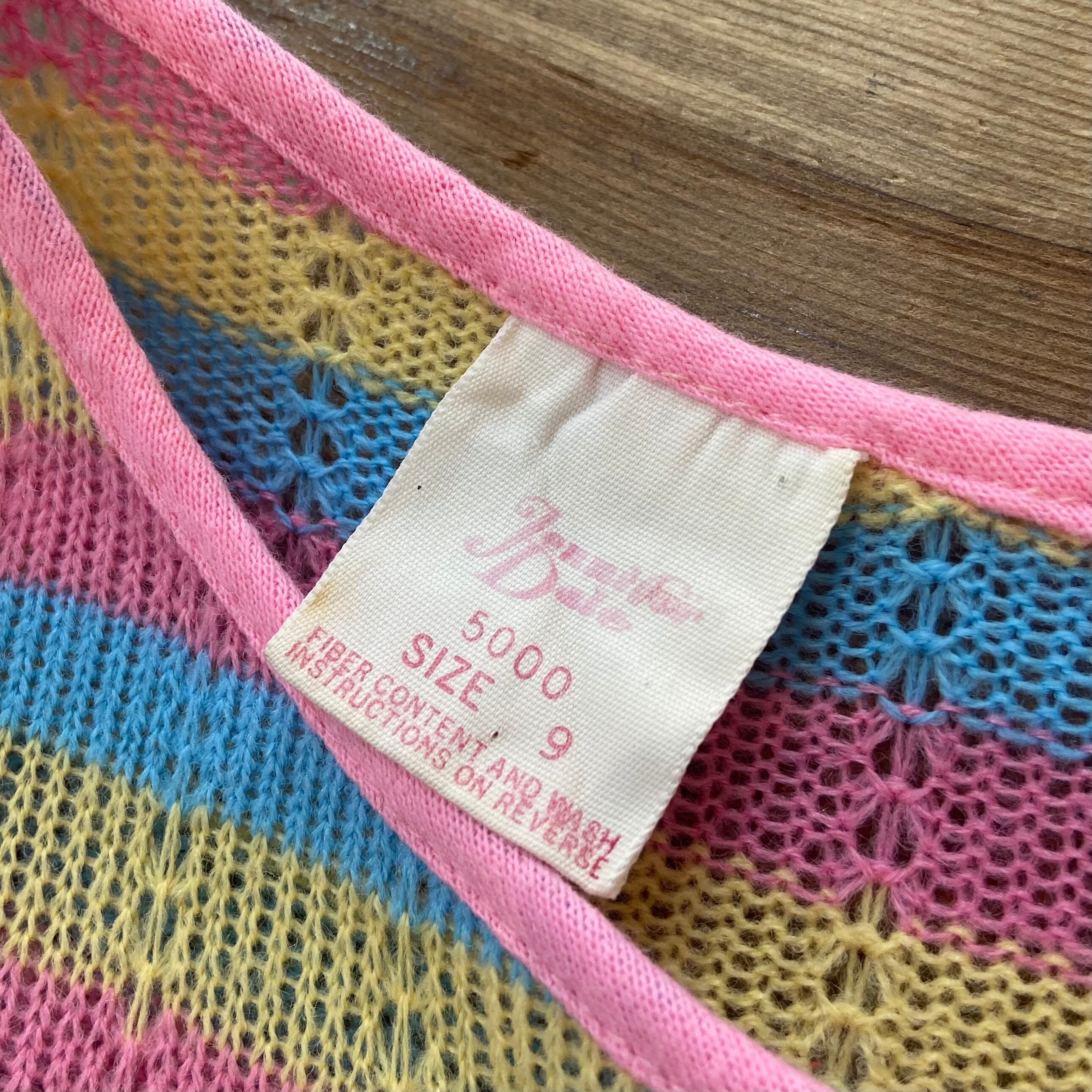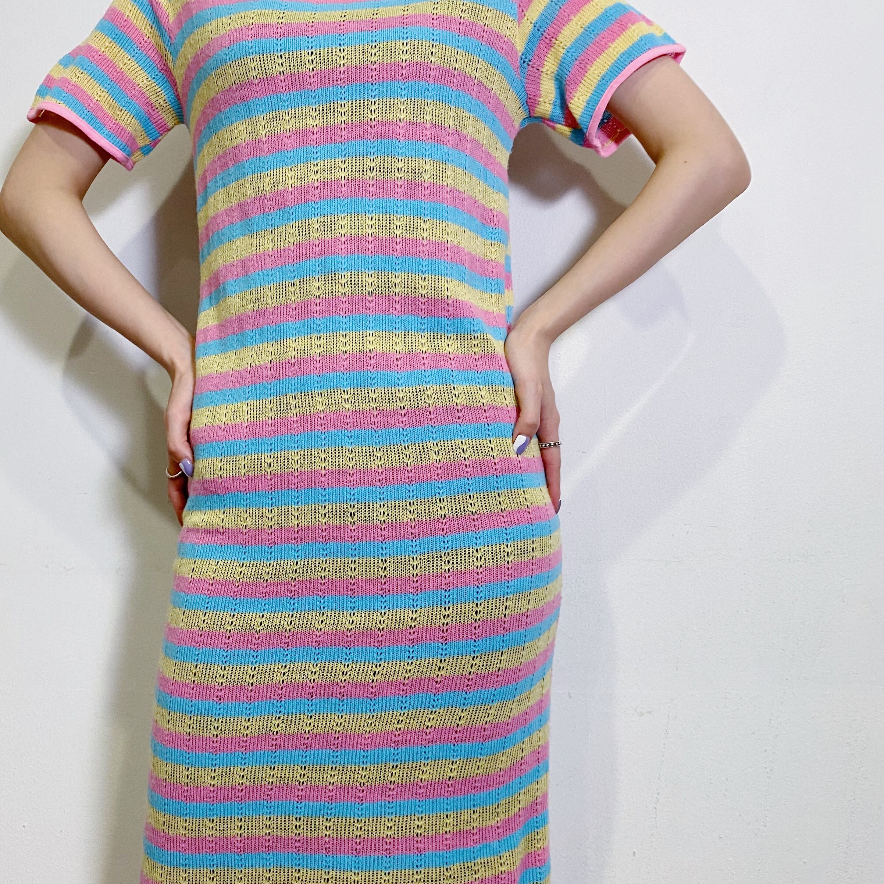 パステルカラーのピンク・ブルー・イエローのボーダーがキュートな、80年代のロングワンピースです。