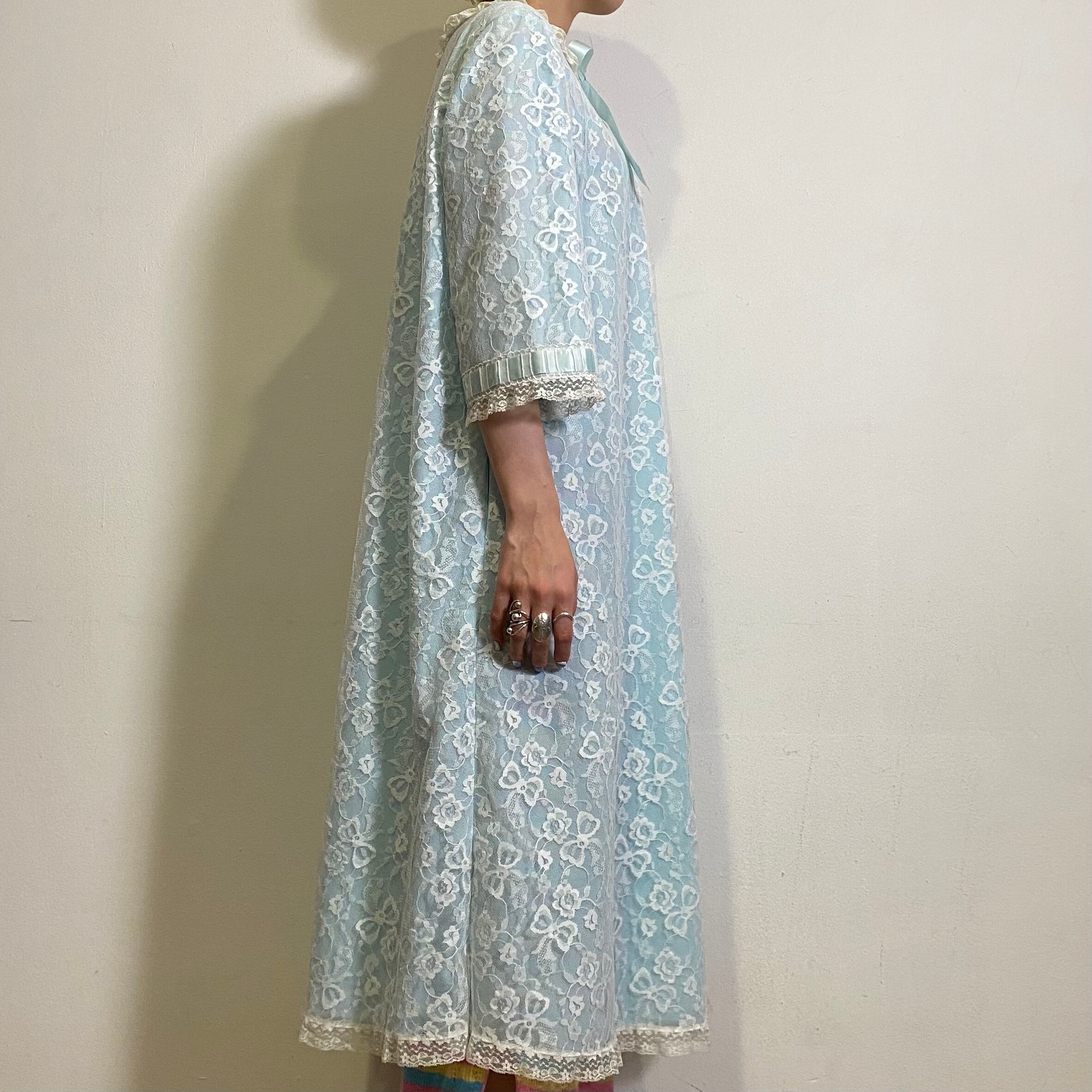 淡いサックスブルーの総レースがとってもかわいい、60年代のロングガウンです。