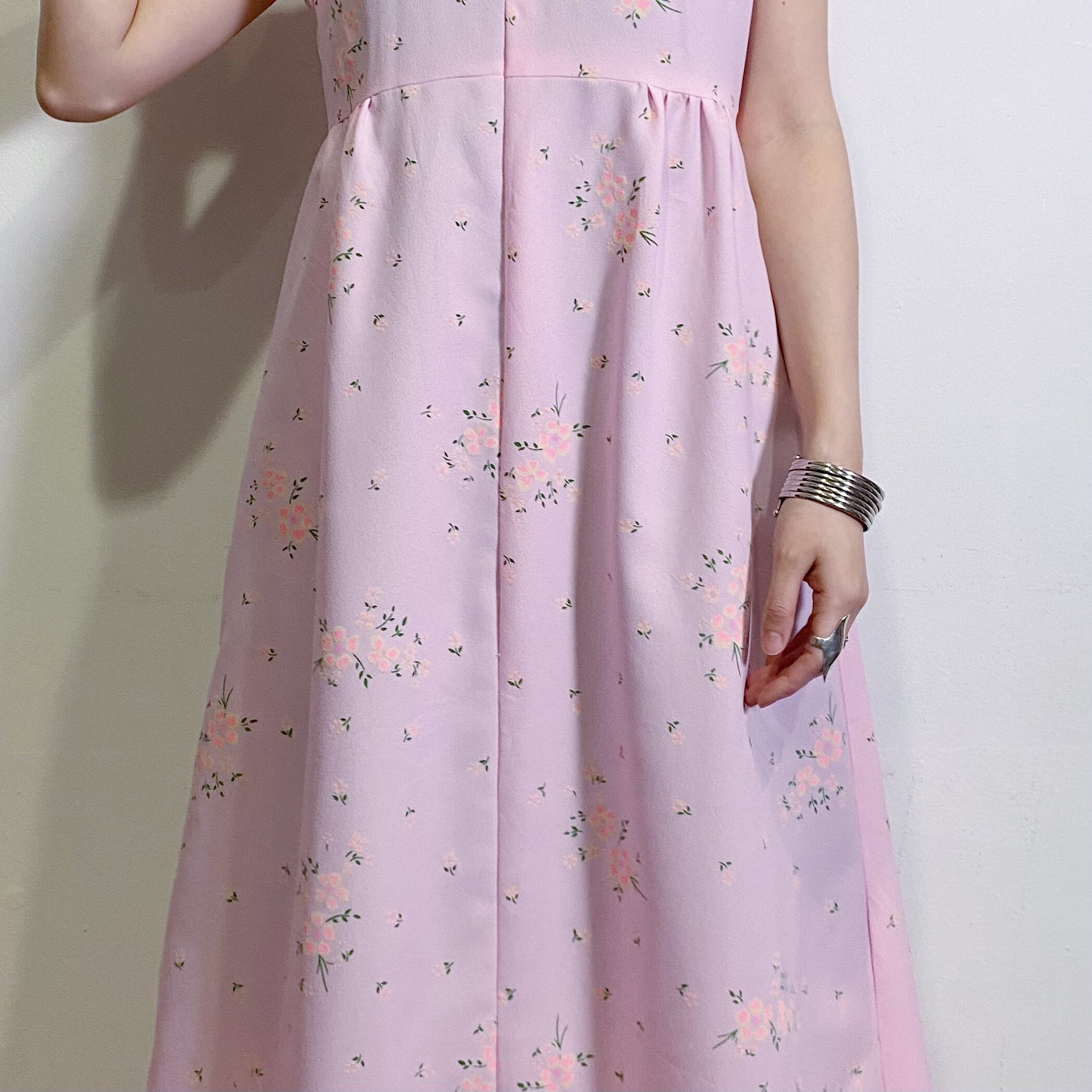 淡いピンクにお花のプリントが可愛い、70年代のノースリーブワンピースです。
