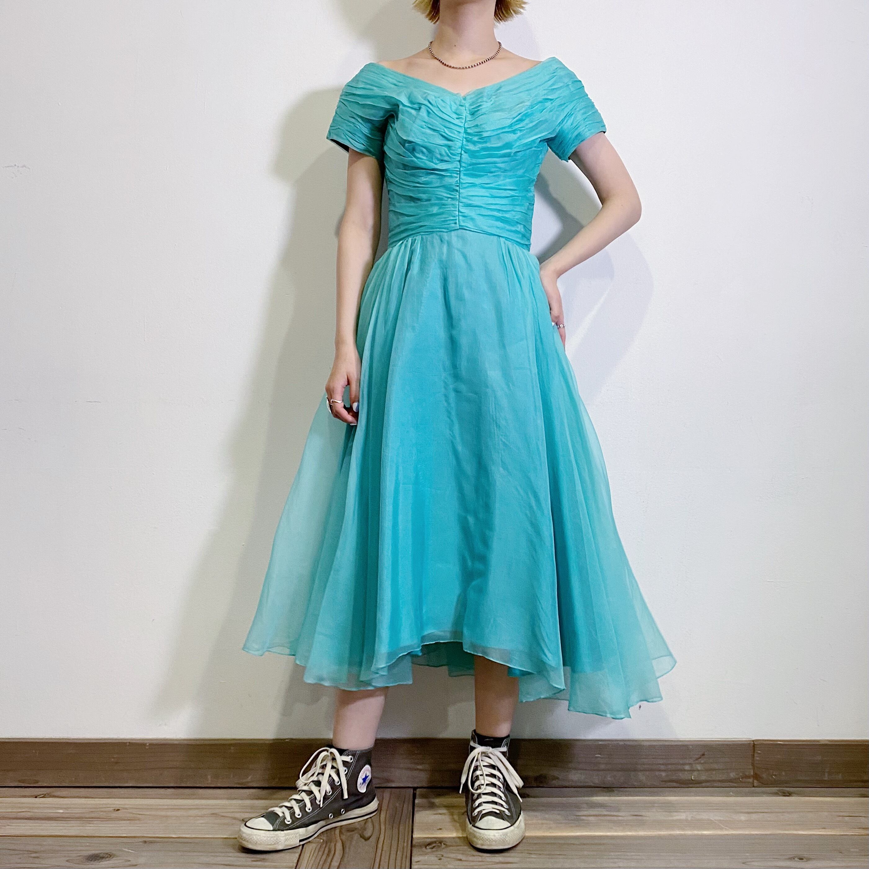 鮮やかなライトブルーが目を惹く、50年代のヴィンテージドレスです。
