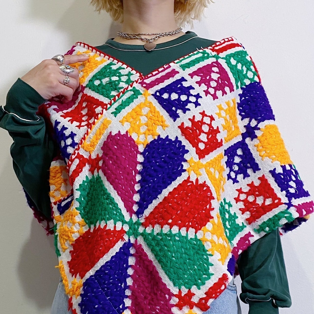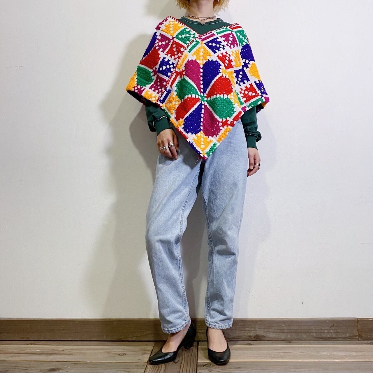 びっしりと施されたカラフルな手刺繍が可愛い、メキシコのポンチョです。