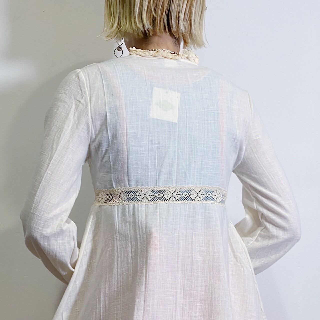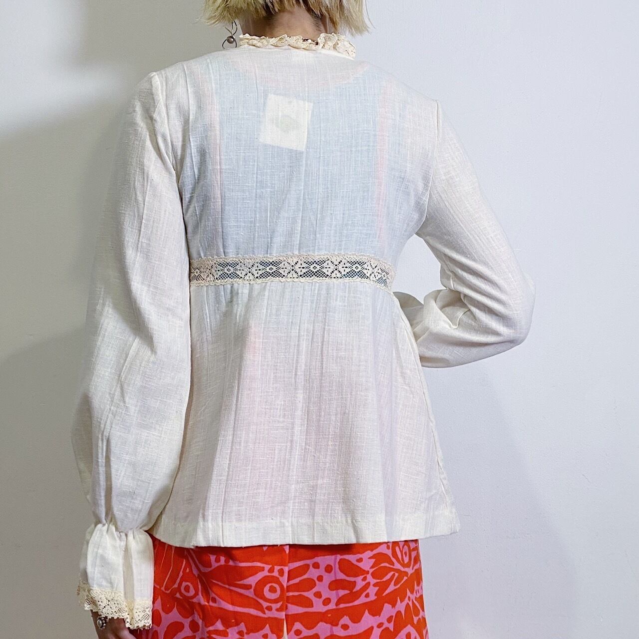生成りカラーのコットン素材にレース使いがとても素敵な、70年代のブラウスです。