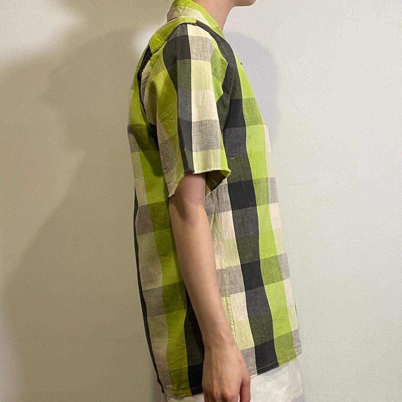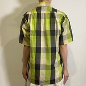 ライムグリーンの色合いが可愛い、70年代のチェックシャツです。