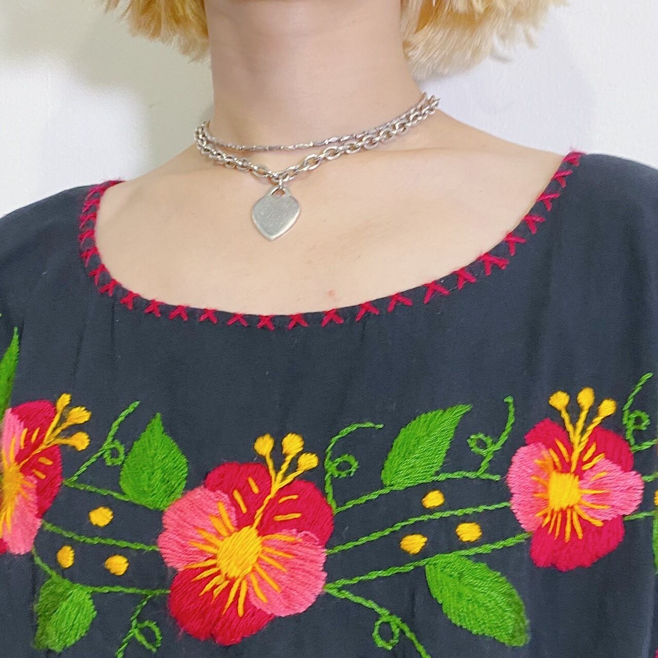 お花の手刺繍が素敵な、70年代のチュニックトップです。