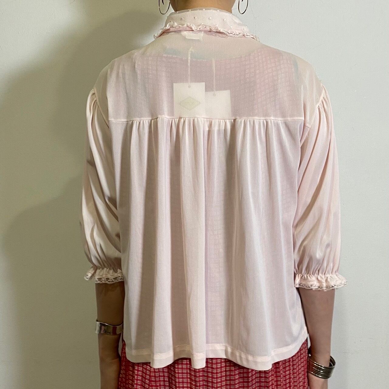 ピンドットは刺繍になっていてレース使いも素敵な一枚。