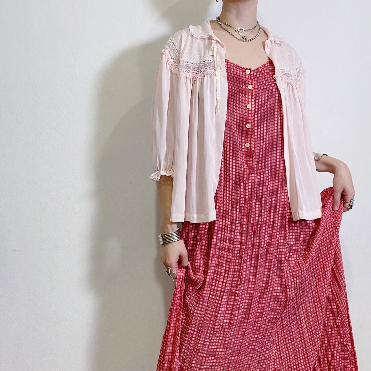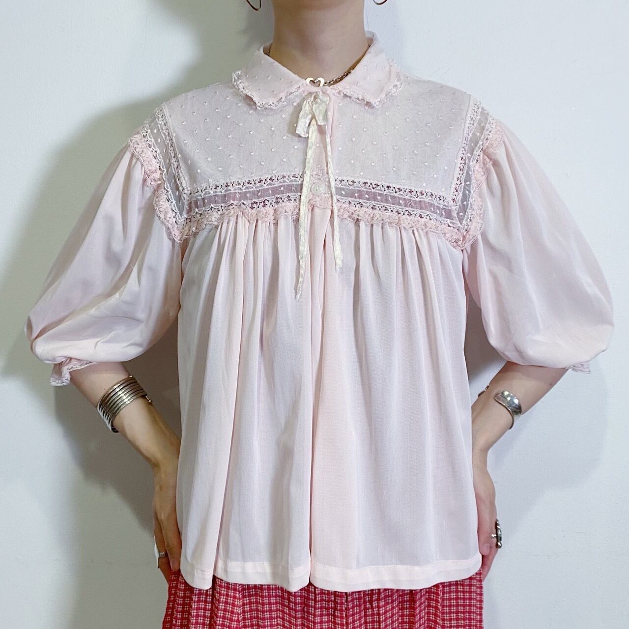 淡いベビーピンクカラーがキュートな、60年代のベッドジャケットです。
