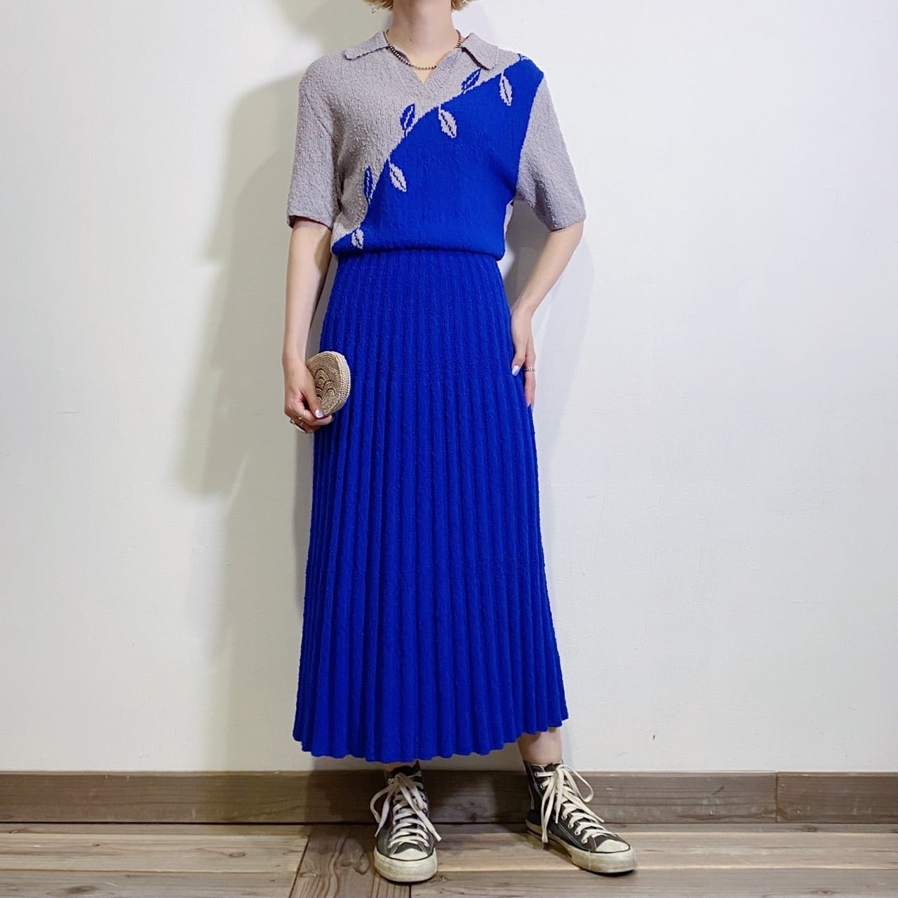 鮮やかなブルーとグレーのバイカラーが可愛い、40年代のワンピースです。
