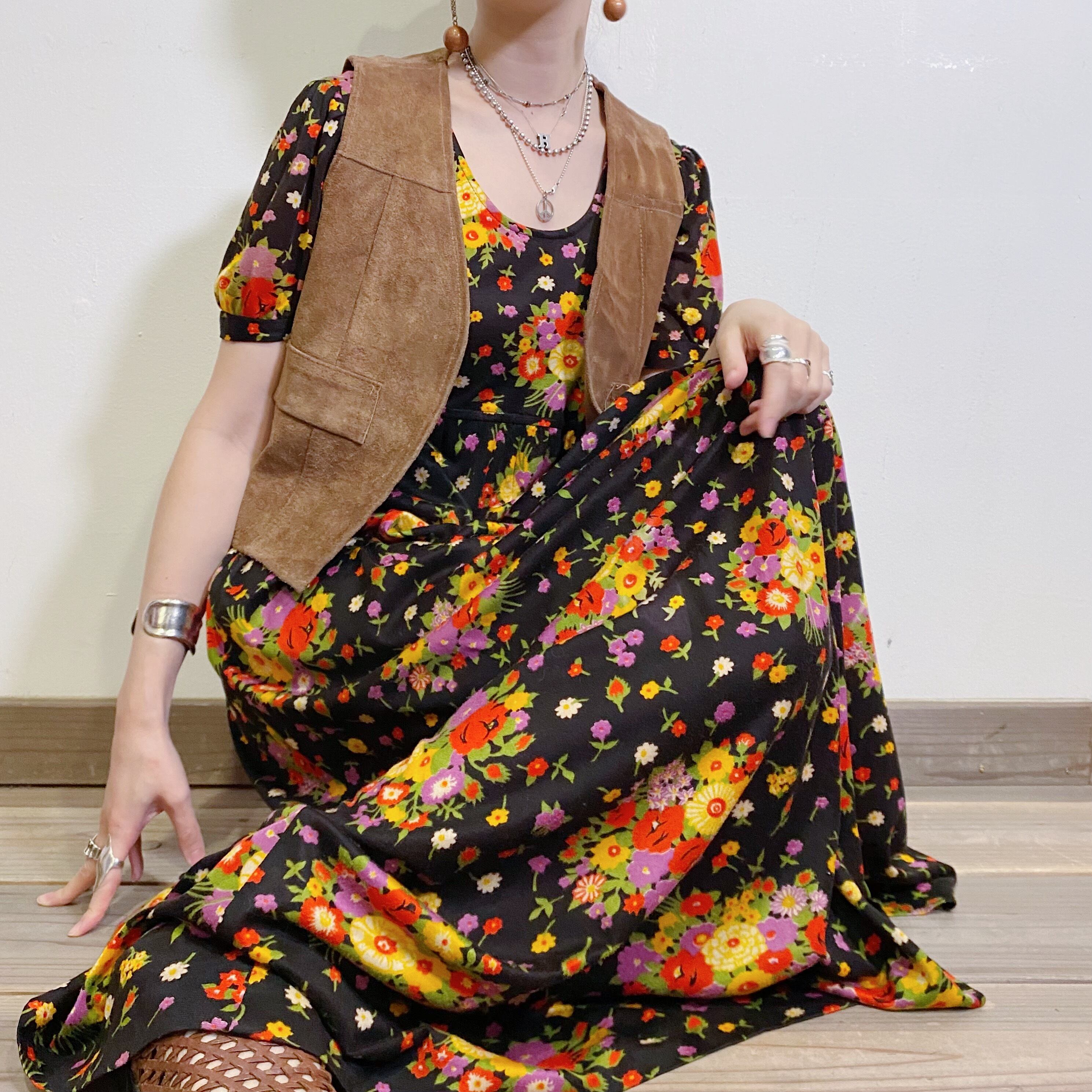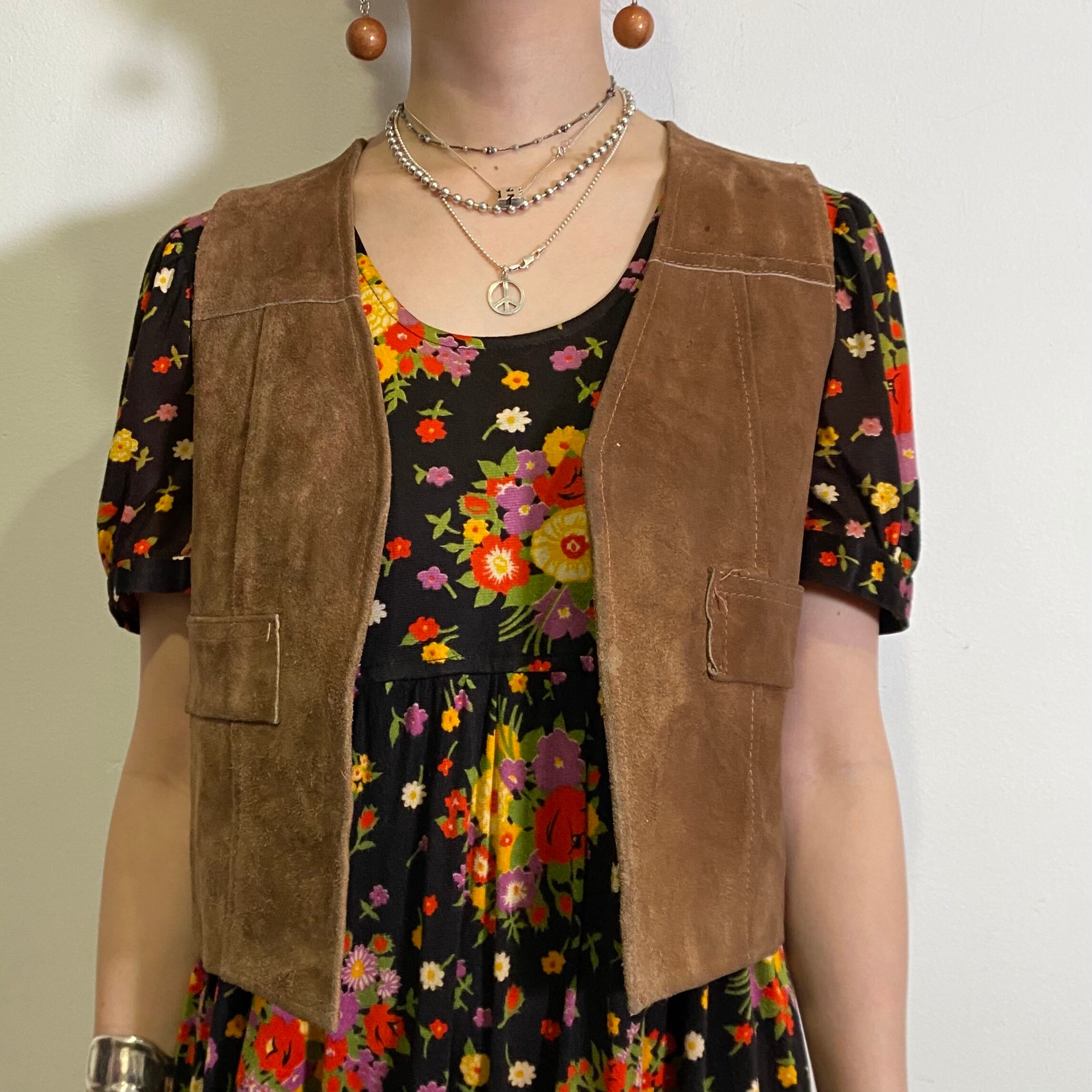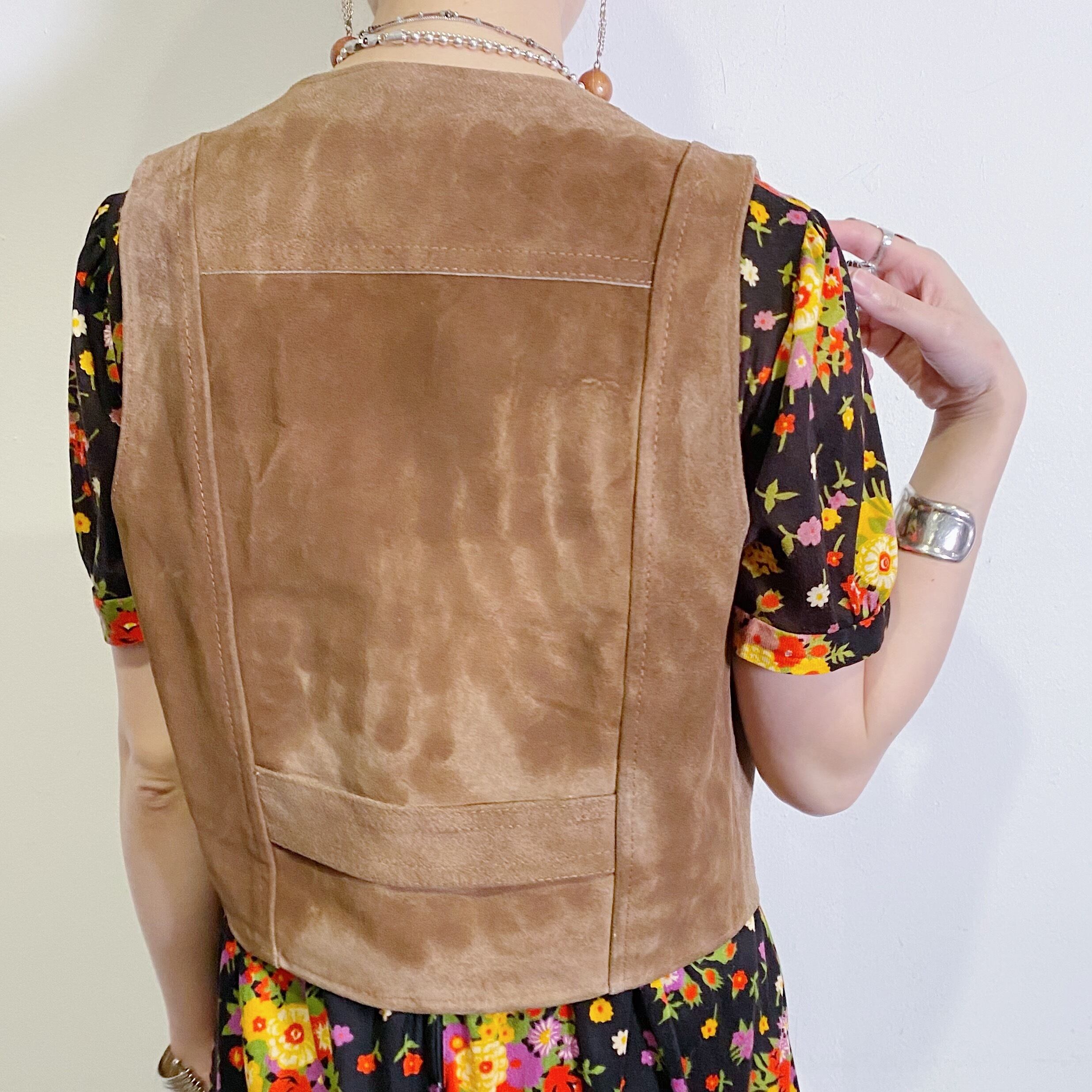 ブラウンカラーが使い勝手のいい、70年代のスエードベストです。