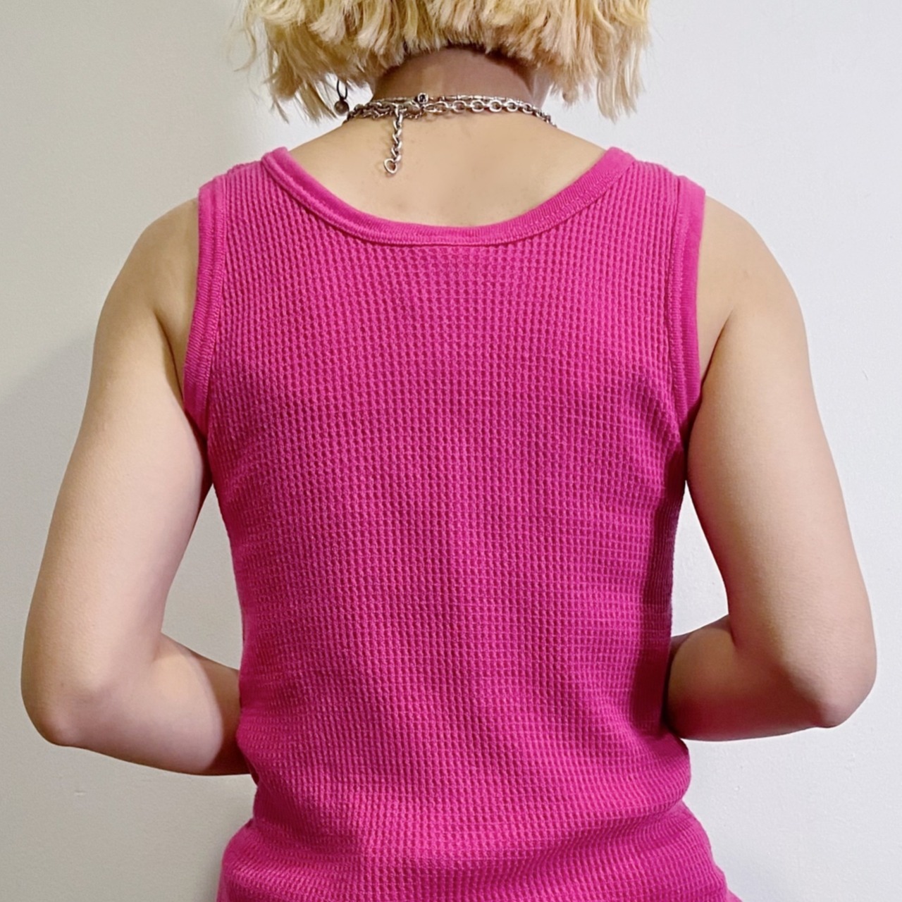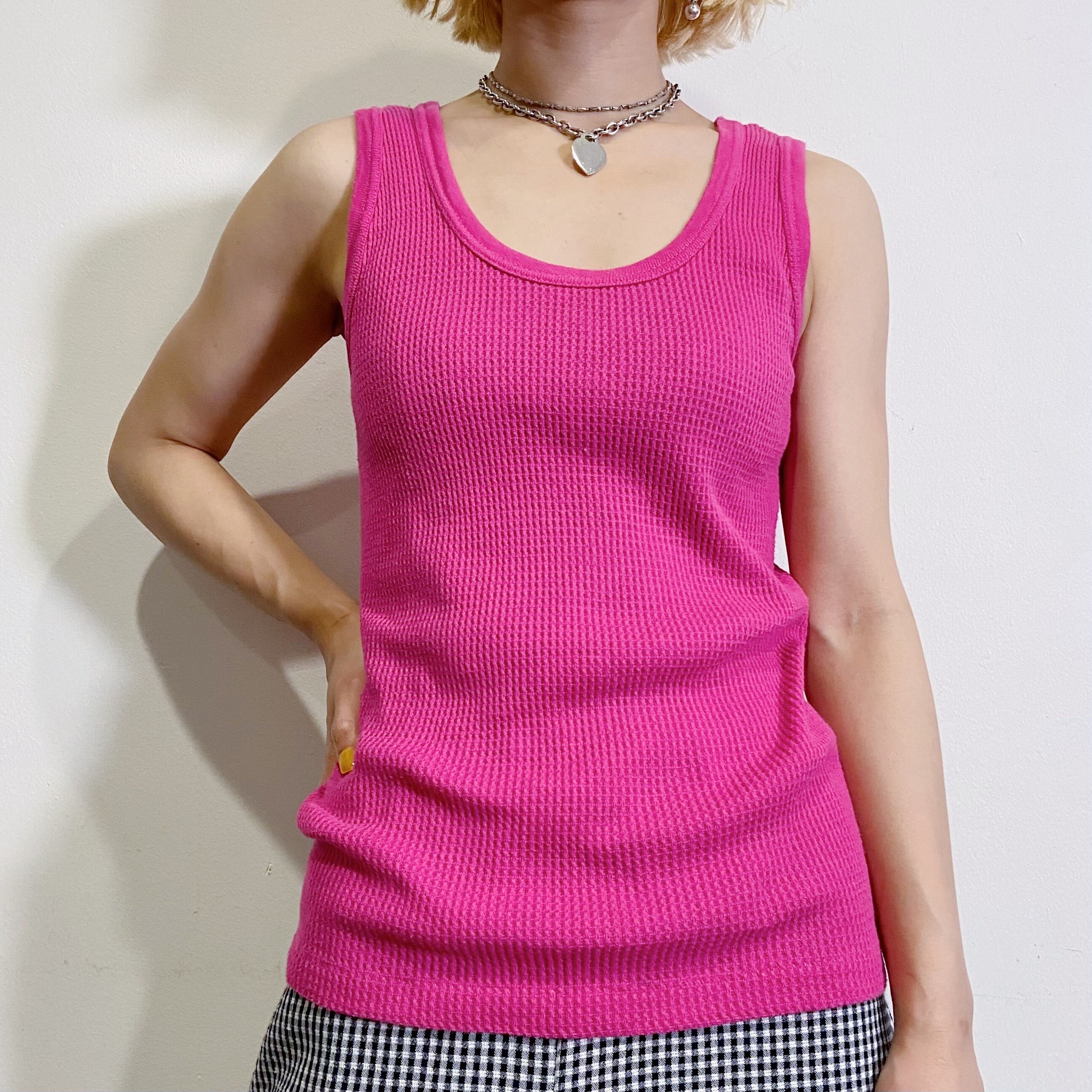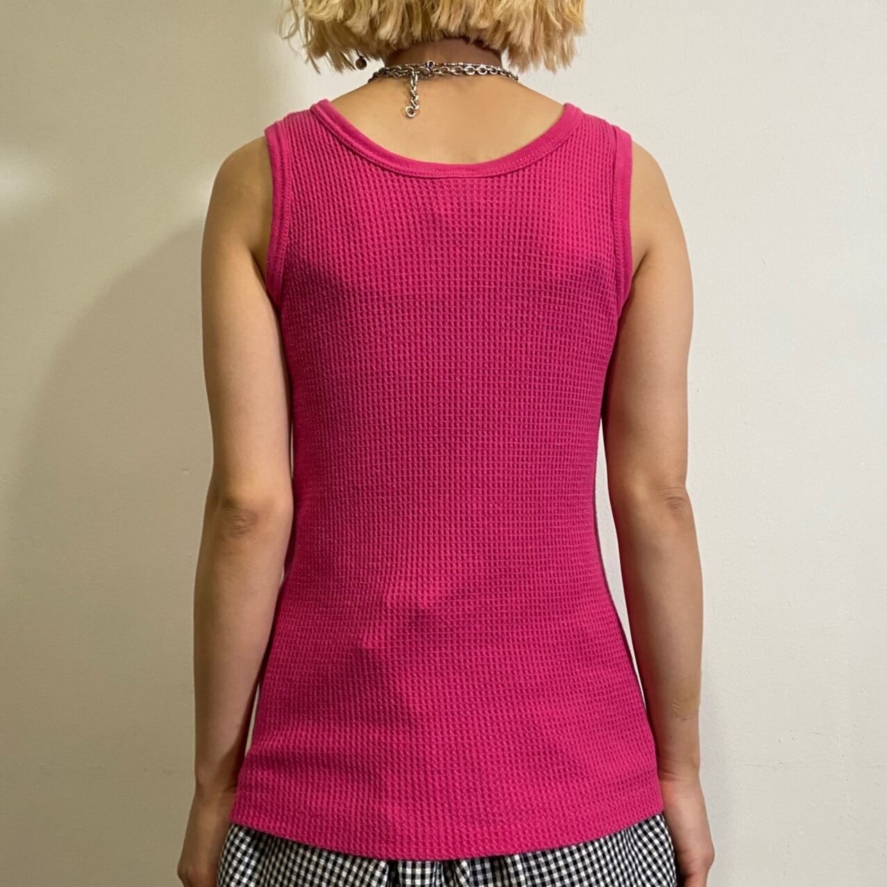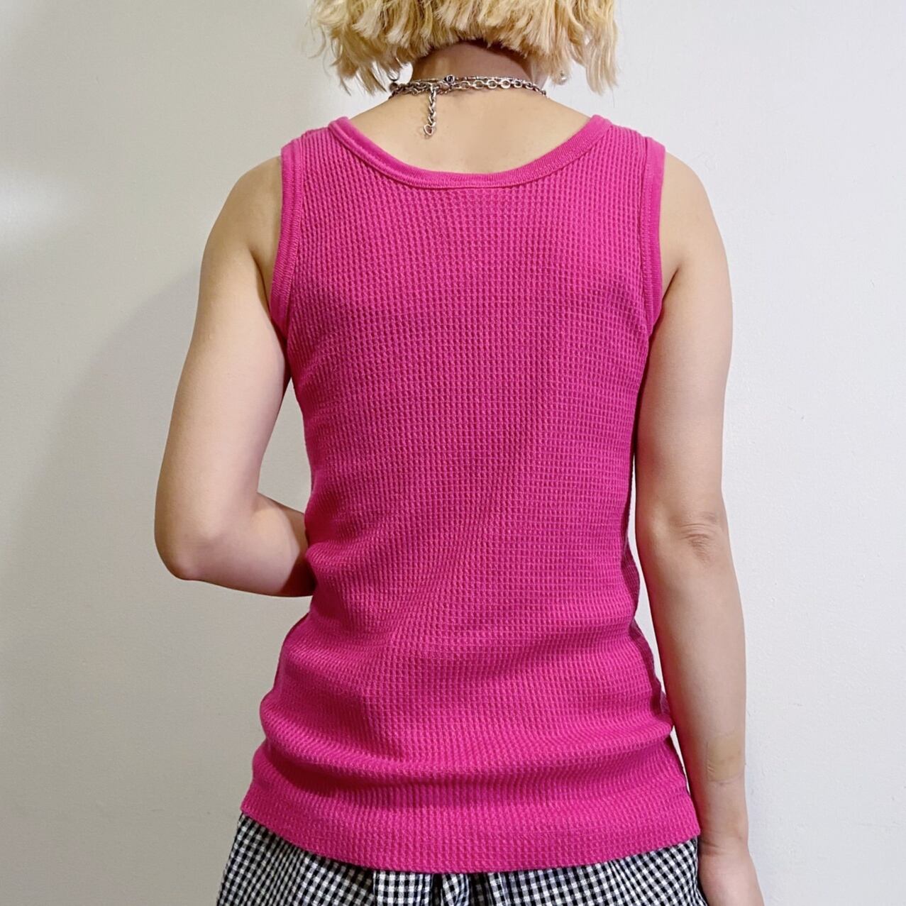 ビビットカラーなピンクが可愛い、タンクトップです。