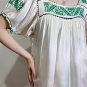 サテン素材に細かいクロスステッチで施された刺繍が美しい、メキシコの40年代のチュニックです。