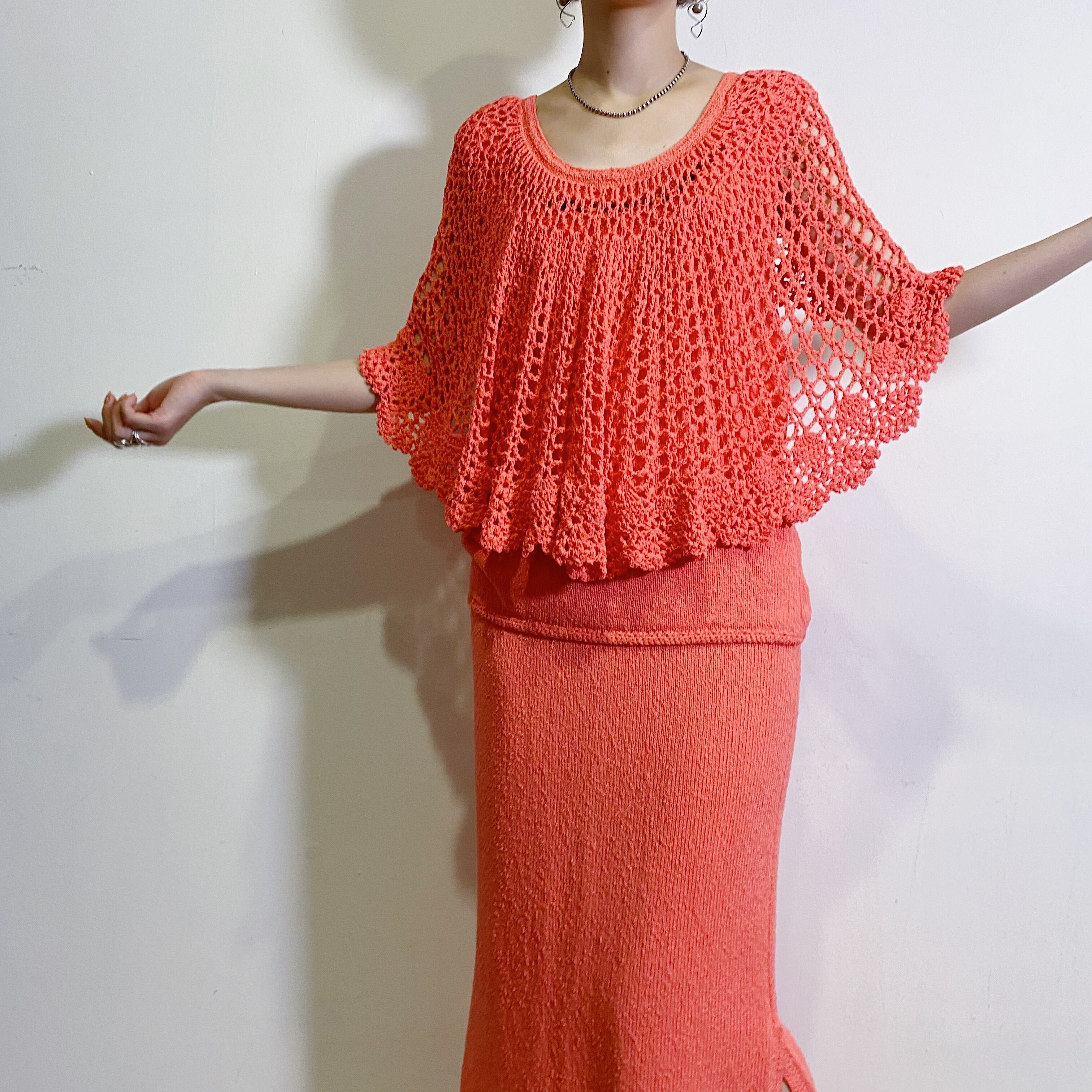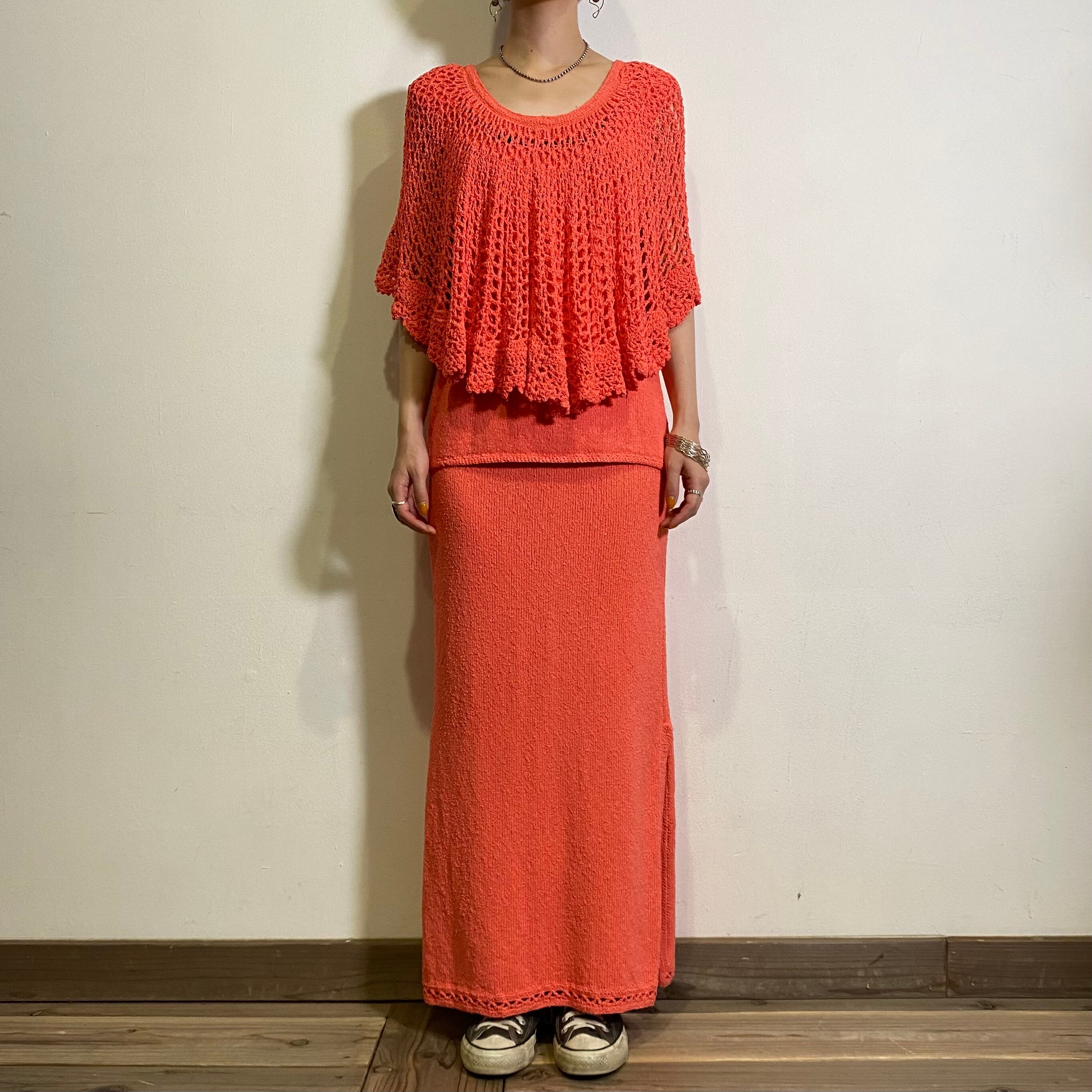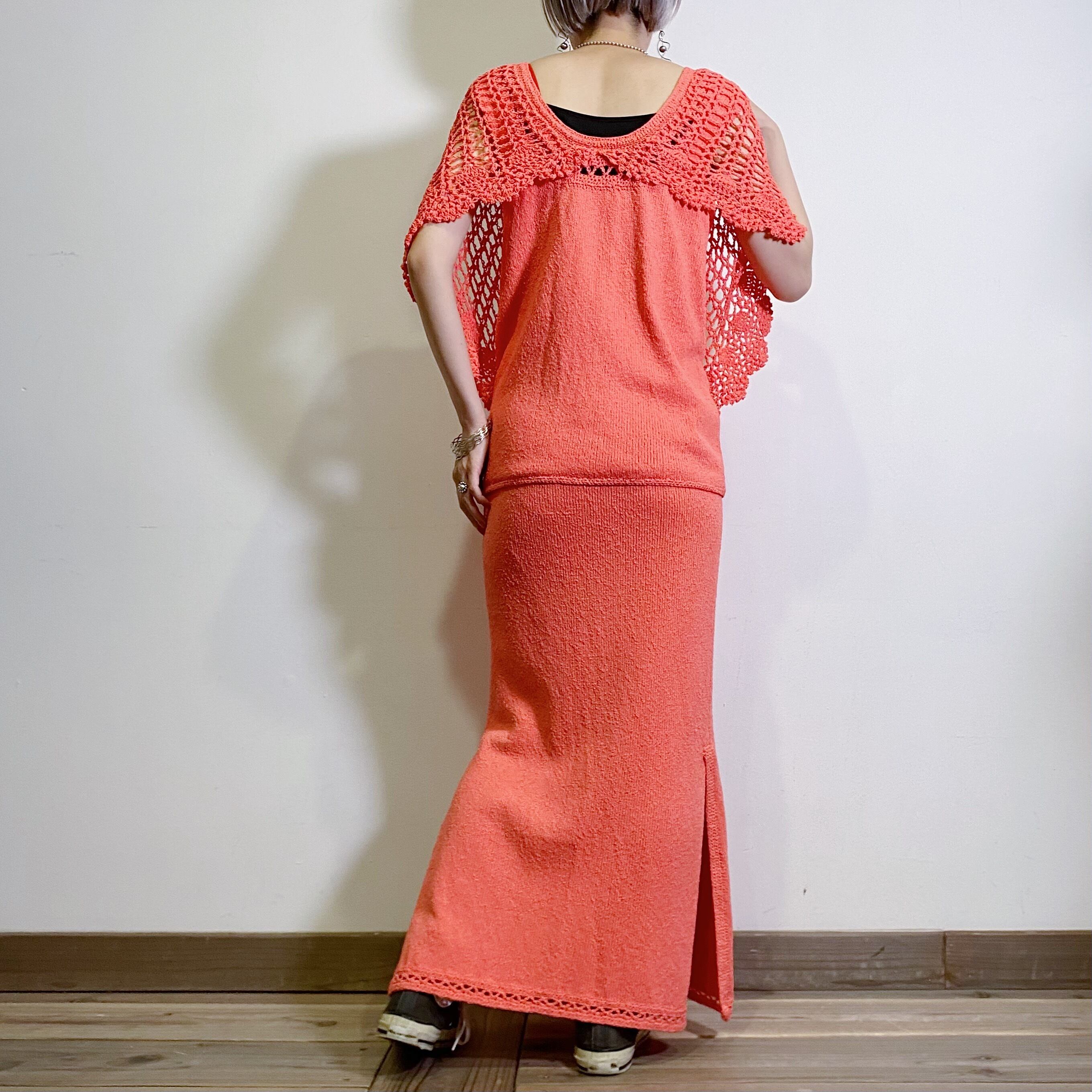 オレンジとピンクの中間のような絶妙な色合いが可愛い、70年代のセットアップです。