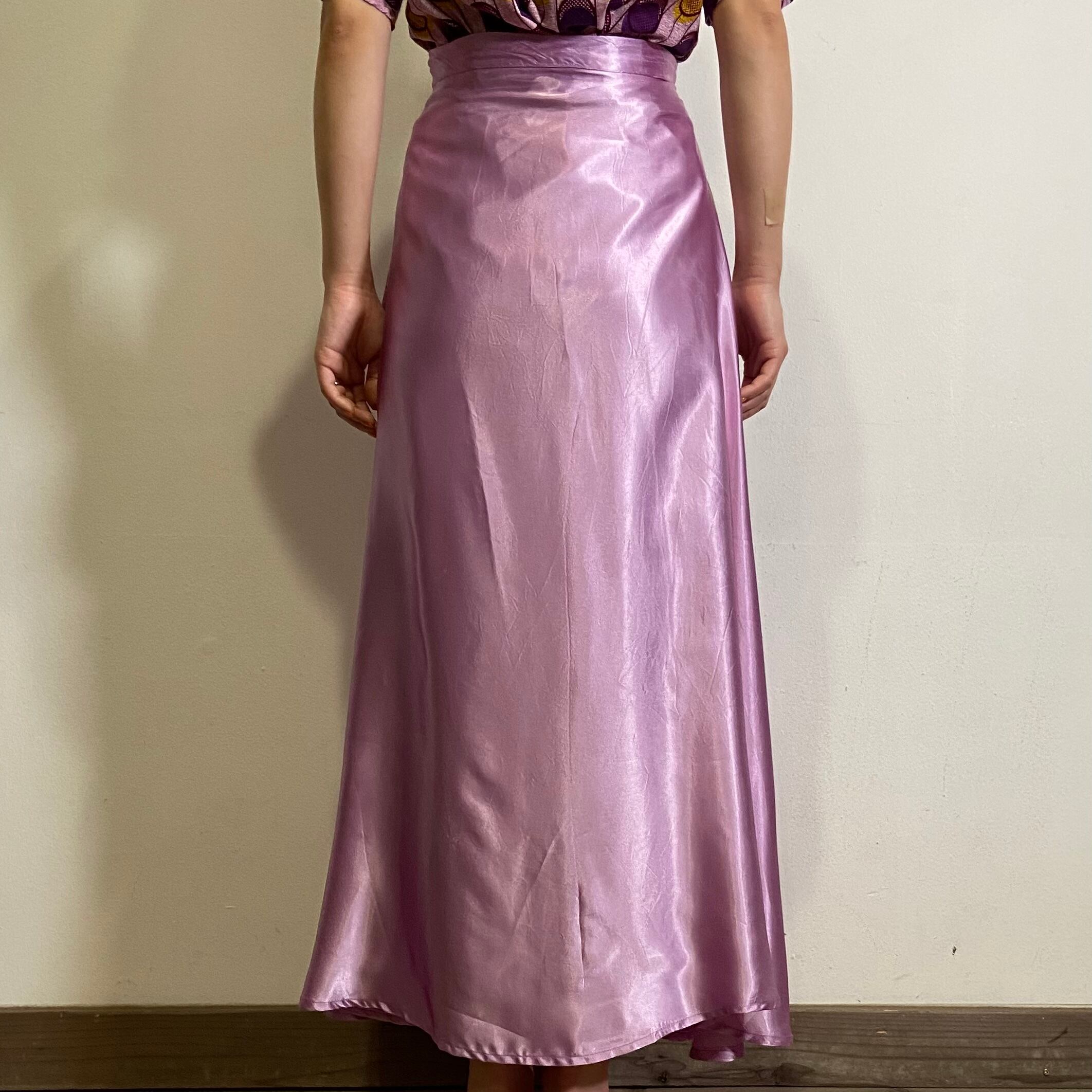 光沢感が可愛い、ラベンダーカラーのサテンスカートです。