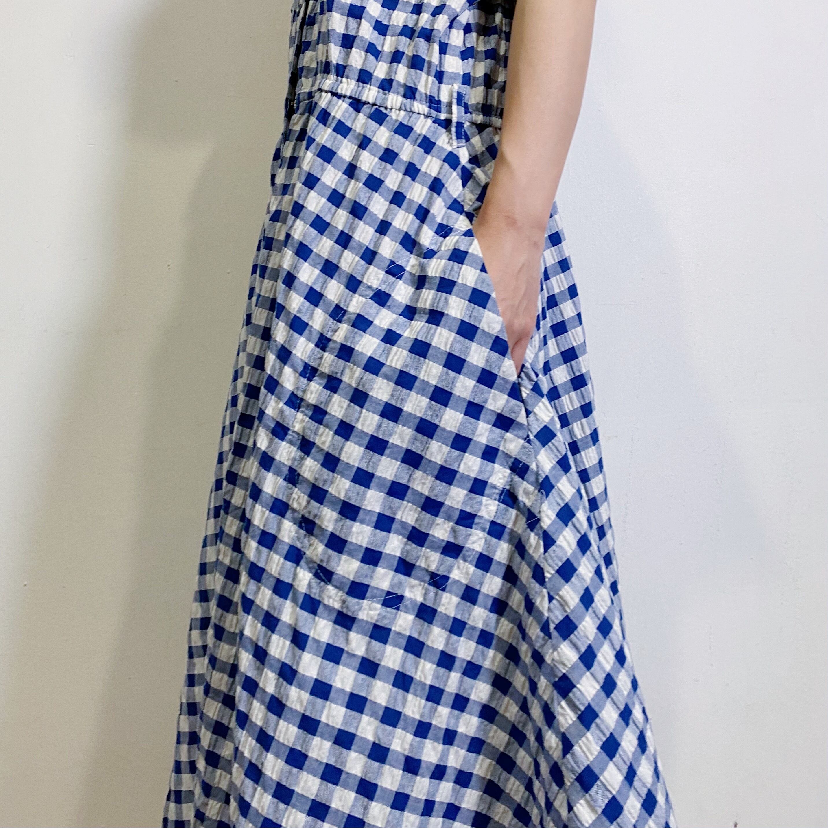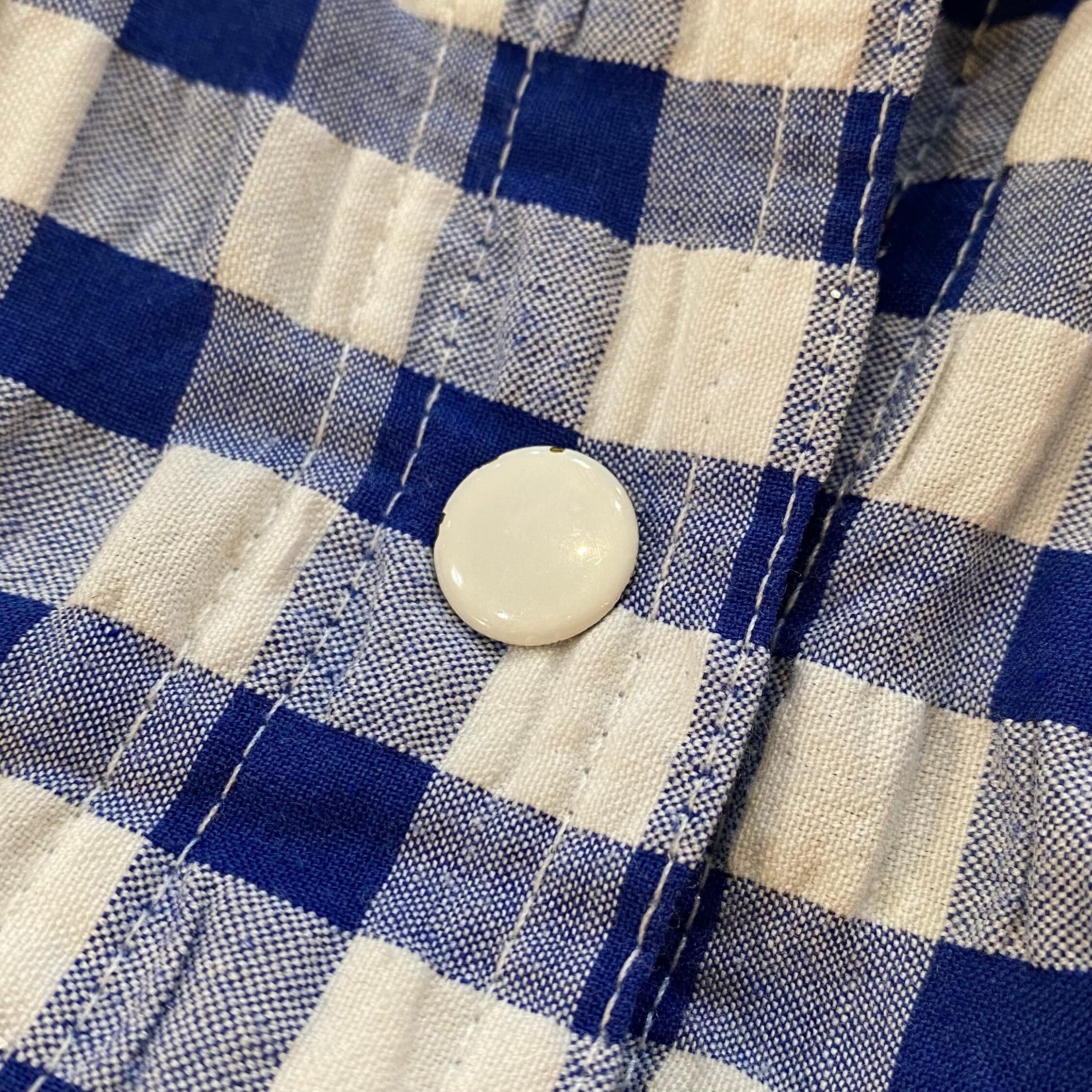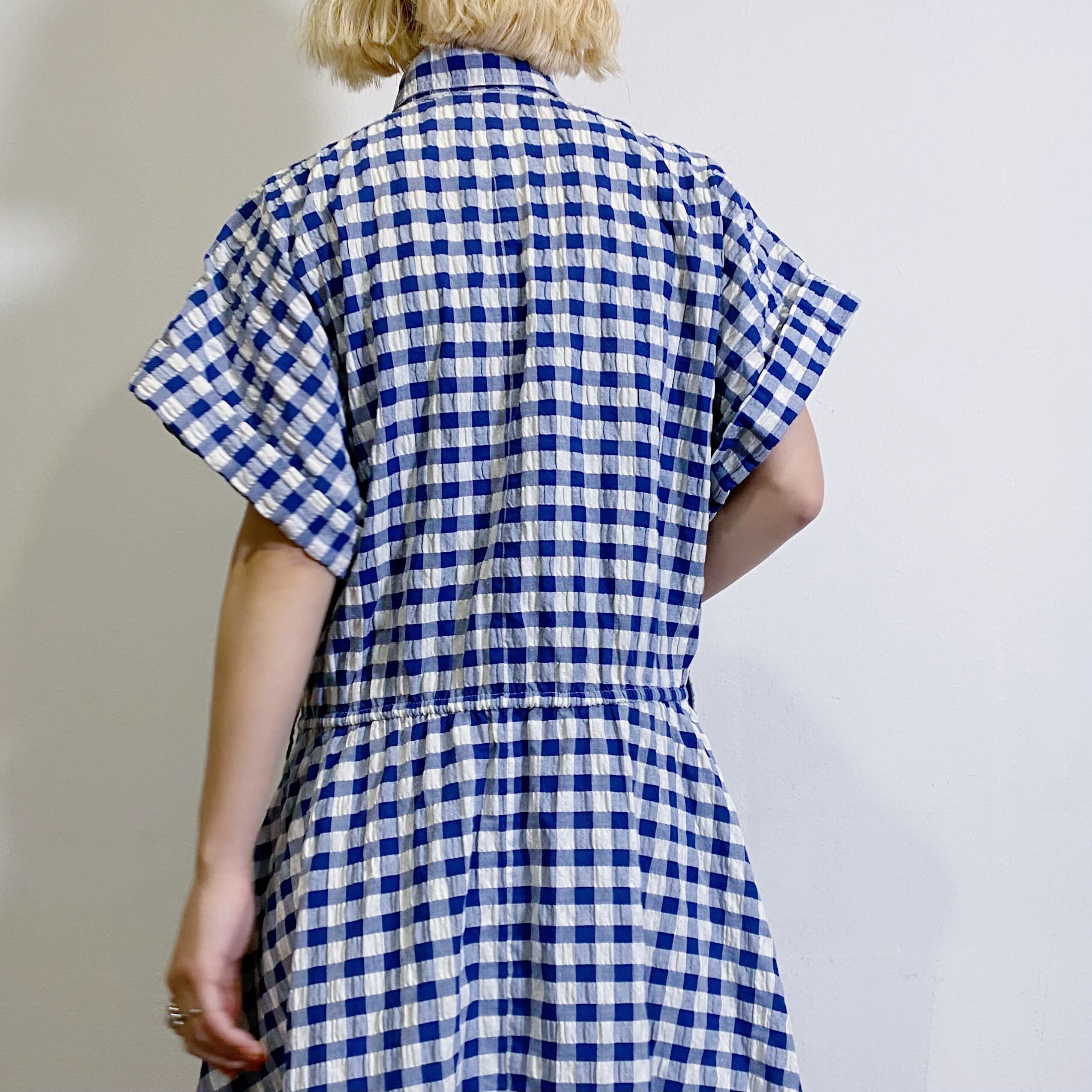 ブルーと白のギンガムチェックが爽やかで可愛い、80年代頃のシャツワンピースです。