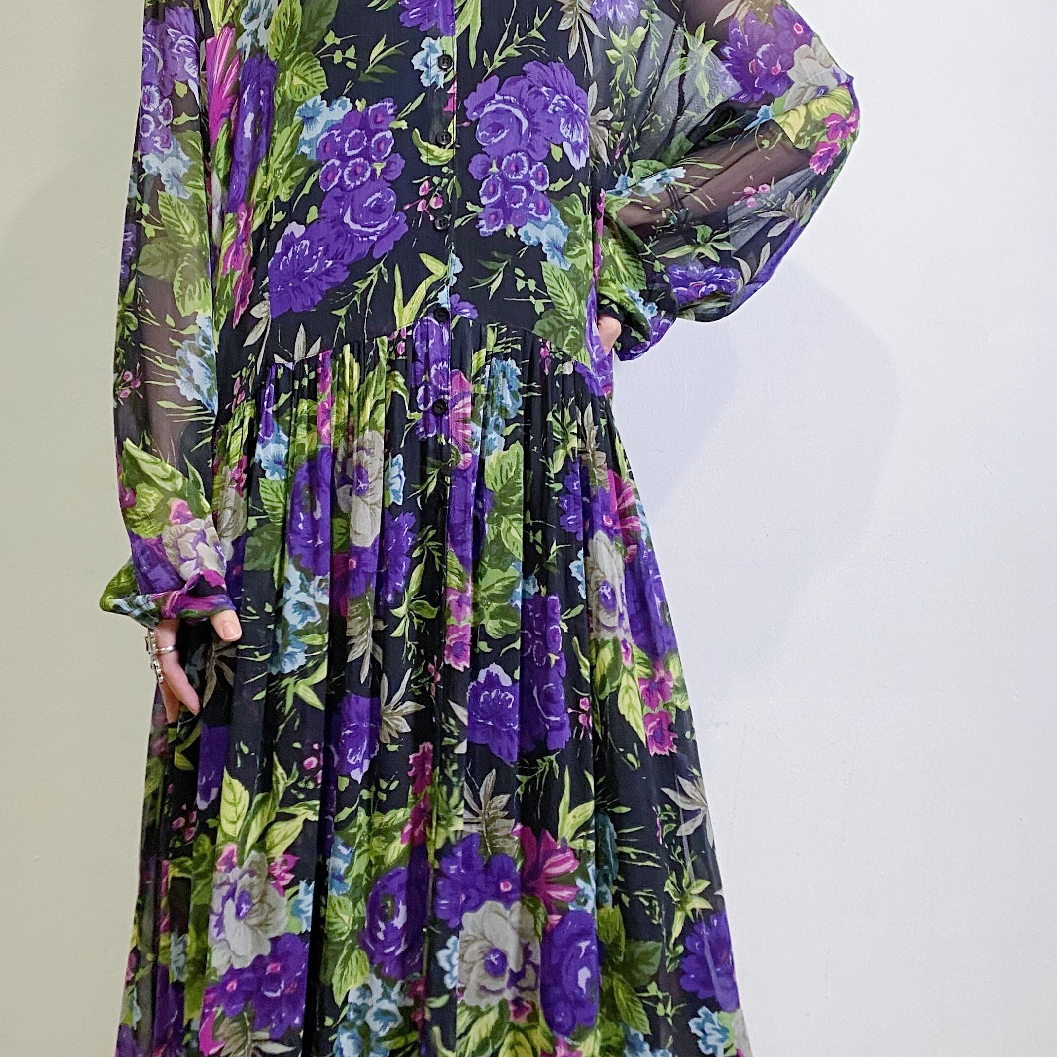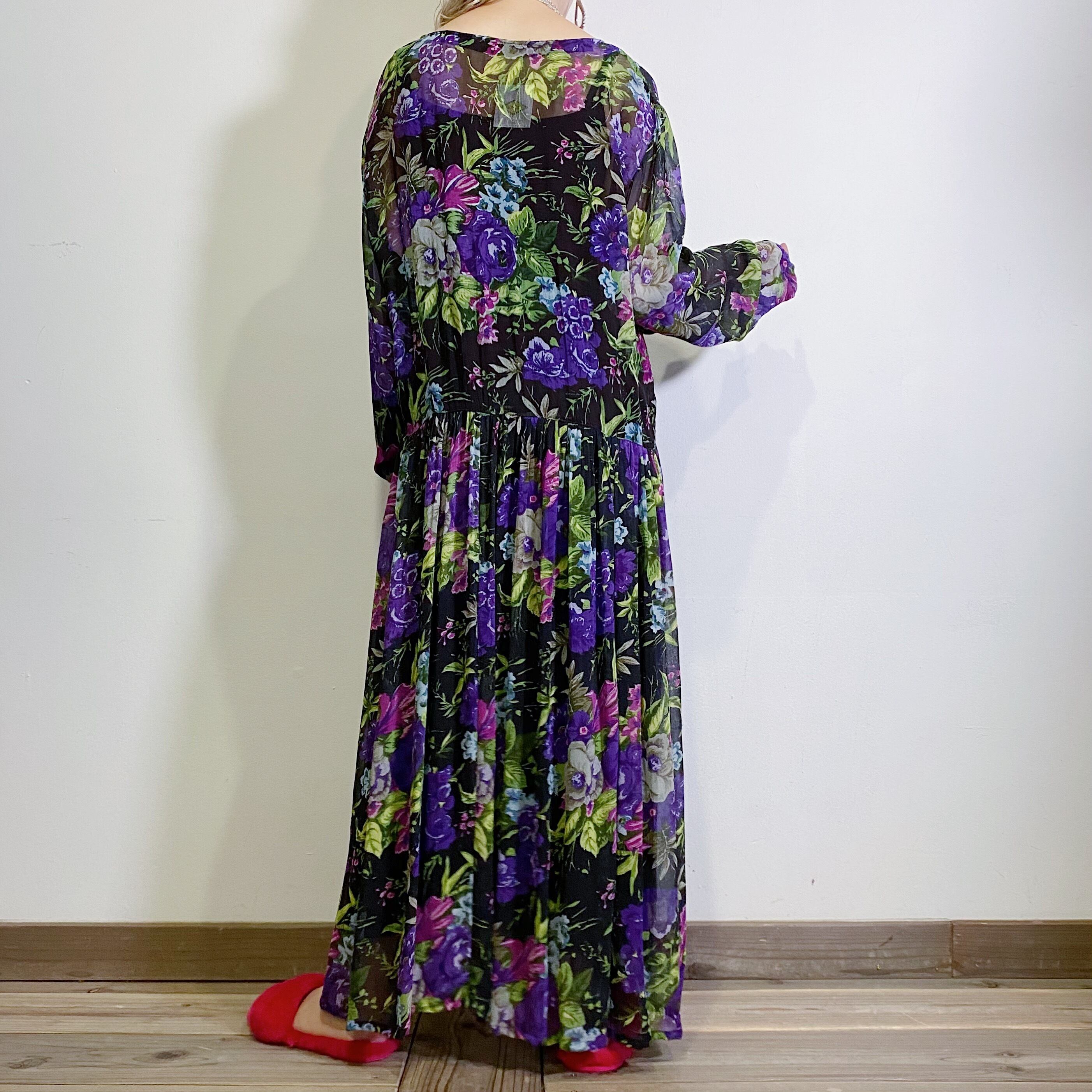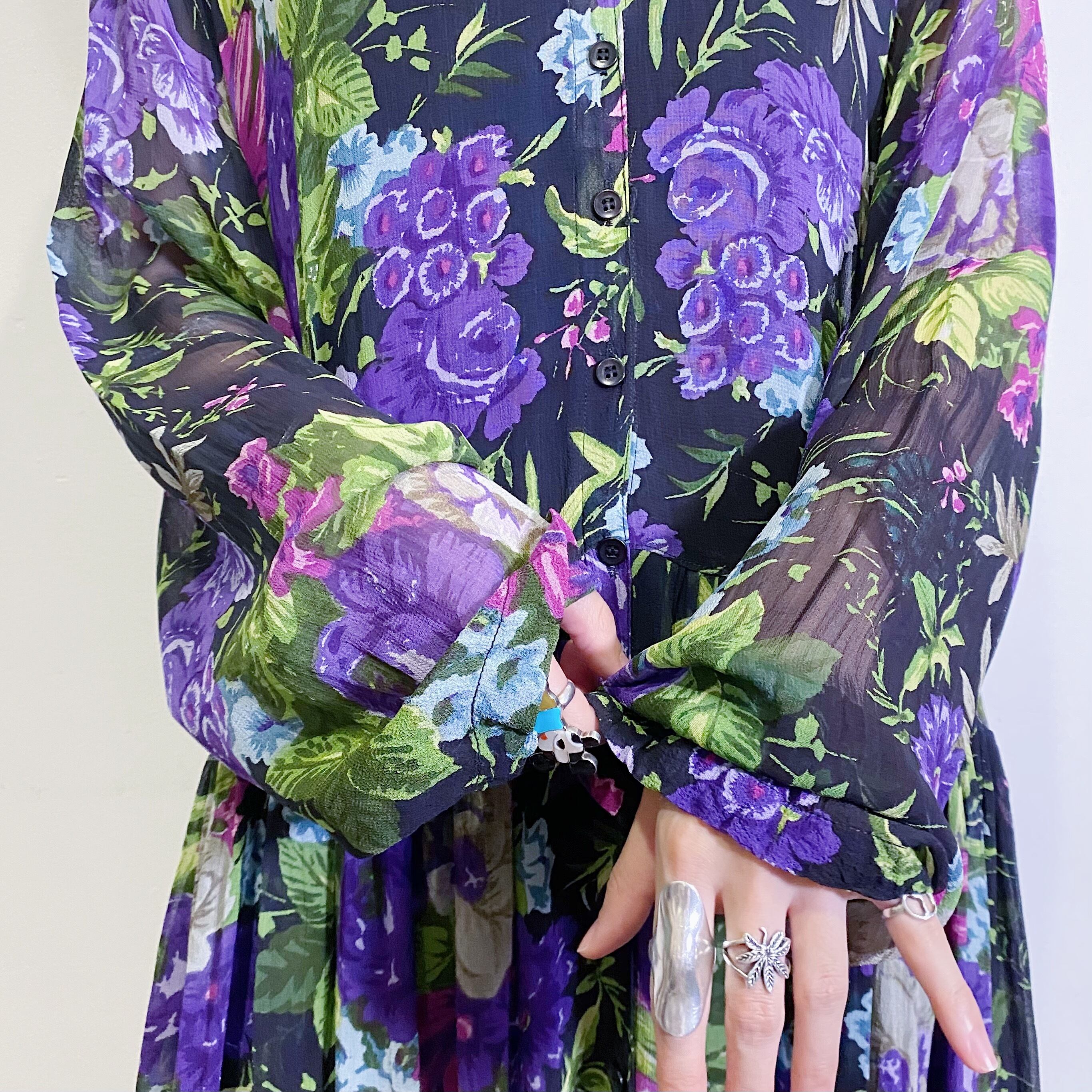 シースルー地の軽やかな素材感が可愛い、花柄ワンピースです。