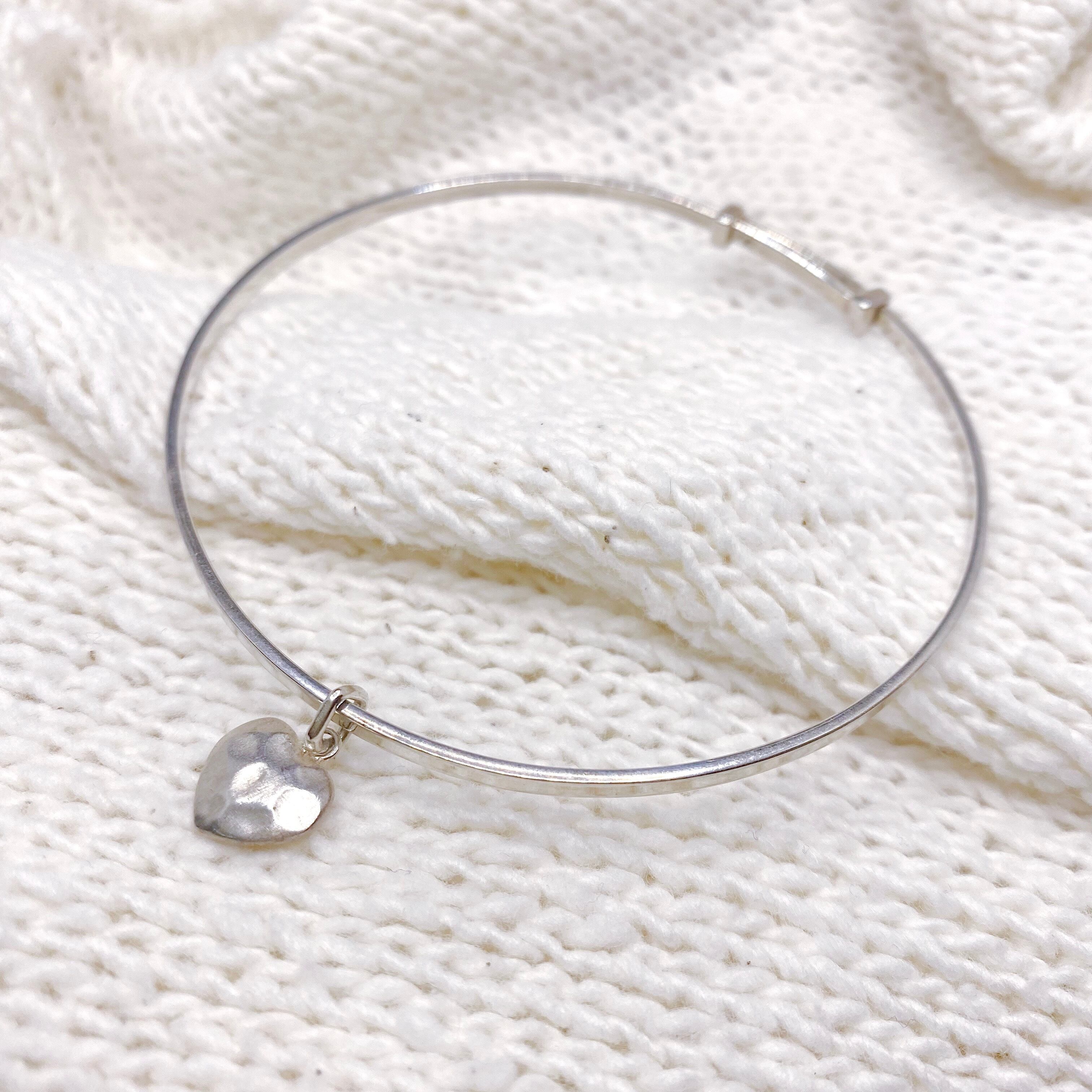 ゆらゆらと揺れる小さなハートモチーフが可愛い、925シルバーのバングルです。