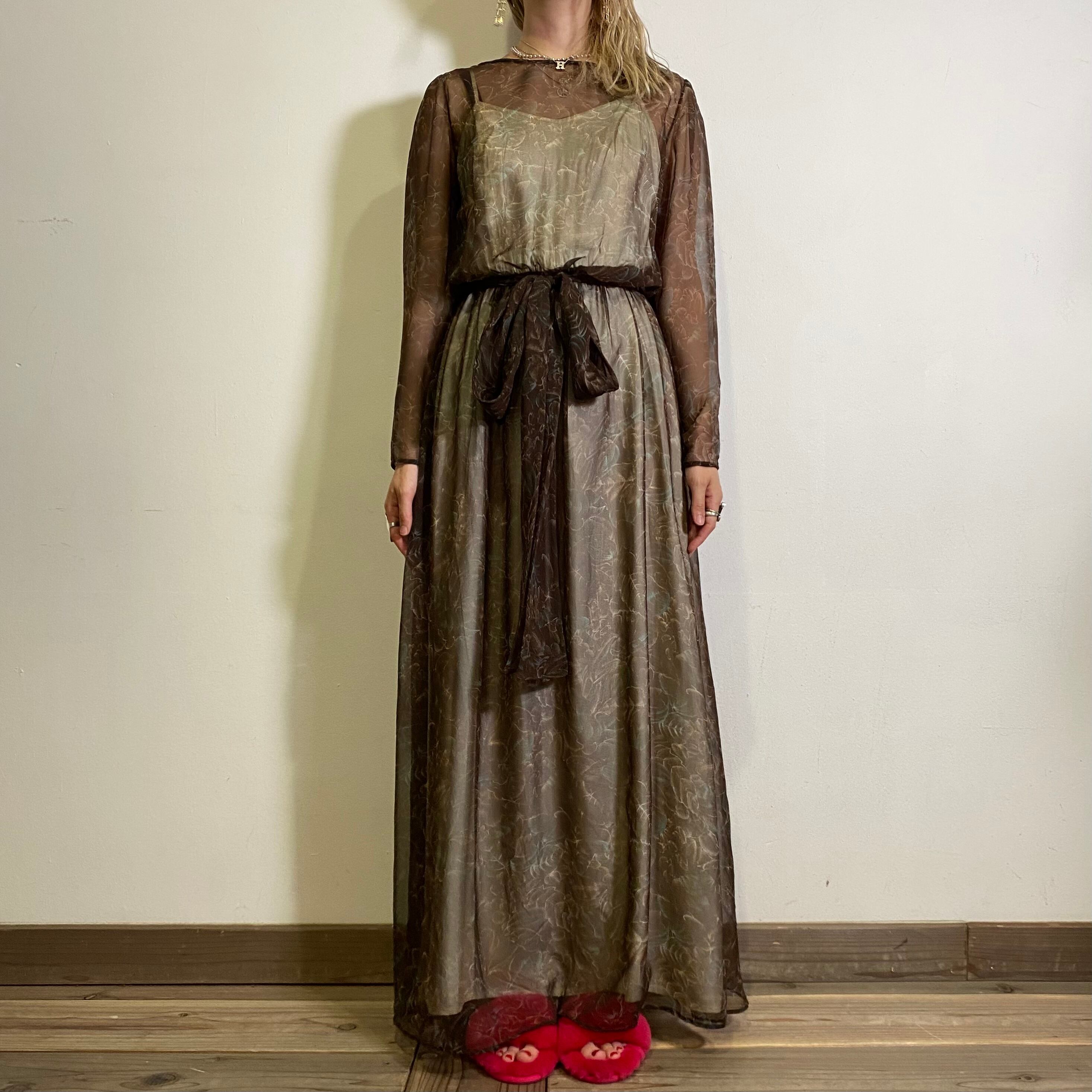 シースルー地でモードな雰囲気たっぷりの70年代のワンピースです。