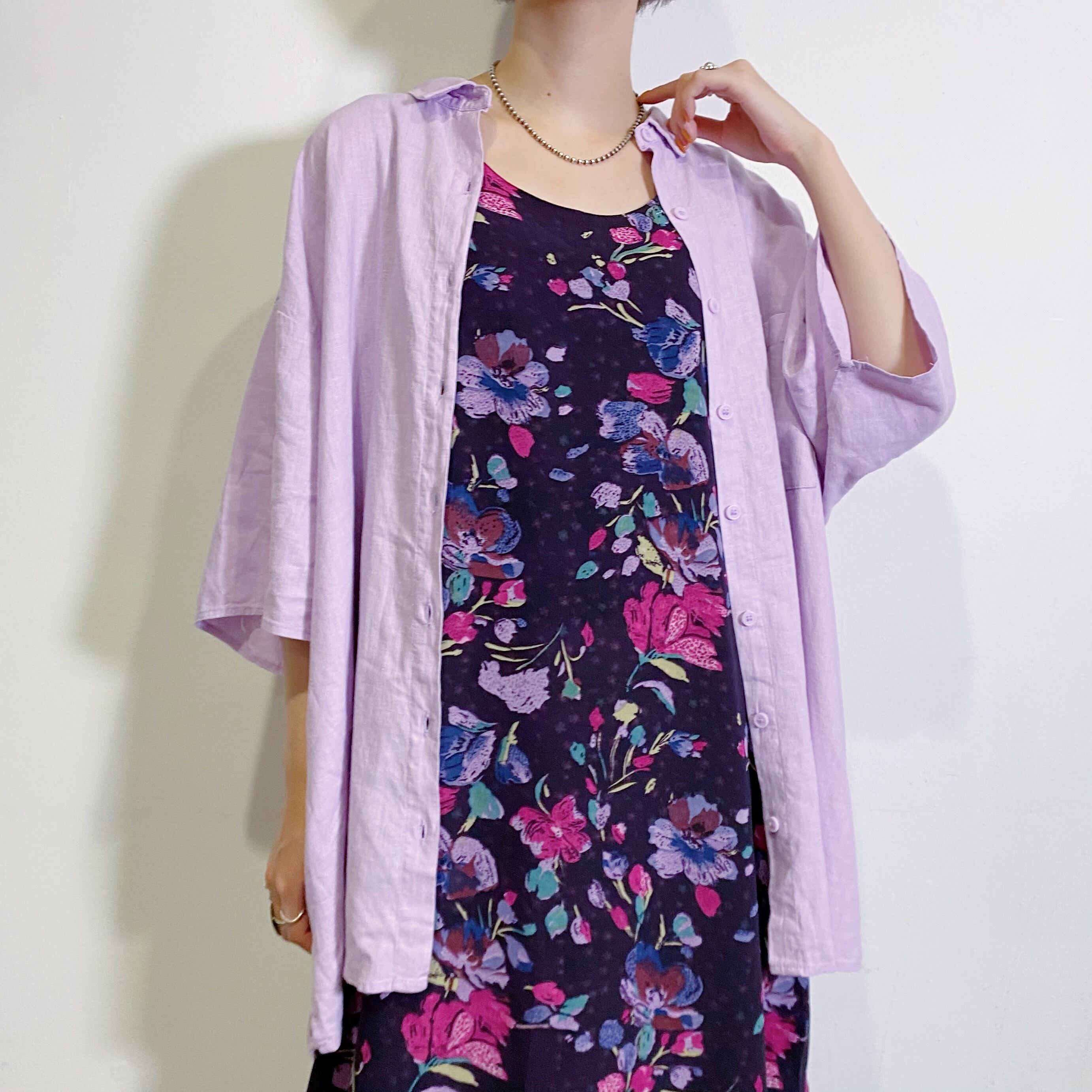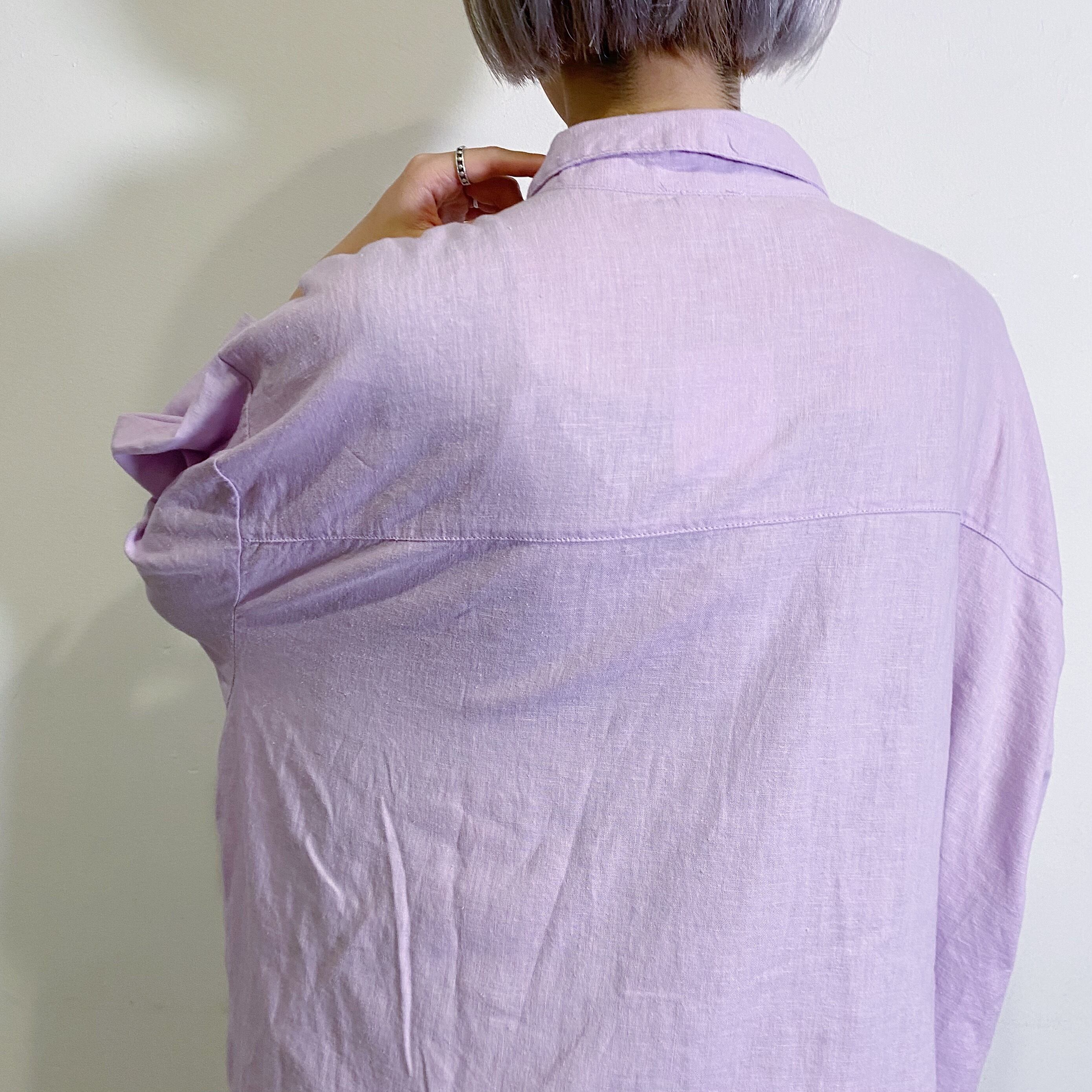 ラベンダーカラーが可愛い、リネン素材の半袖シャツです。