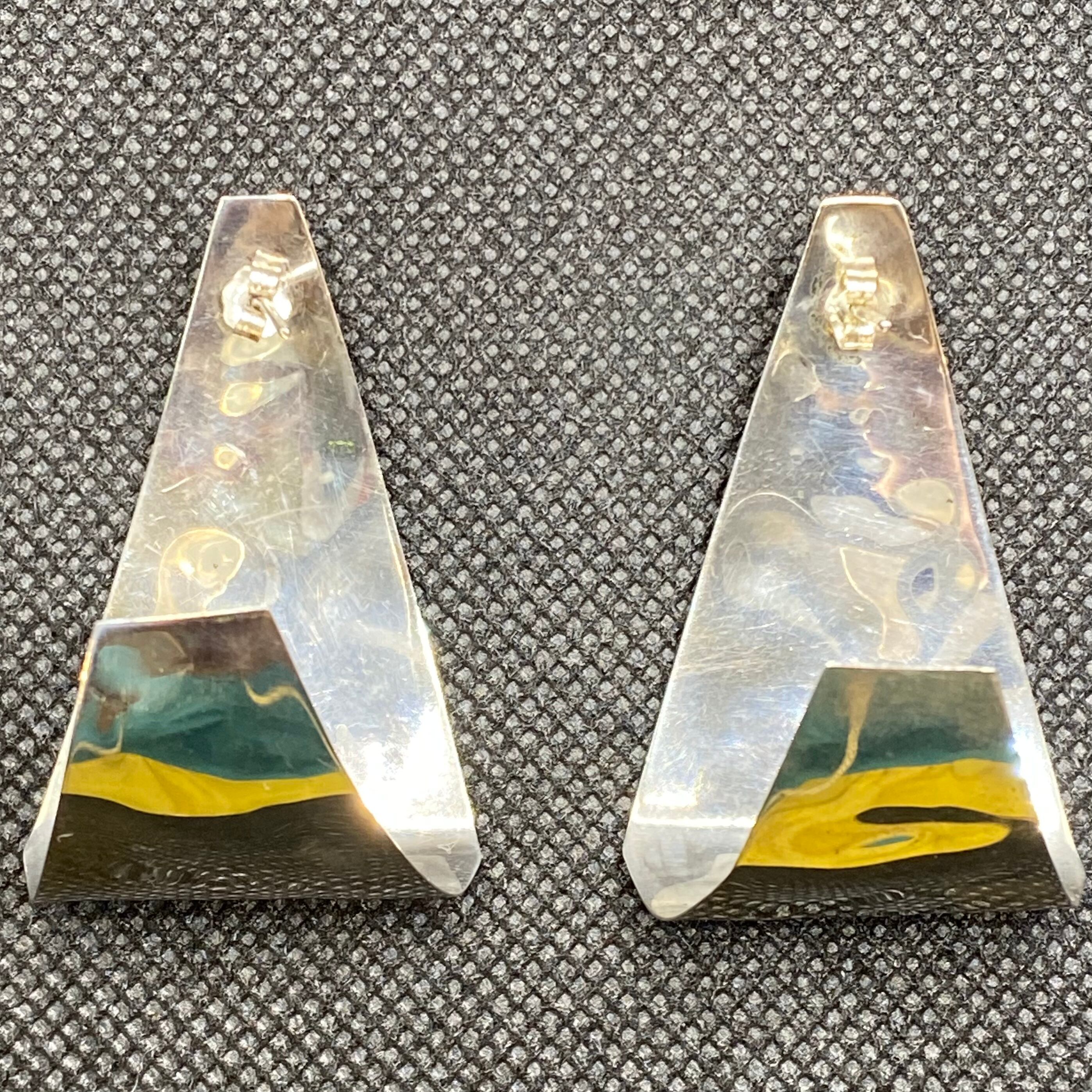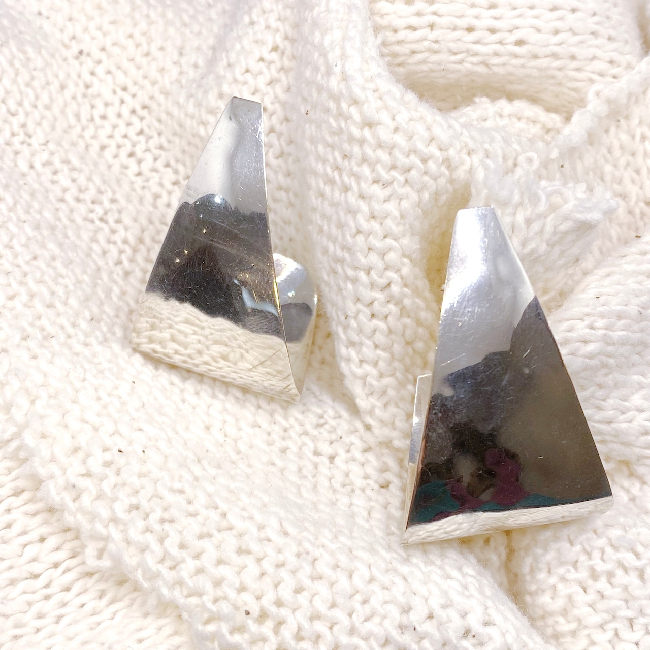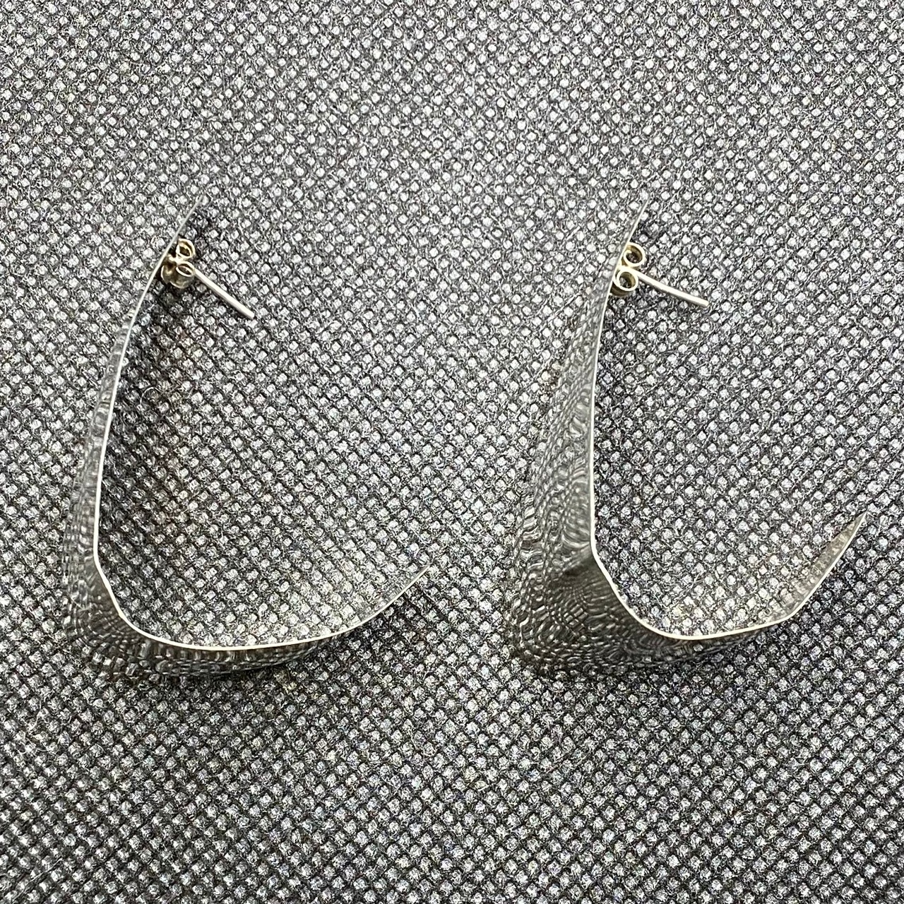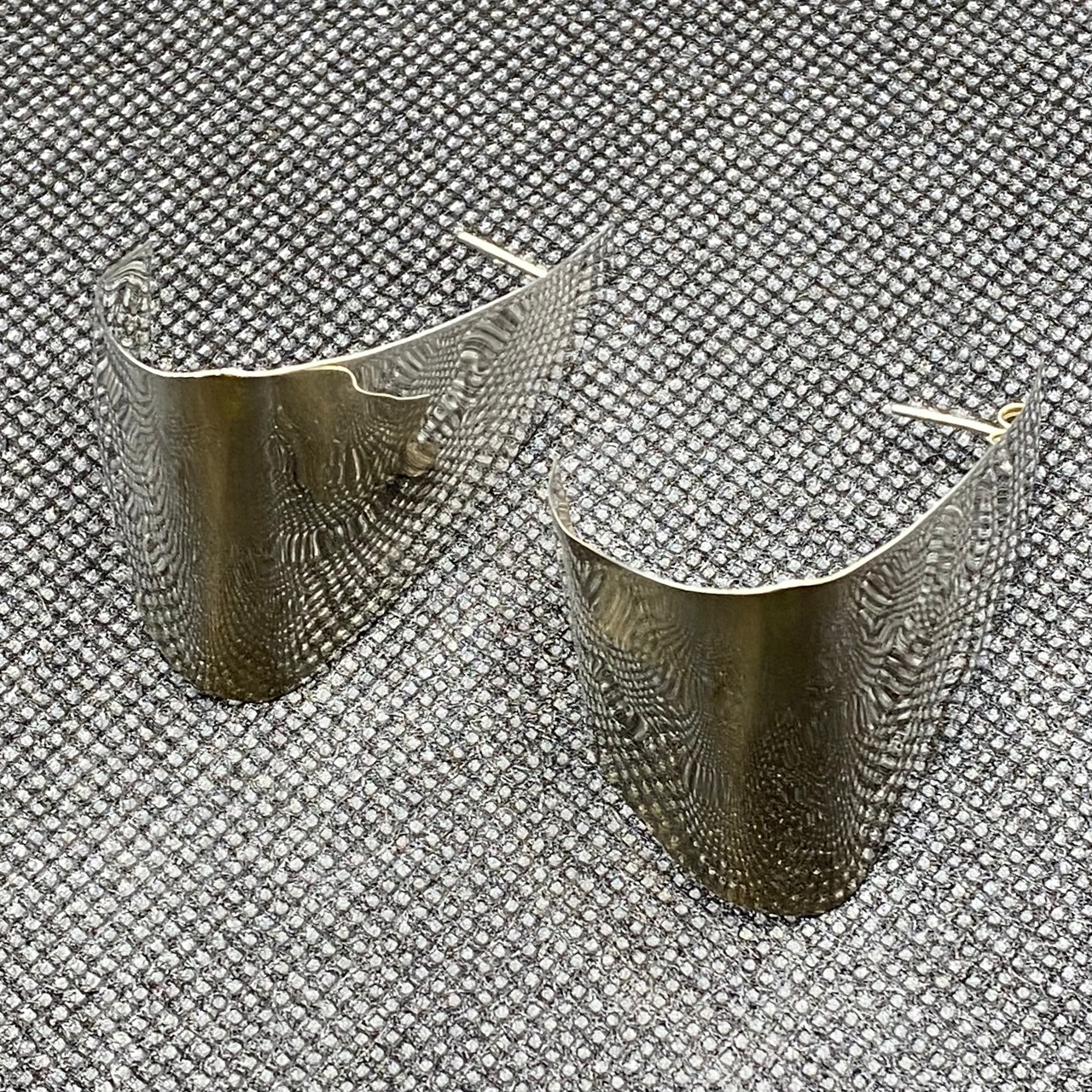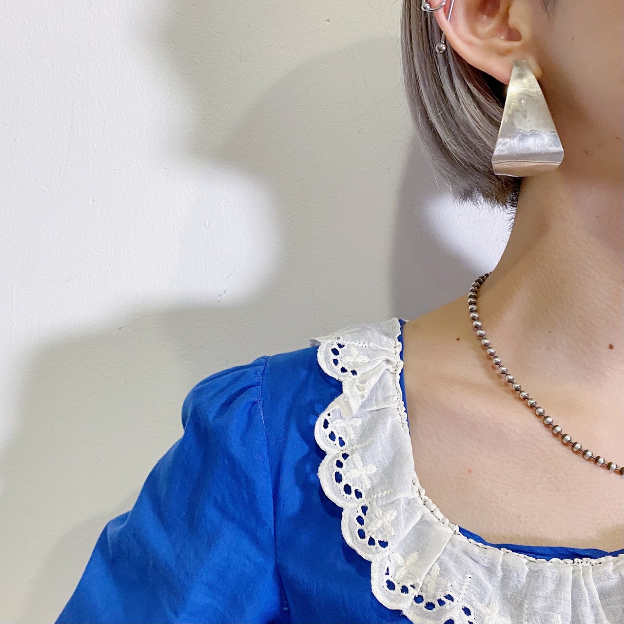 薄いシルバーのプレートをグイっとカーブさせたような、アートなデザインがとっても素敵。