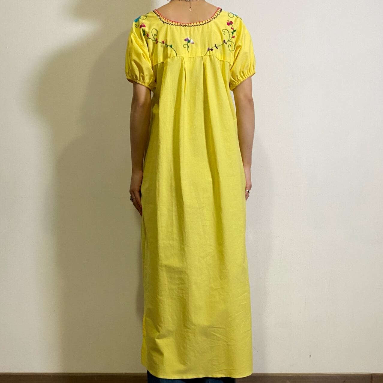 Yellow Mexican embroidery dress
