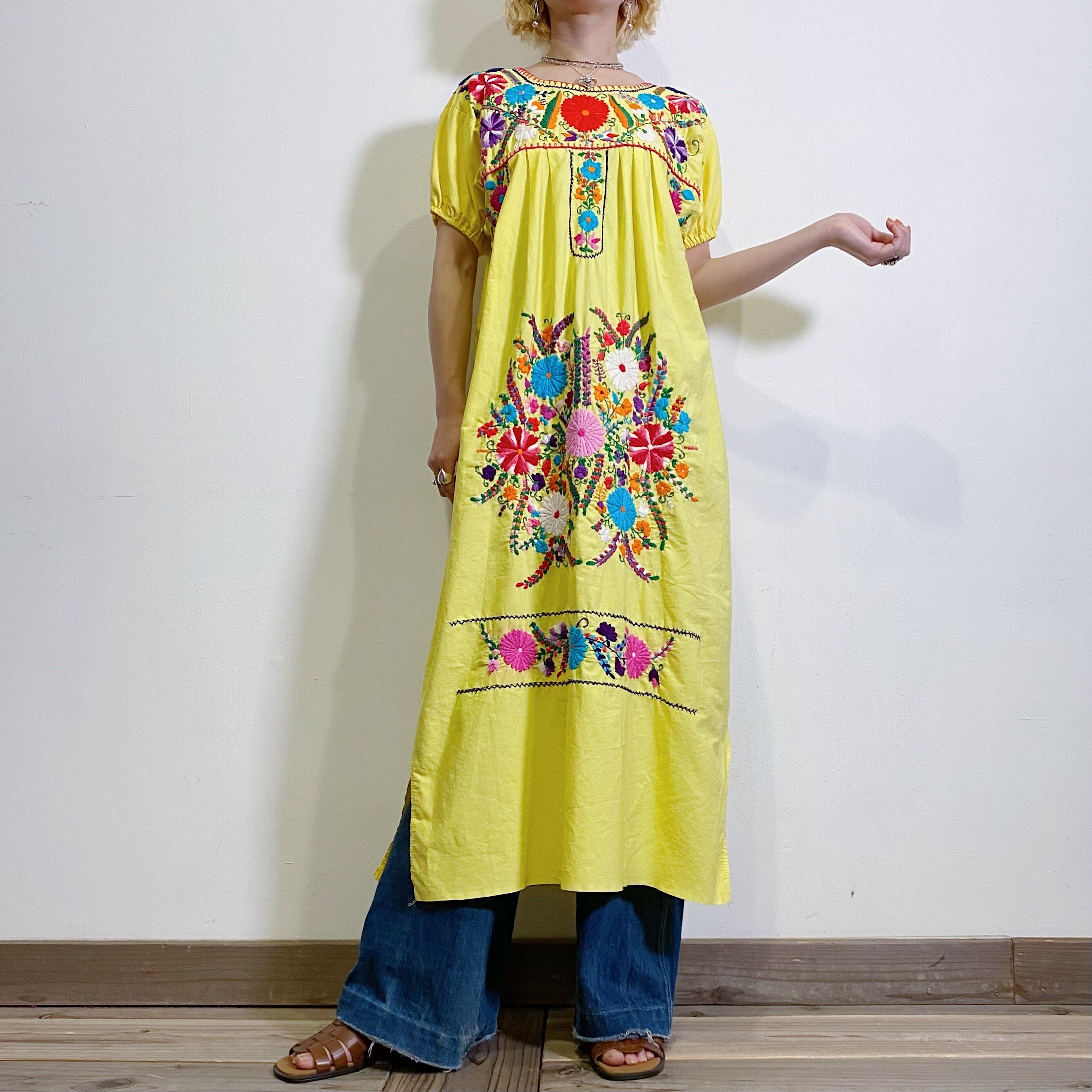 カラフルなお花がびっしりと手刺繡で施されたメキシカンワンピースです。